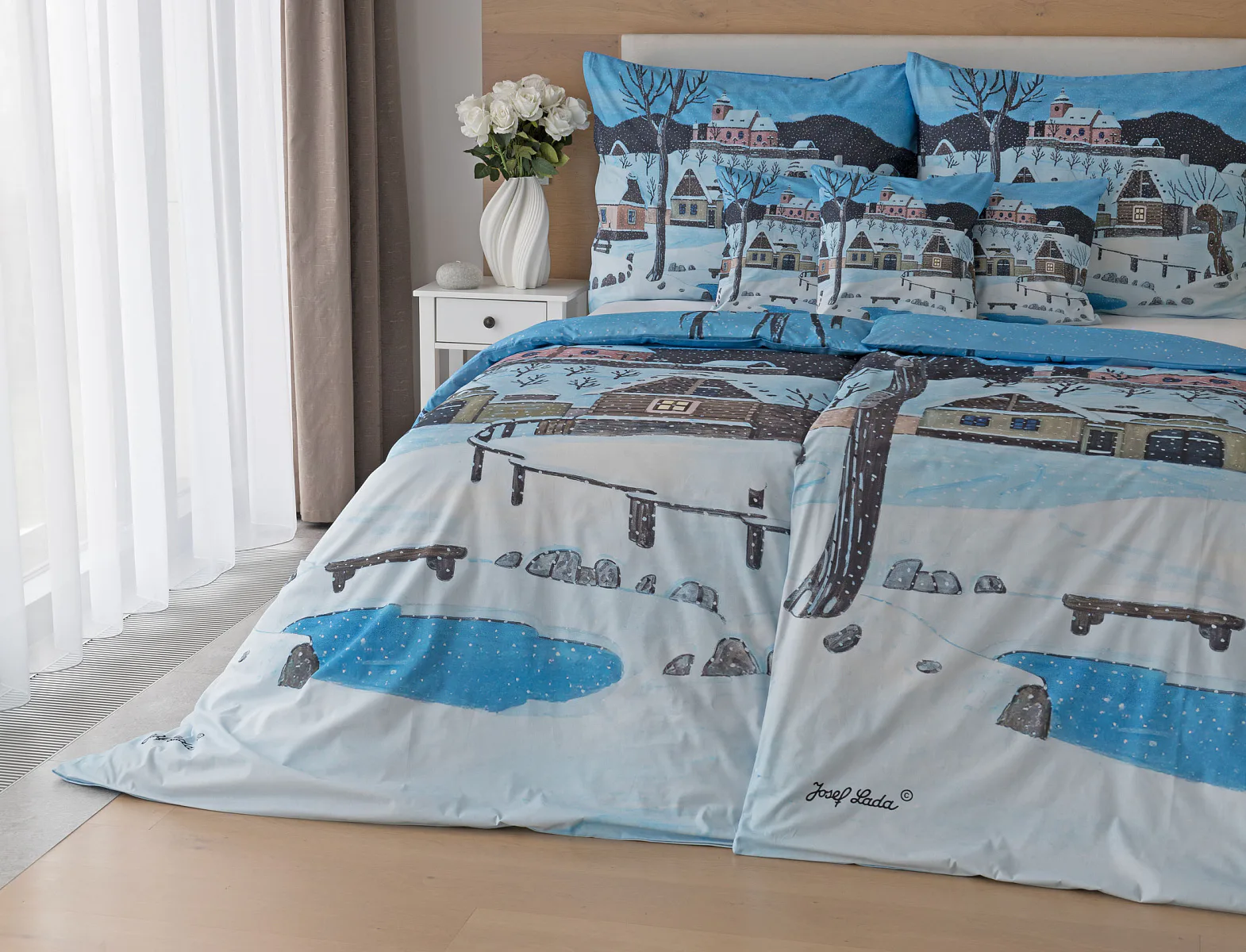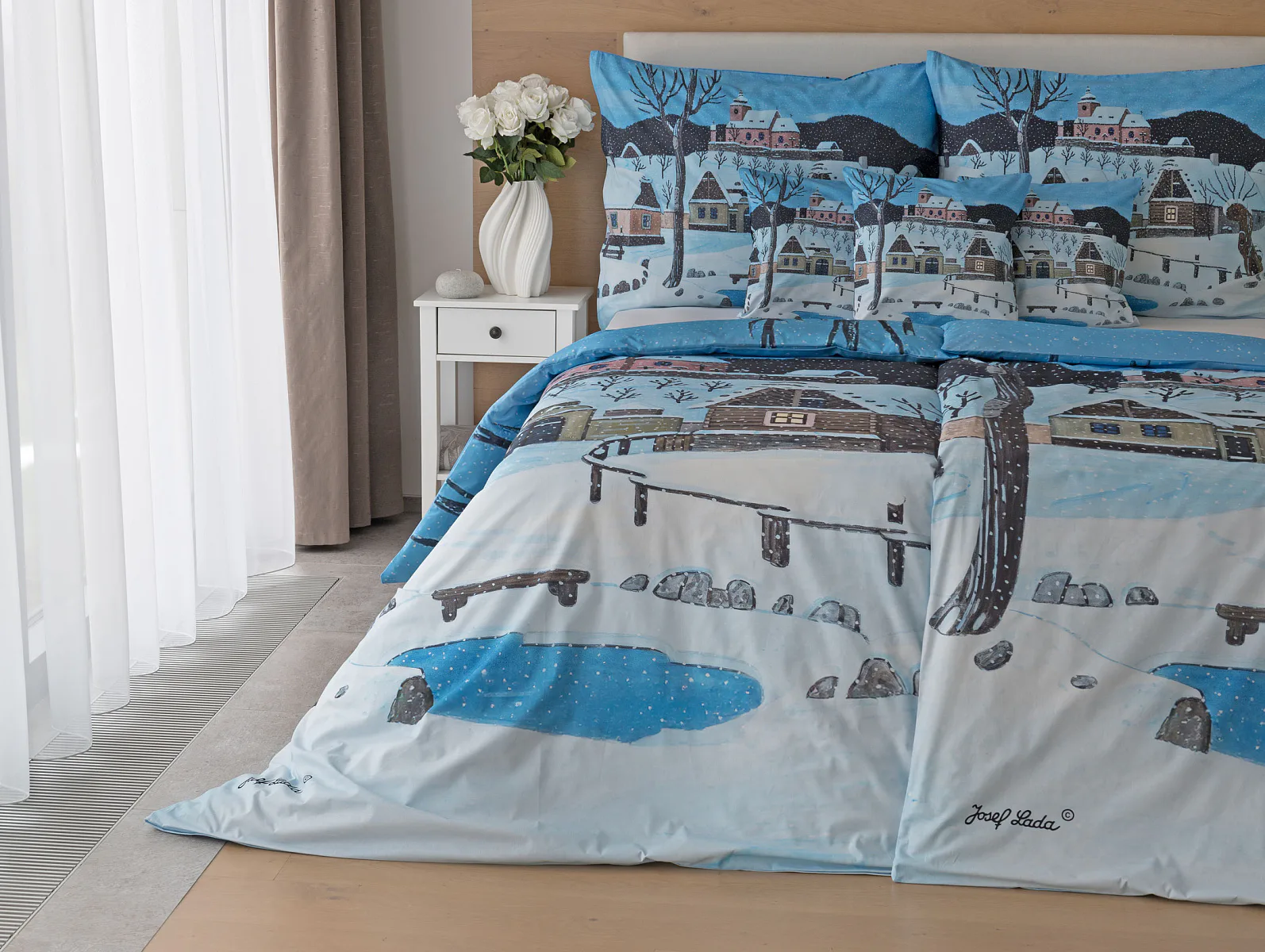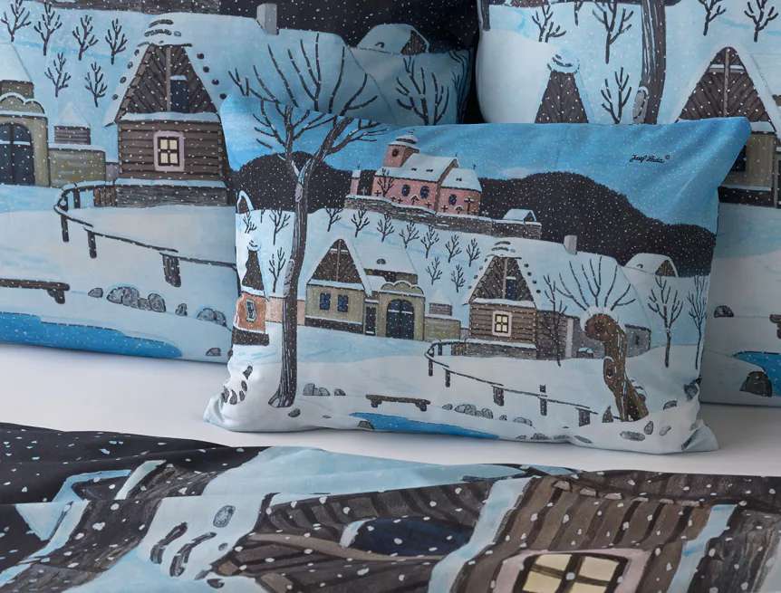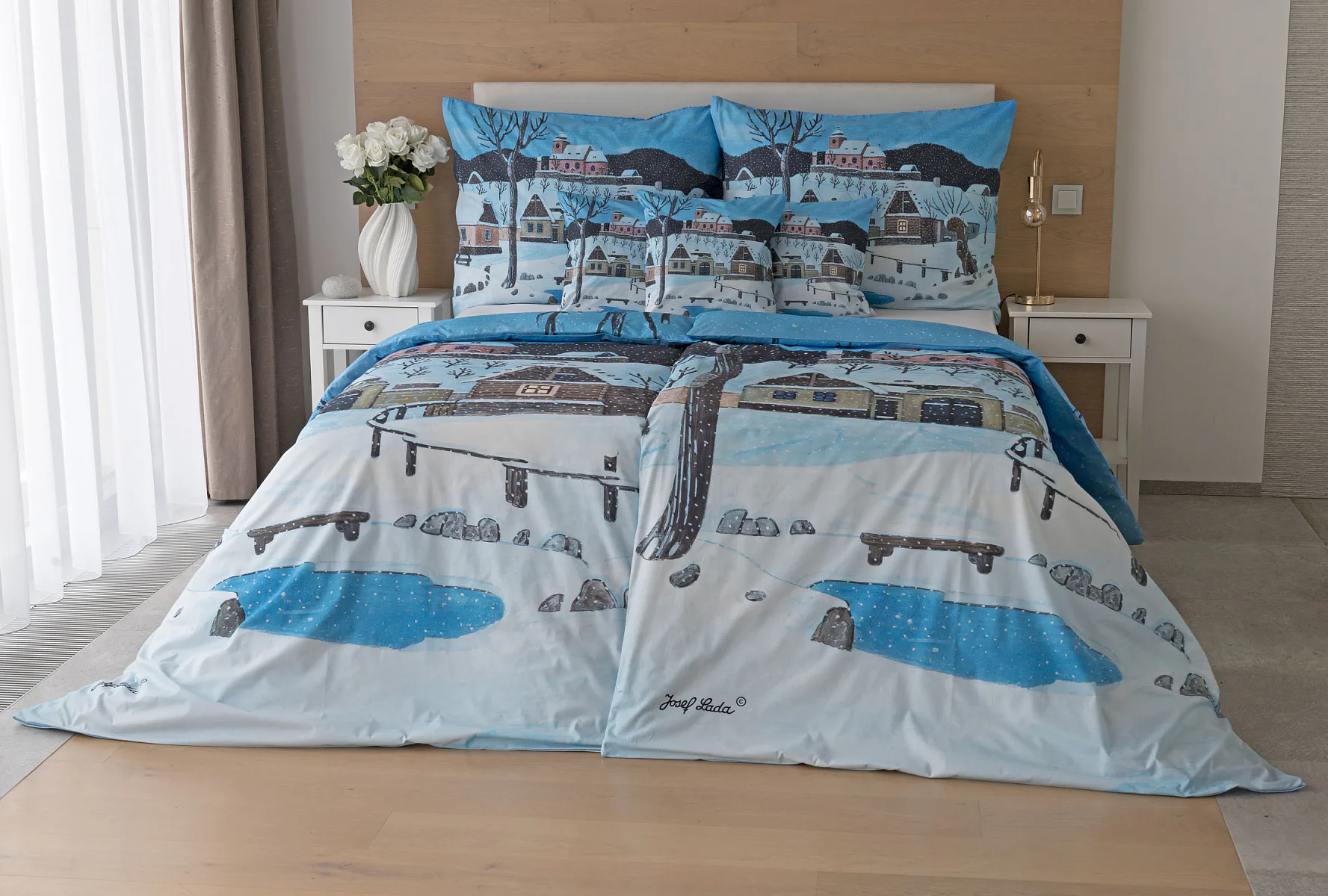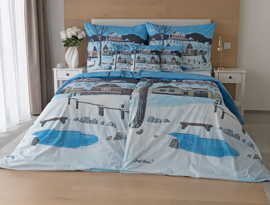 Pozvěte k sobě domů kouzlo nestárnoucích kreseb Josefa Lady, které jsou pro mnohé z nás symbolem dětství, harmonického venkova a české tradice. Povlečení Tichá noc evokuje klid zasněžených zimních nocí, kdy český venkov spí pod sněhovou peřinou a vše kolem utichá.