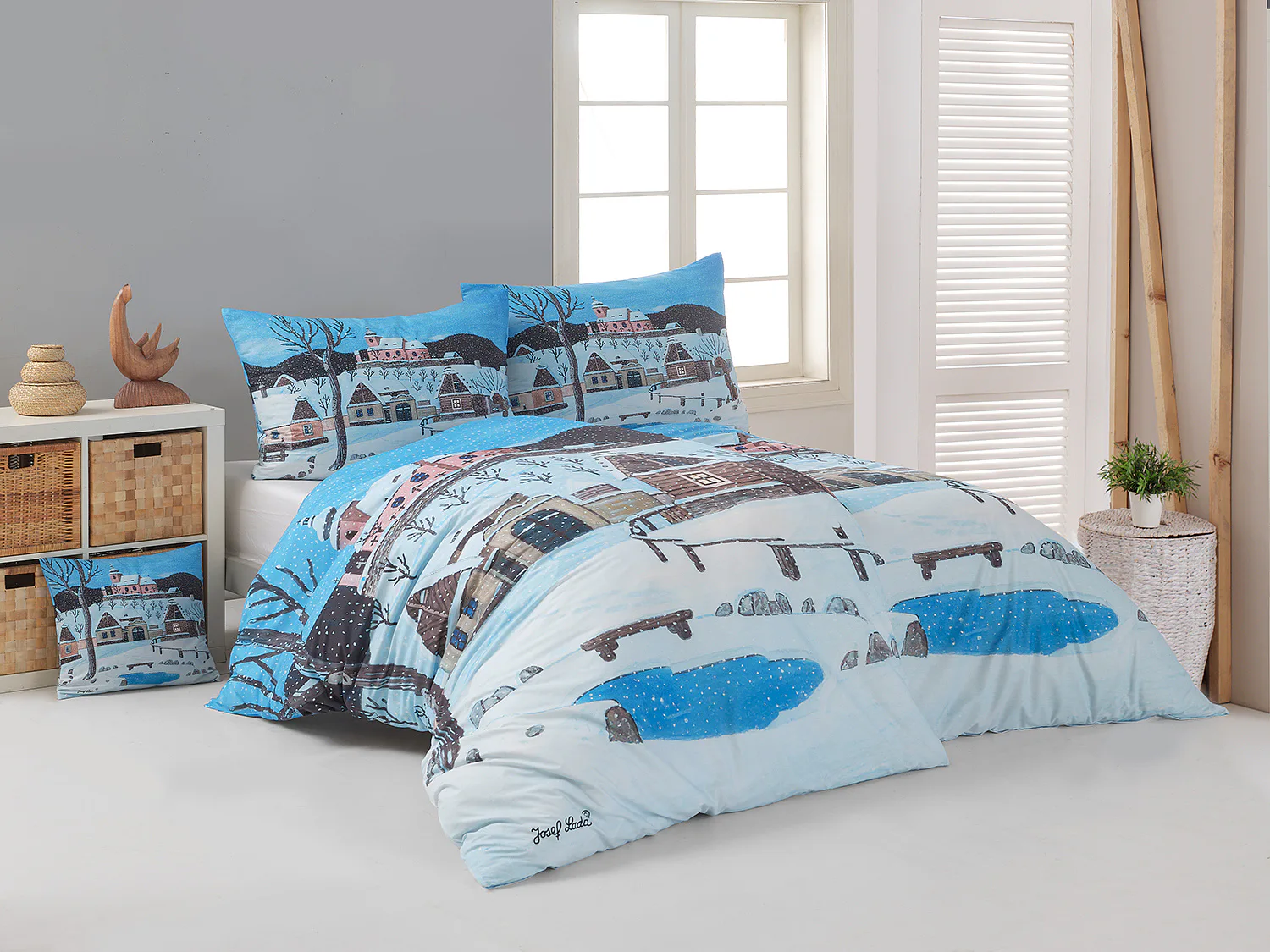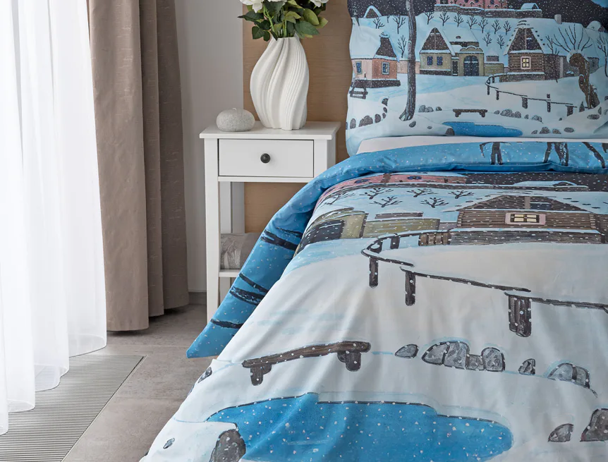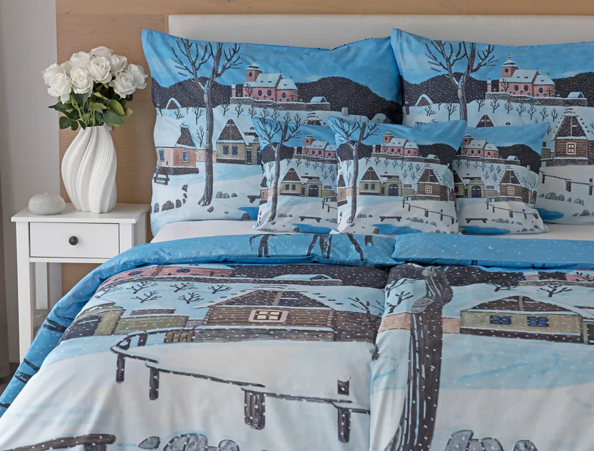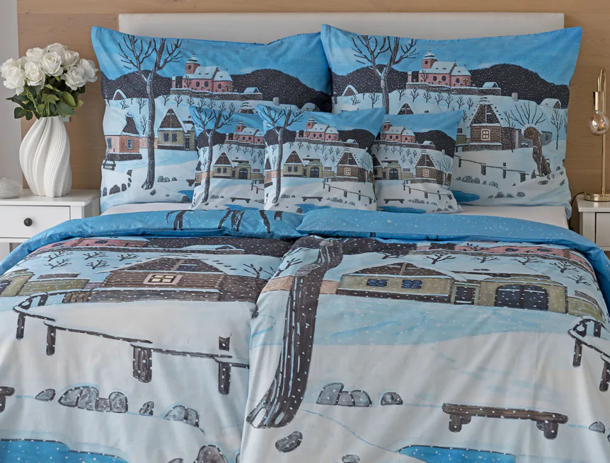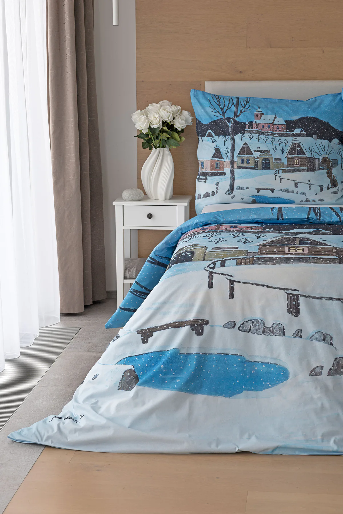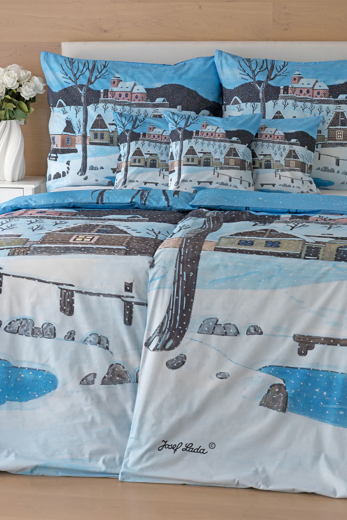 Pozvěte k sobě domů kouzlo nestárnoucích kreseb Josefa Lady, které jsou pro mnohé z nás symbolem dětství, harmonického venkova a české tradice. Povlečení Tichá noc evokuje klid zasněžených zimních nocí, kdy český venkov spí pod sněhovou peřinou a vše kolem utichá.