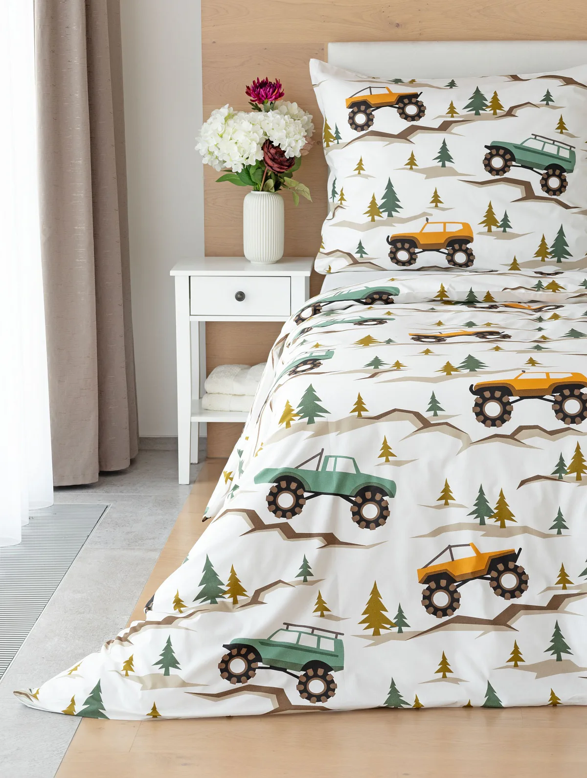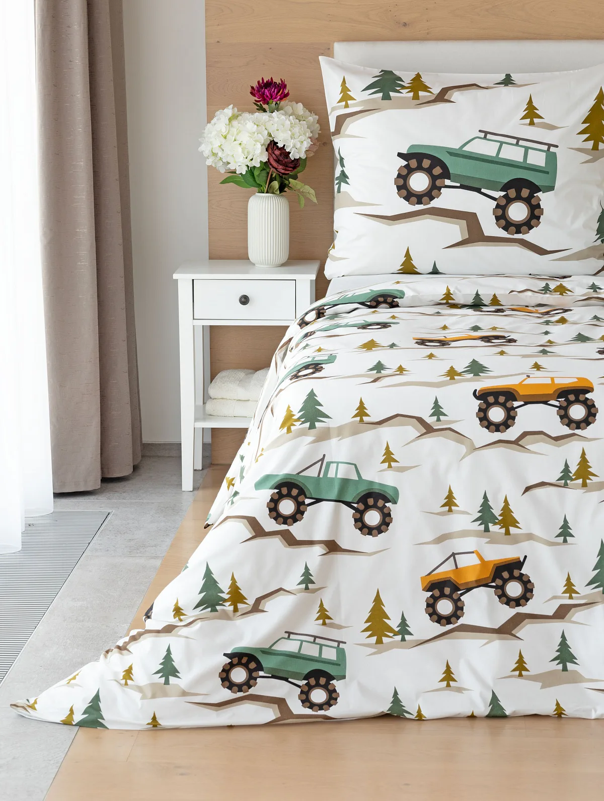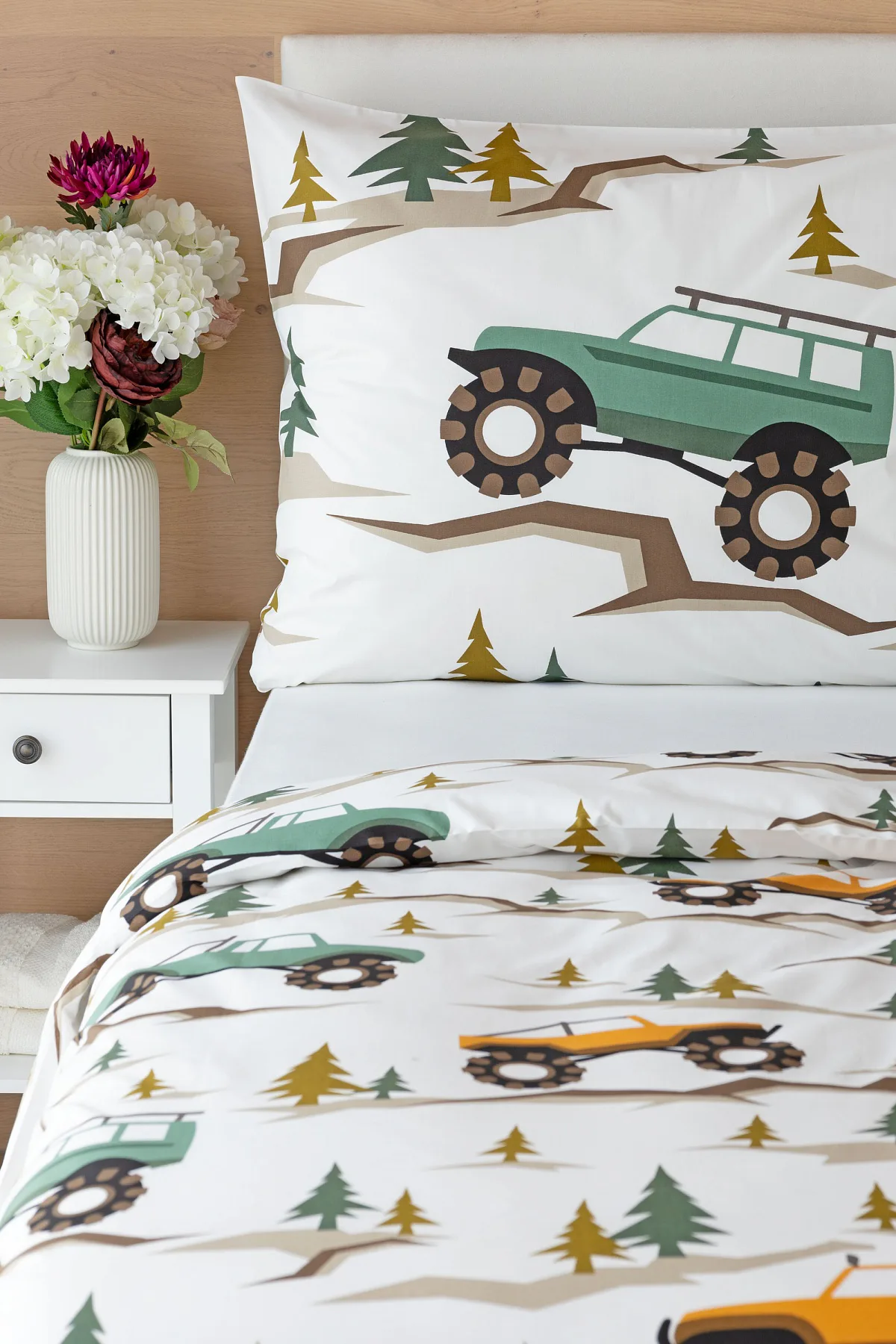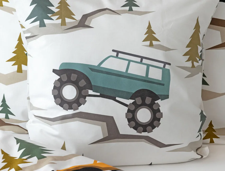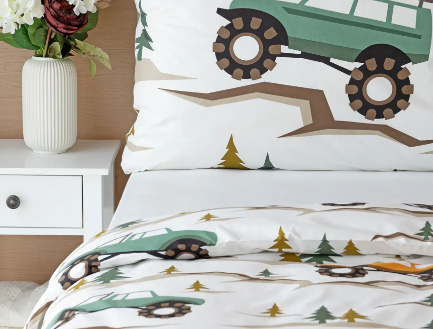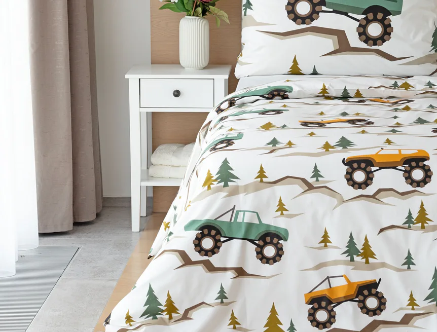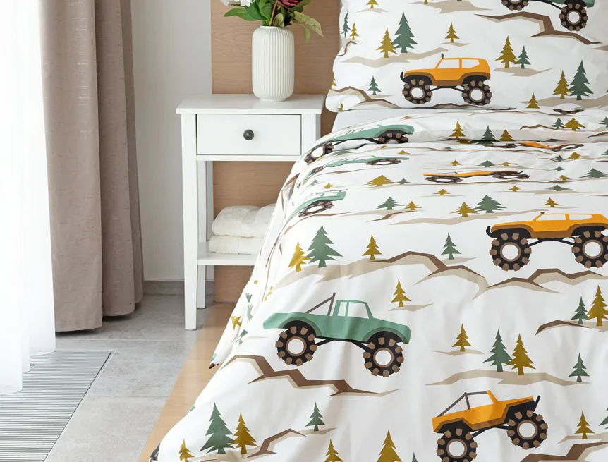 Povlak na přikrývku je z obou stran stejný, povlak na polštář zachycuje na spodní straně více aut. Povlečení je opatřeno komfortním zipovým uzávěrem.