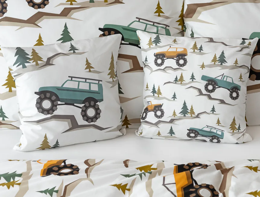 Malí milovníci aut s velkými koly se nadchnou při pohledu na bavlněné ložní povlečení Truck. Hravý dětský motiv kombinuje atraktivní barvy a díky stoprocentní prvotřídní bavlně budou spokojeně usínat děti i rodiče.