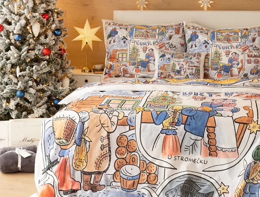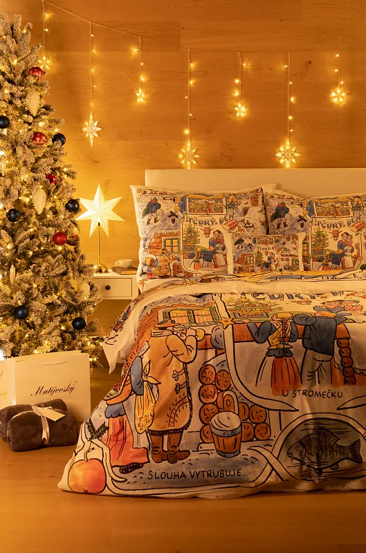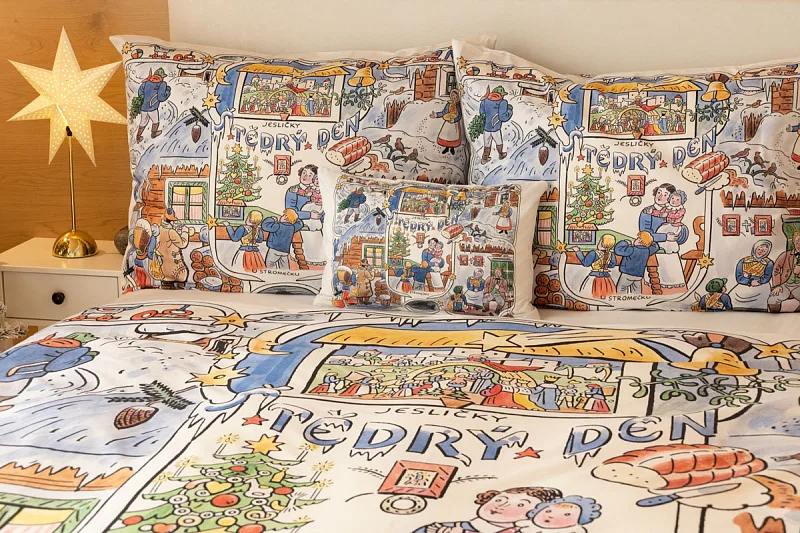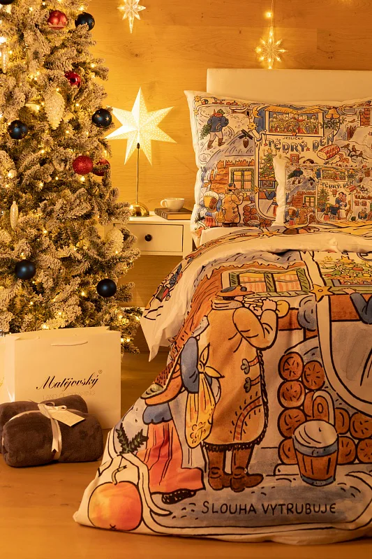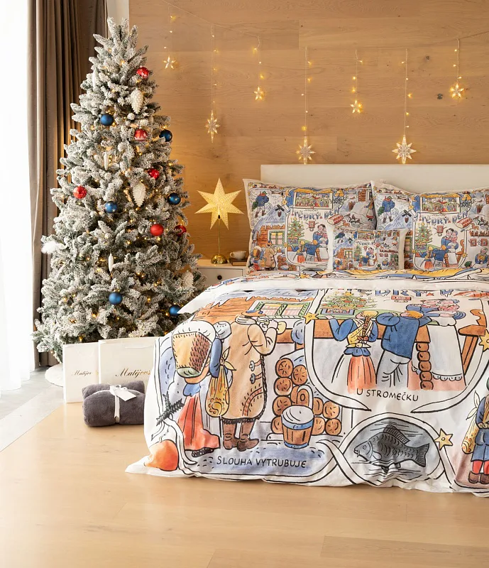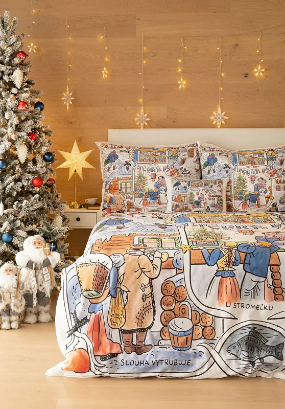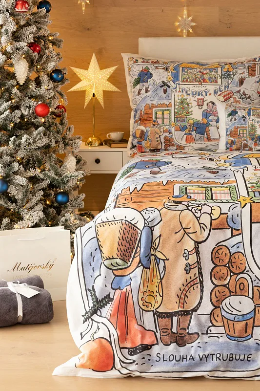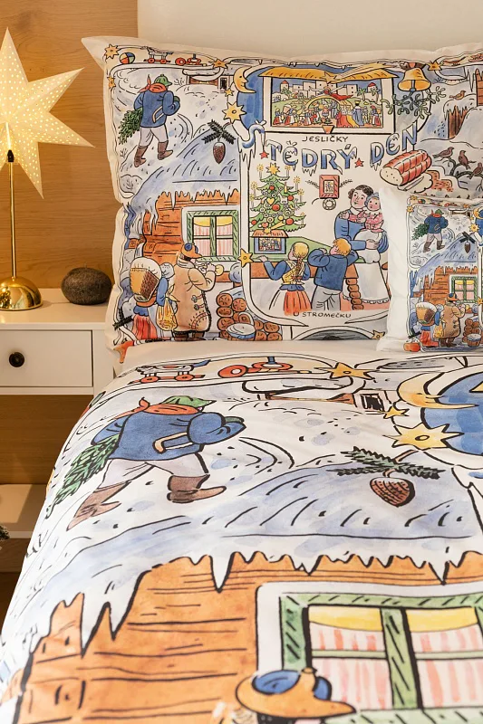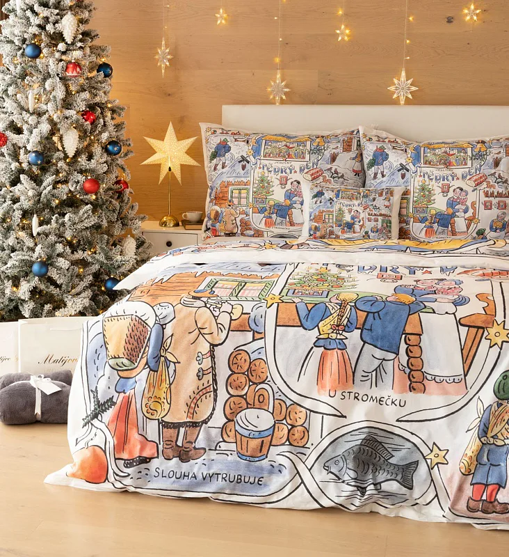 Povlečení se zimními motivy kreseb Josefa Lady, které do českých domovů přinášejí tu pravou vánoční poetiku, se stane unikátním praktickým solitérem i originální dárkem. Vykouzlete si jedinečnou atmosféru také u sebe doma díky bavlněnému povlečení Vánoce.