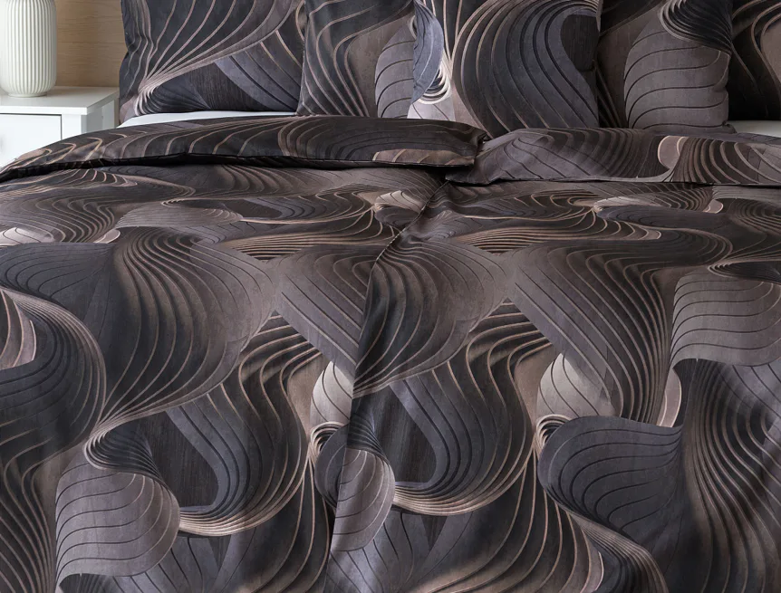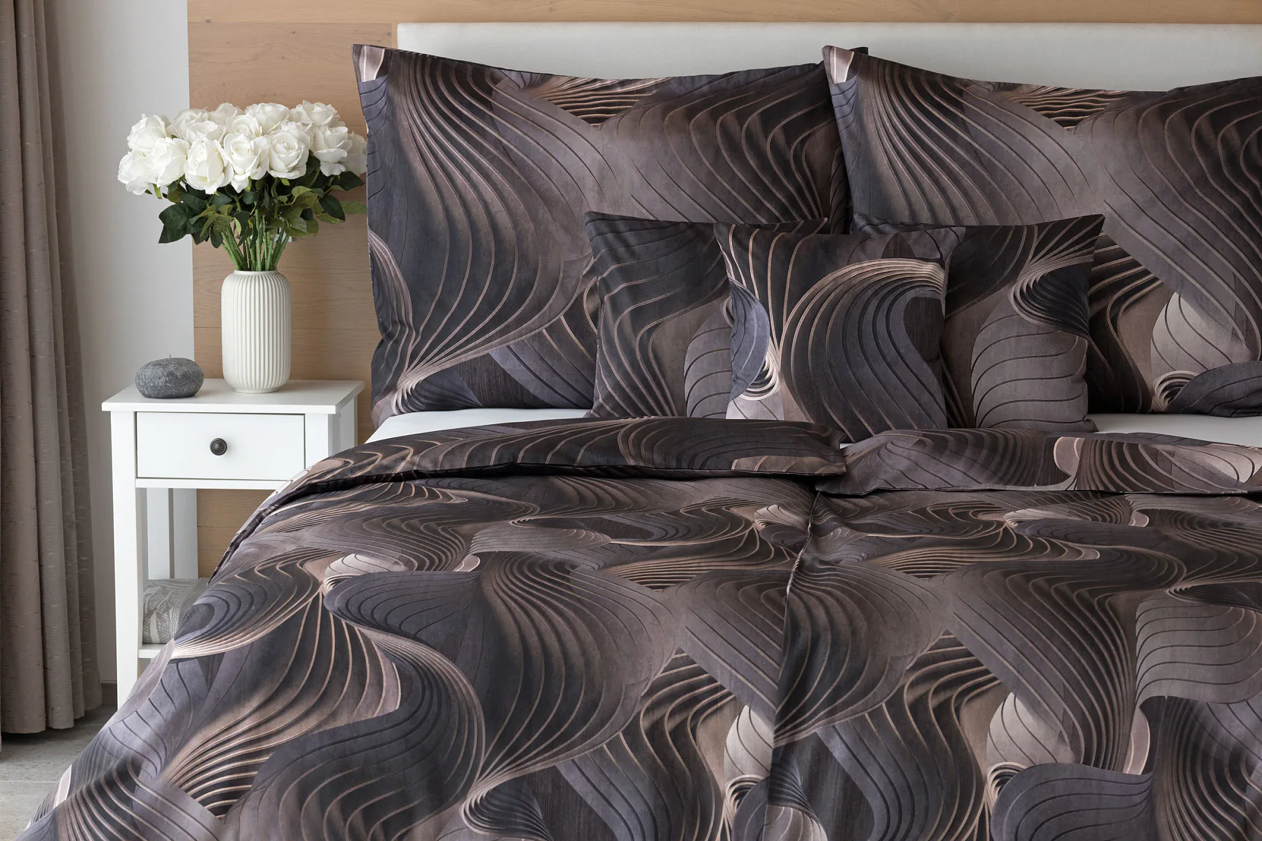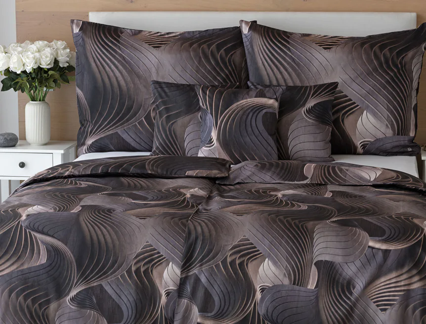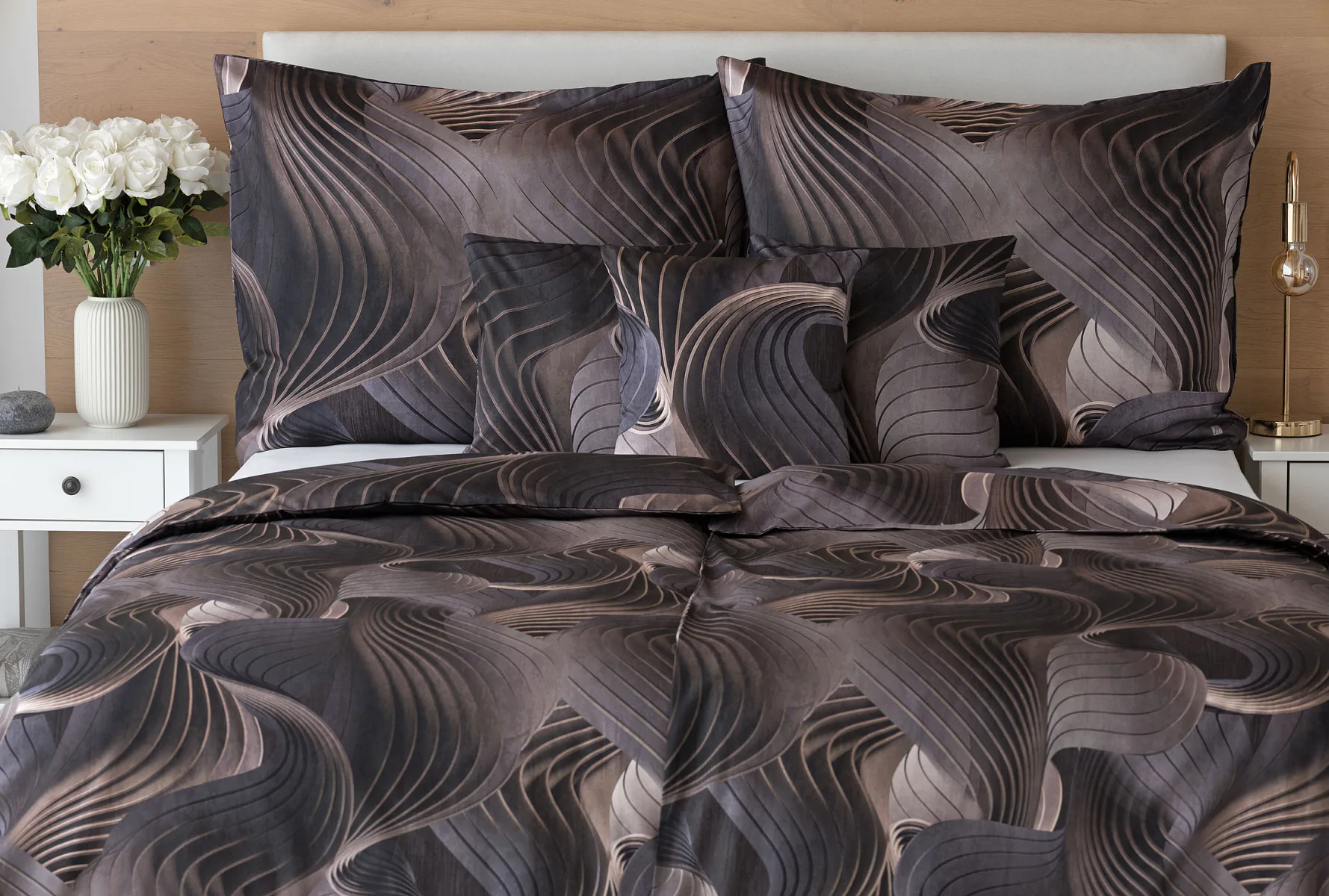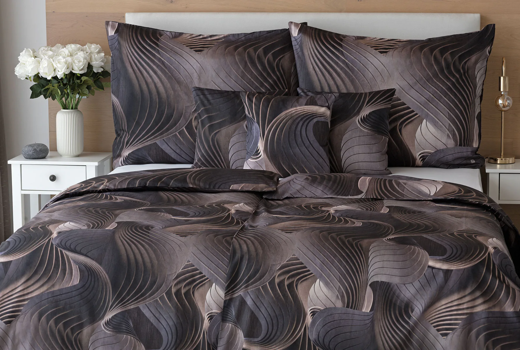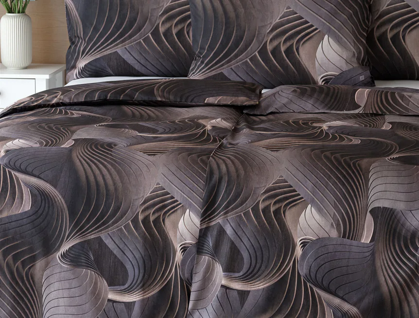 Objevte hloubku a styl s naším novým bavlněným povlečením Velvet. Originální vlnkovaný motiv vytváří optický 3D efekt, který dodává vzoru dynamiku, zatímco hřejivá paleta hnědých a šedých tónů uklidňuje a přináší jemnou eleganci do vaší ložnice. O precizní detail tištěného vzoru se postarala nejmodernější digitální technologie a hebký bavlněný satén propůjčil ložnímu povlečení decentní odlesk, který si tento vzor opravdu zaslouží.