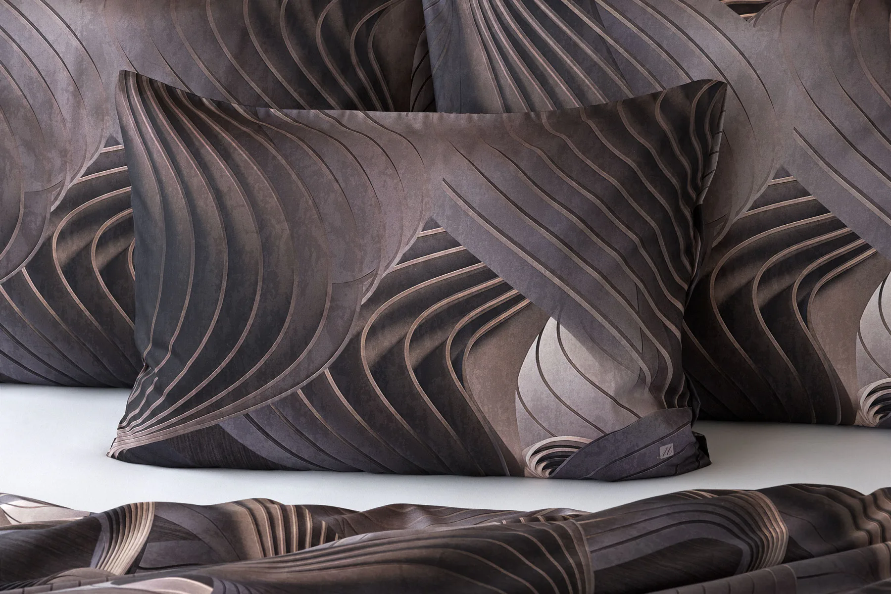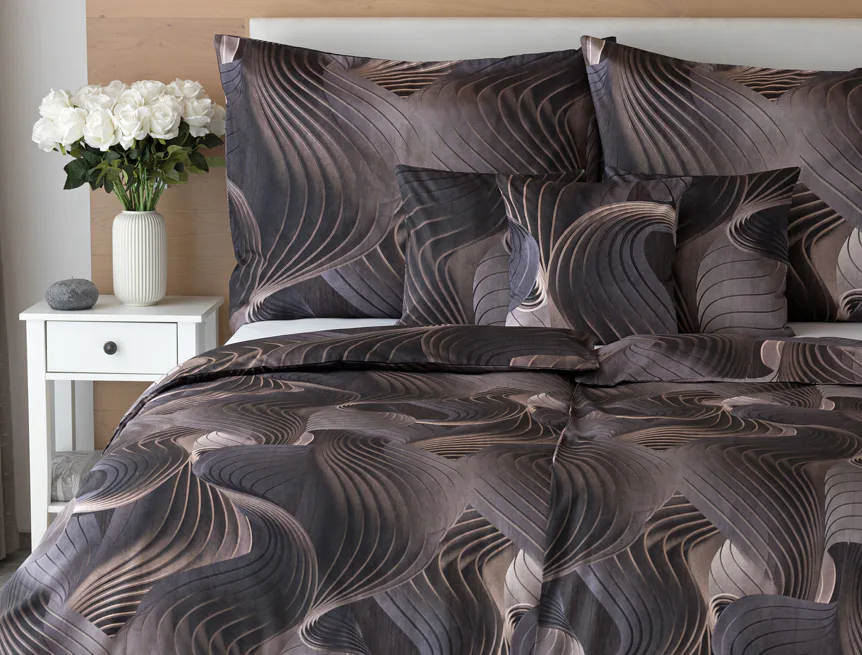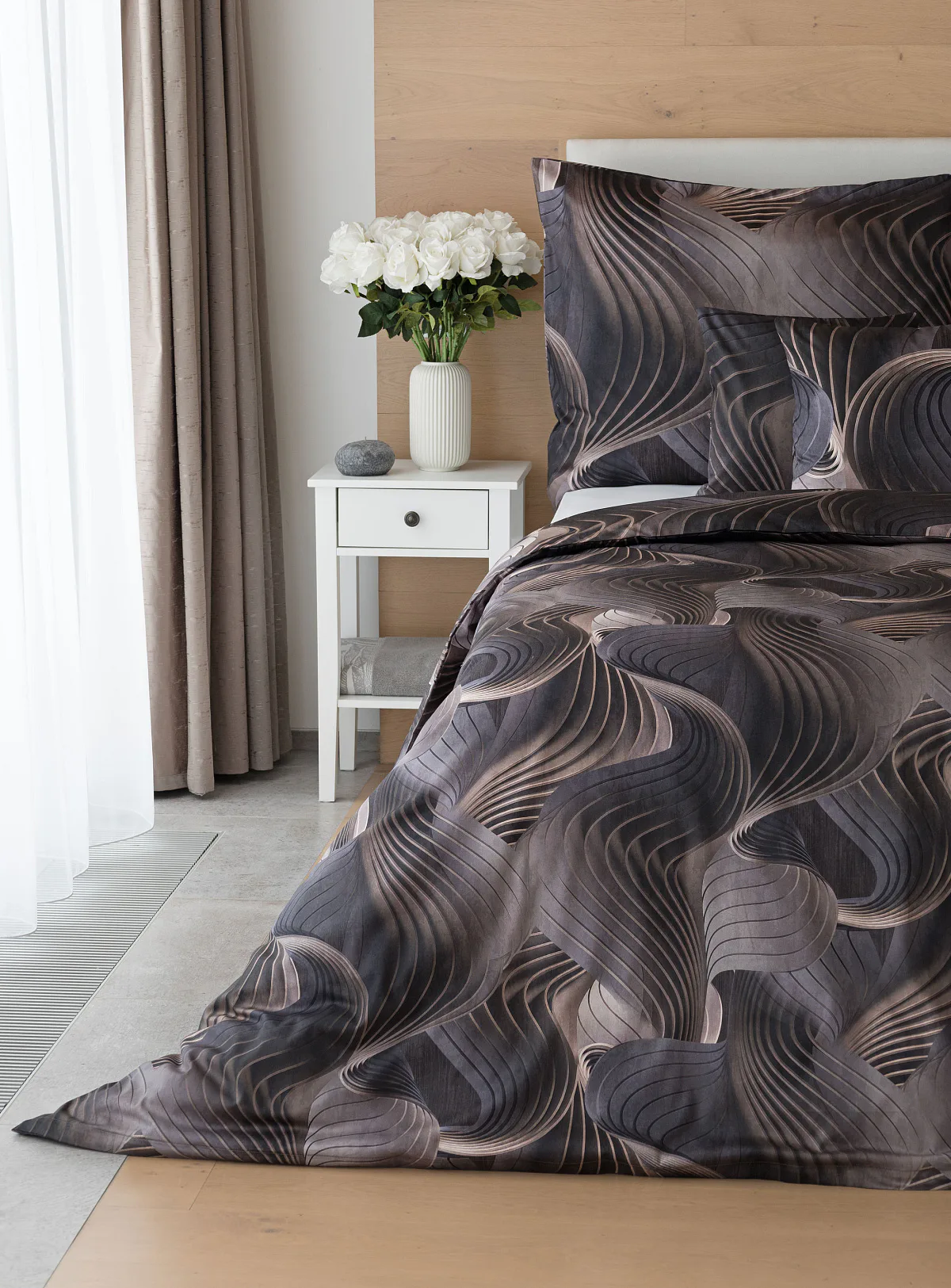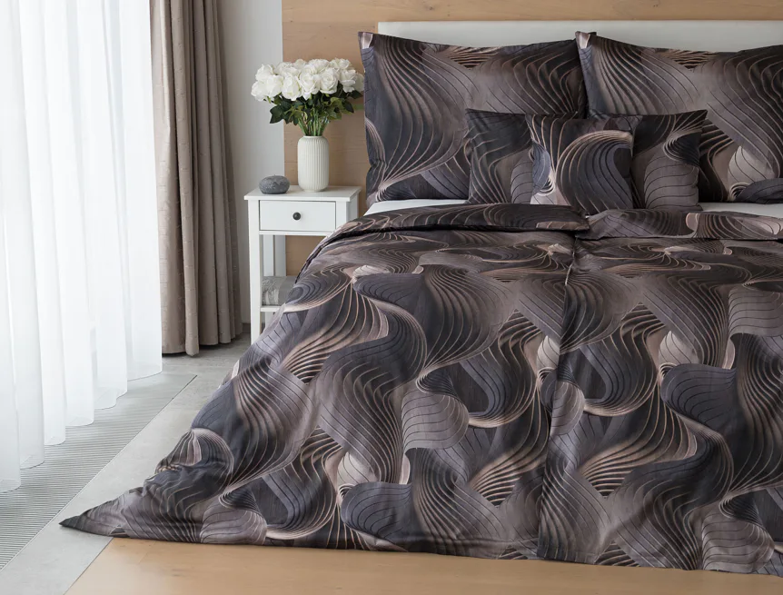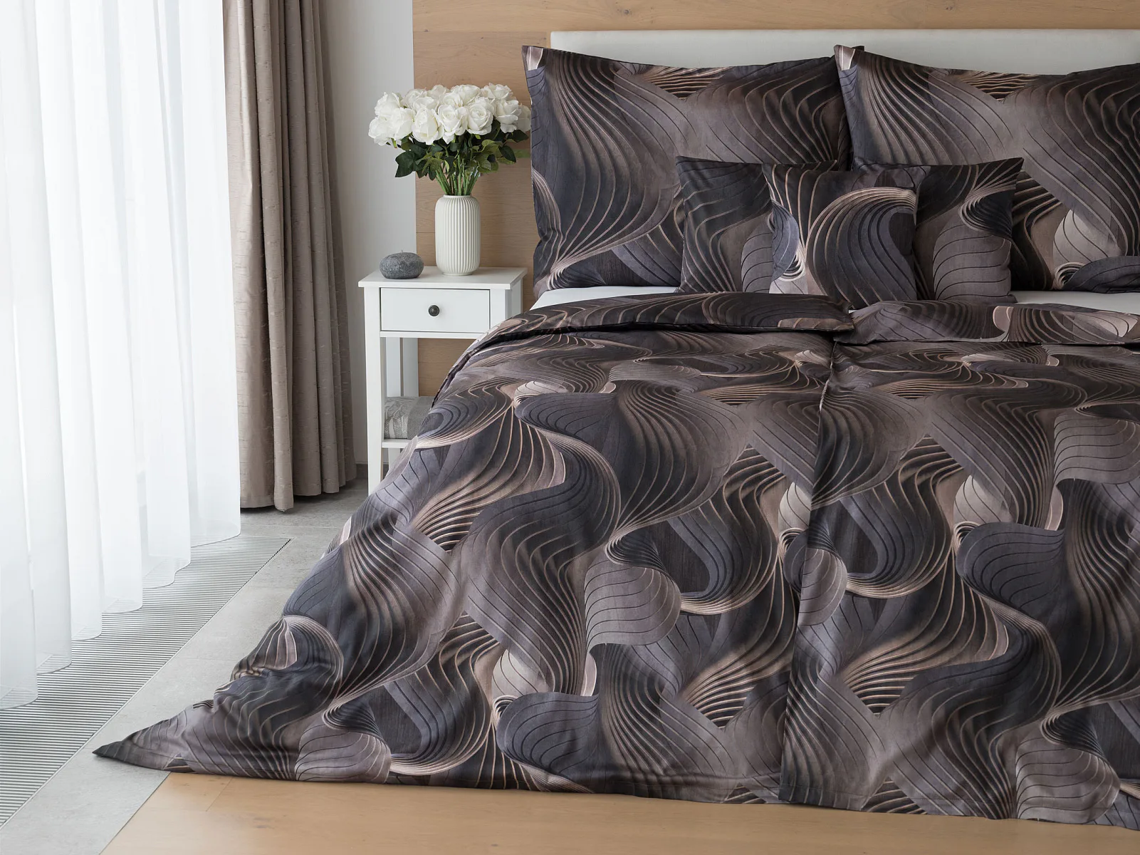 Objevte hloubku a styl s naším novým bavlněným povlečením Velvet. Originální vlnkovaný motiv vytváří optický 3D efekt, který dodává vzoru dynamiku, zatímco hřejivá paleta hnědých a šedých tónů uklidňuje a přináší jemnou eleganci do vaší ložnice. O precizní detail tištěného vzoru se postarala nejmodernější digitální technologie a hebký bavlněný satén propůjčil ložnímu povlečení decentní odlesk, který si tento vzor opravdu zaslouží.