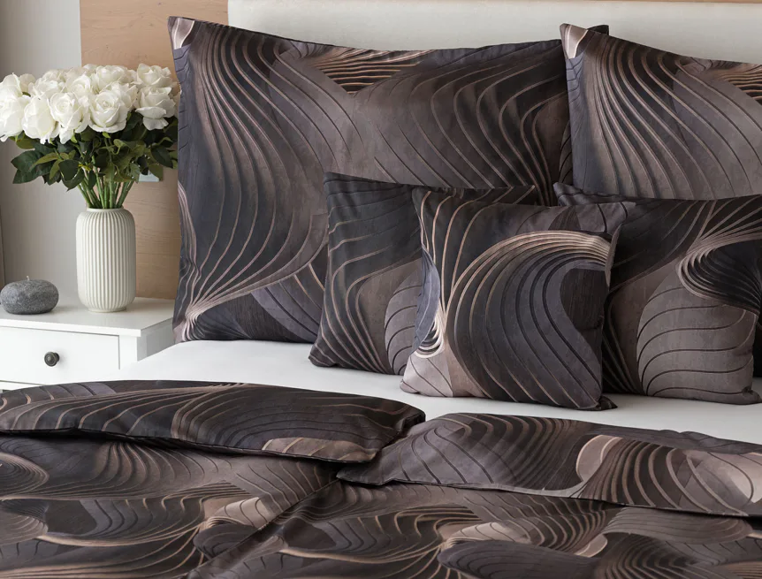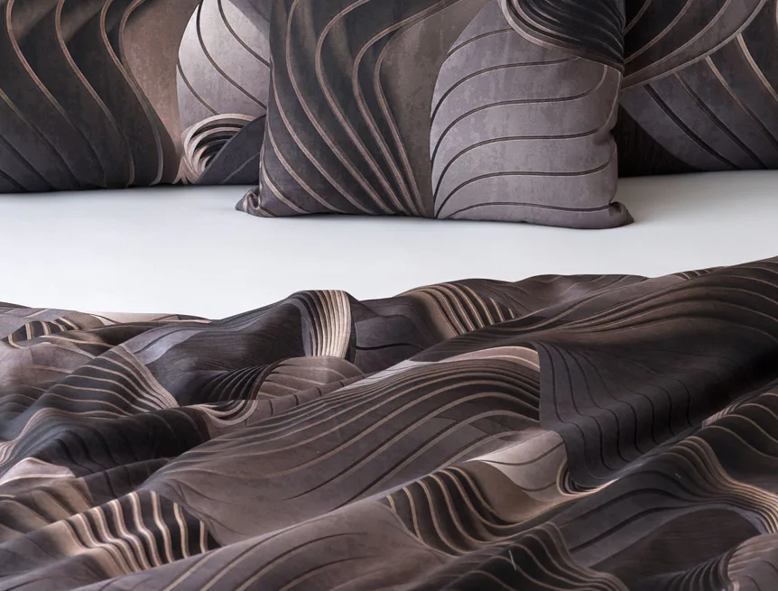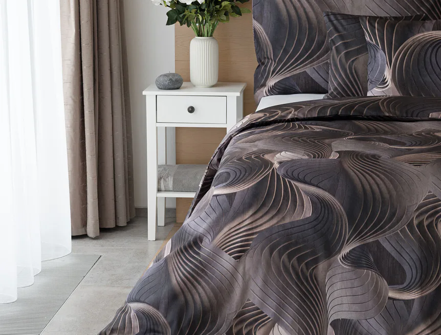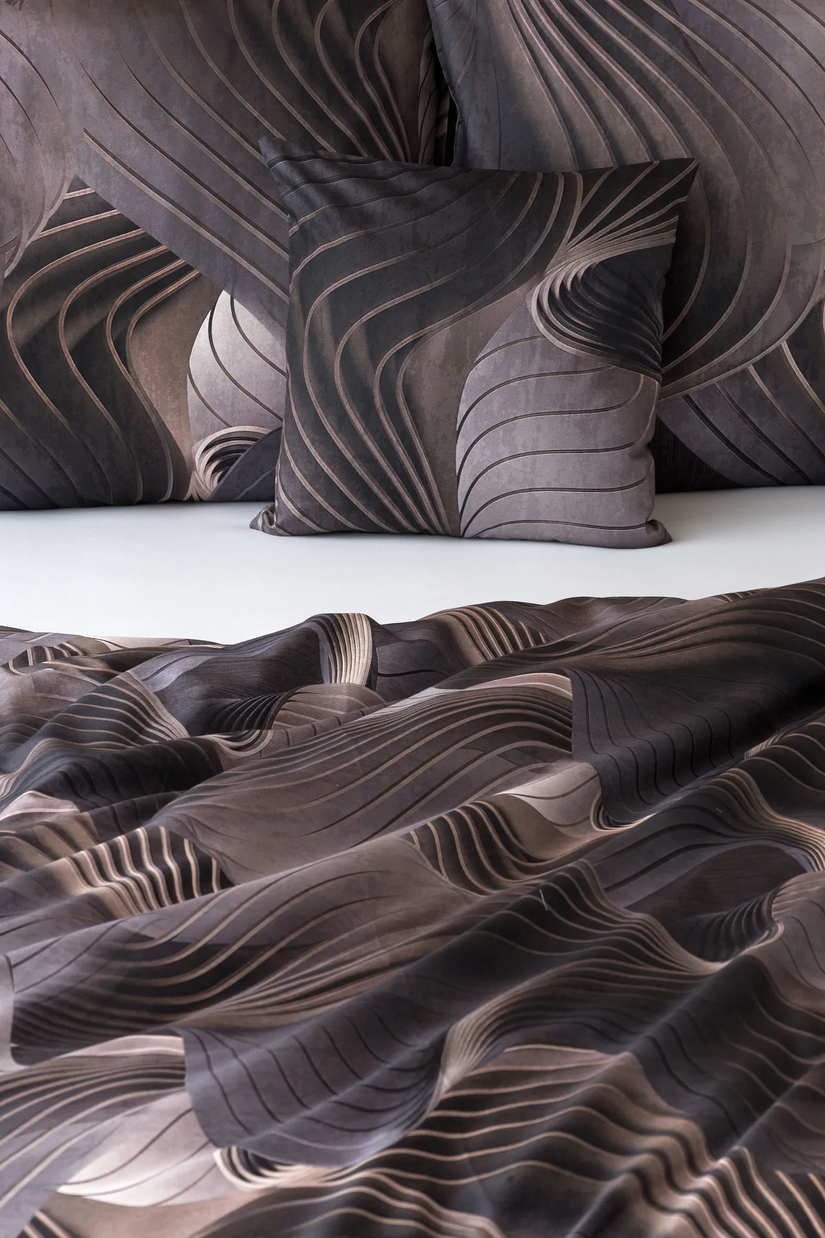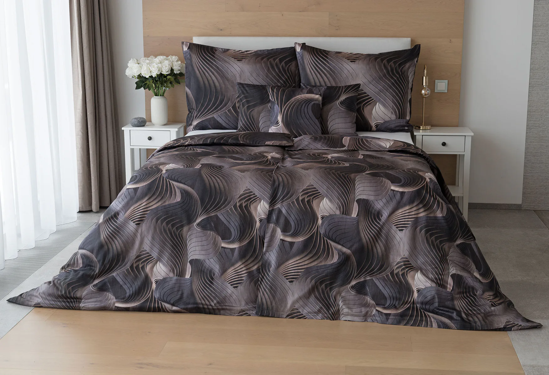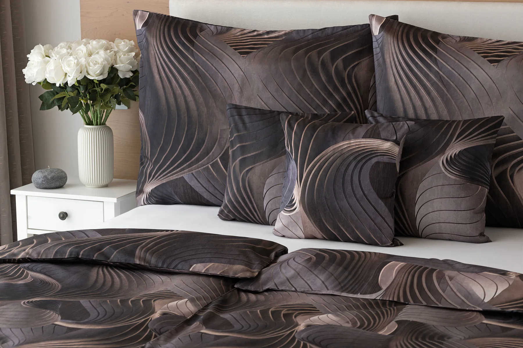 Objevte hloubku a styl s naším novým bavlněným povlečením Velvet. Originální vlnkovaný motiv vytváří optický 3D efekt, který dodává vzoru dynamiku, zatímco hřejivá paleta hnědých a šedých tónů uklidňuje a přináší jemnou eleganci do vaší ložnice. O precizní detail tištěného vzoru se postarala nejmodernější digitální technologie a hebký bavlněný satén propůjčil ložnímu povlečení decentní odlesk, který si tento vzor opravdu zaslouží.
