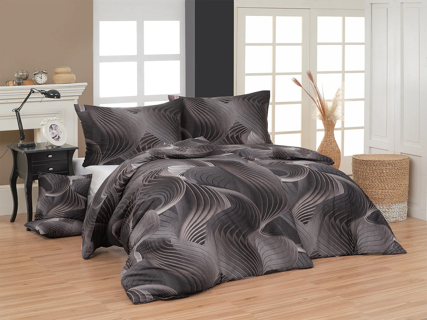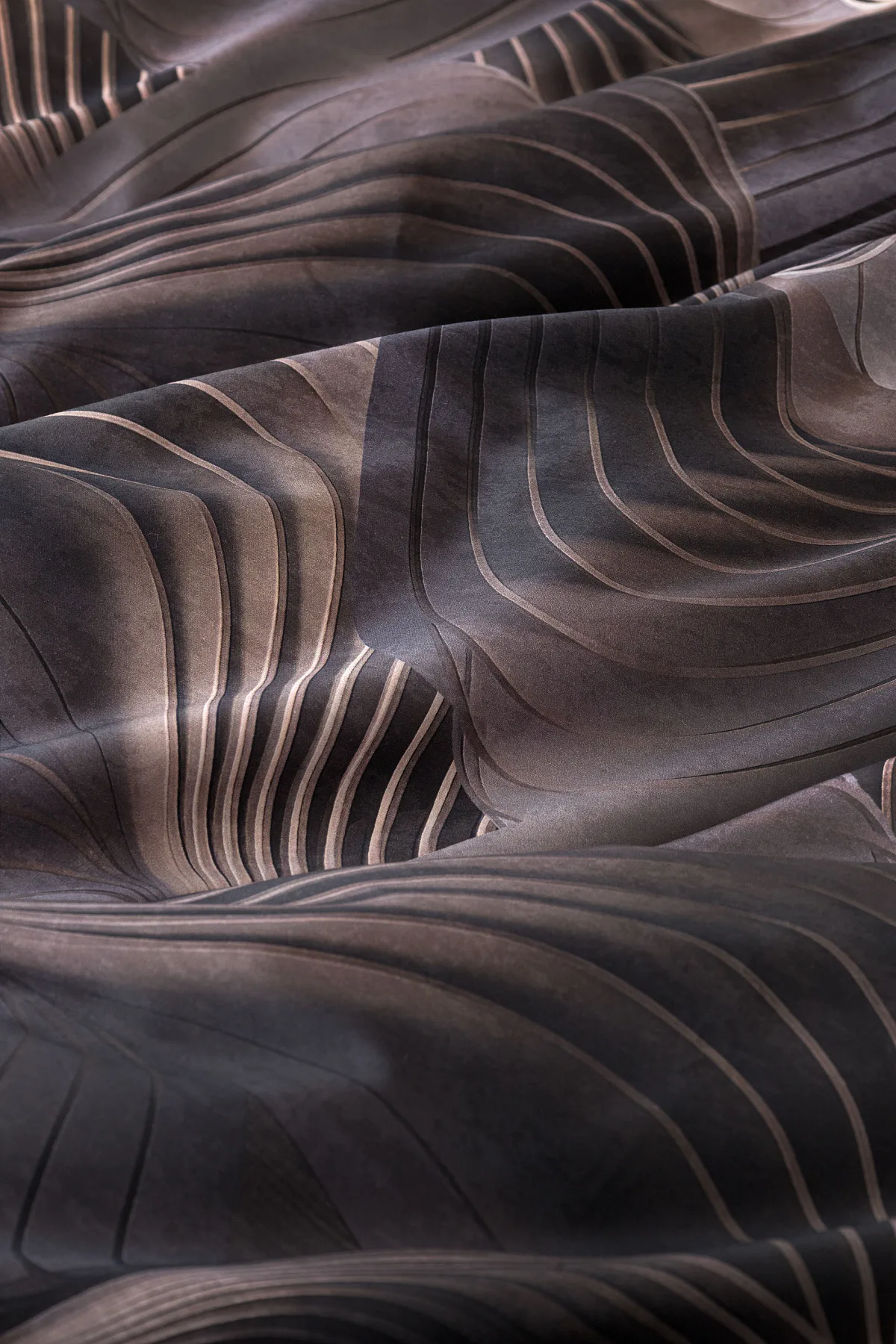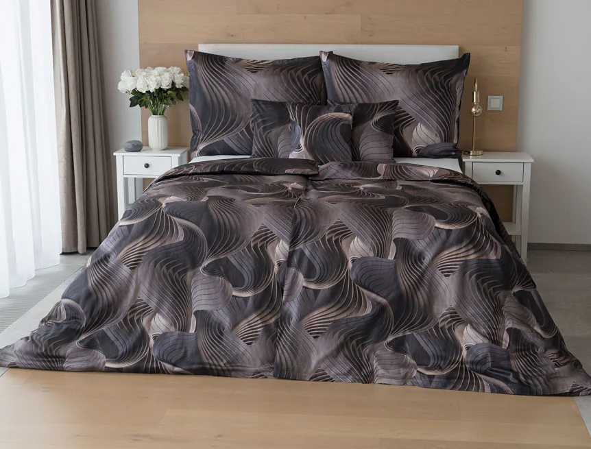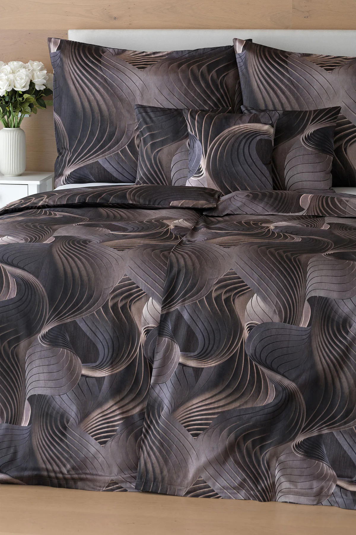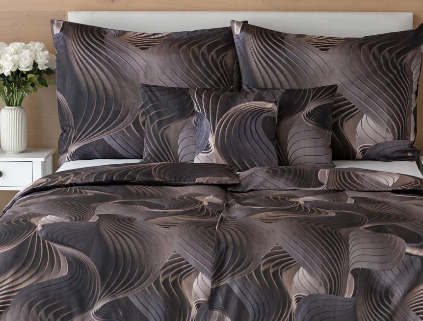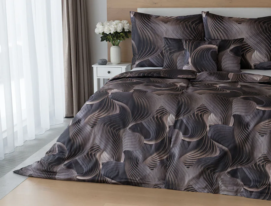 Objevte hloubku a styl s naším novým bavlněným povlečením Velvet. Originální vlnkovaný motiv vytváří optický 3D efekt, který dodává vzoru dynamiku, zatímco hřejivá paleta hnědých a šedých tónů uklidňuje a přináší jemnou eleganci do vaší ložnice. O precizní detail tištěného vzoru se postarala nejmodernější digitální technologie a hebký bavlněný satén propůjčil ložnímu povlečení decentní odlesk, který si tento vzor opravdu zaslouží.