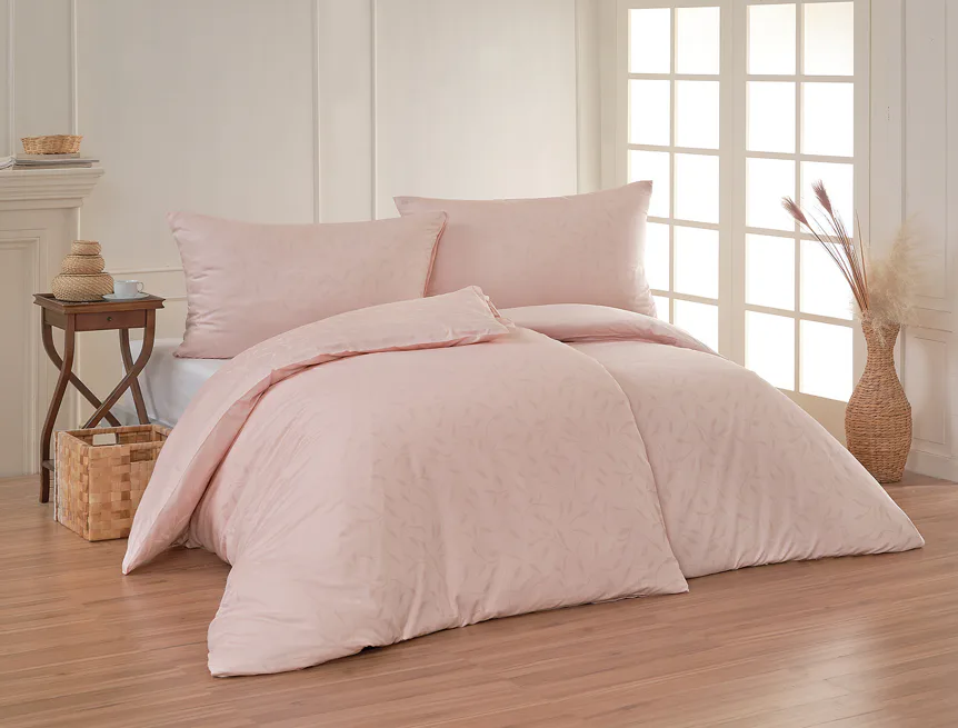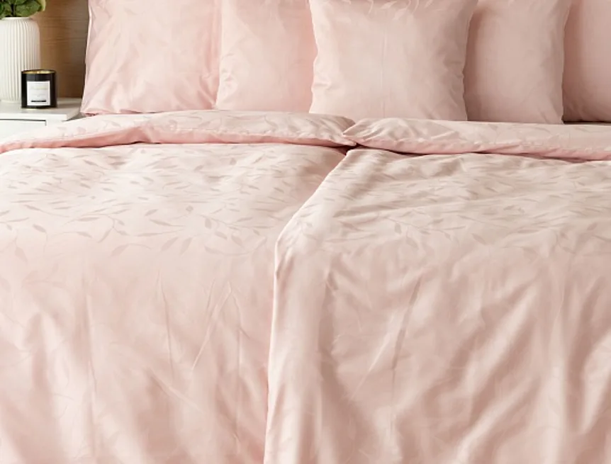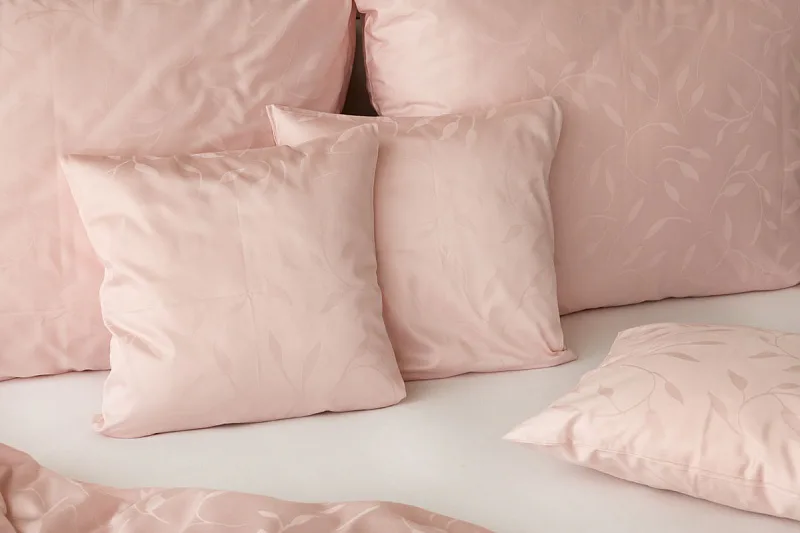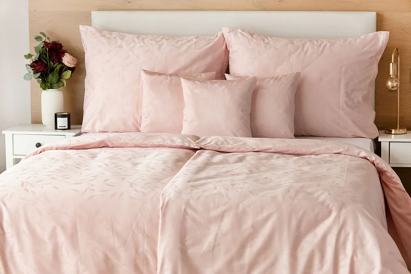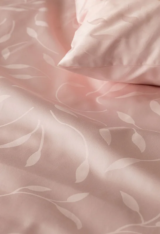 Tato synonyma vystihují žakárové damaškové povlečení VICTORIA s decentním florálním vzorem. Přirozený lesk a jemné vytkané lístky se dokonale snoubí s romantickým pastelově růžovým odstínem.