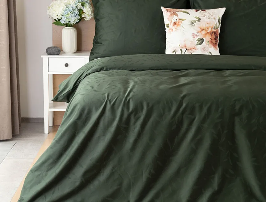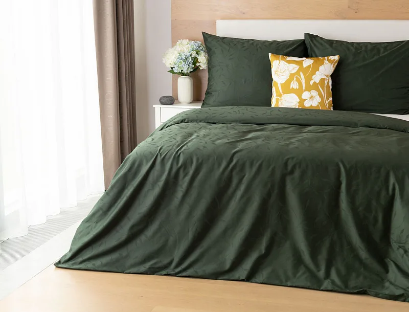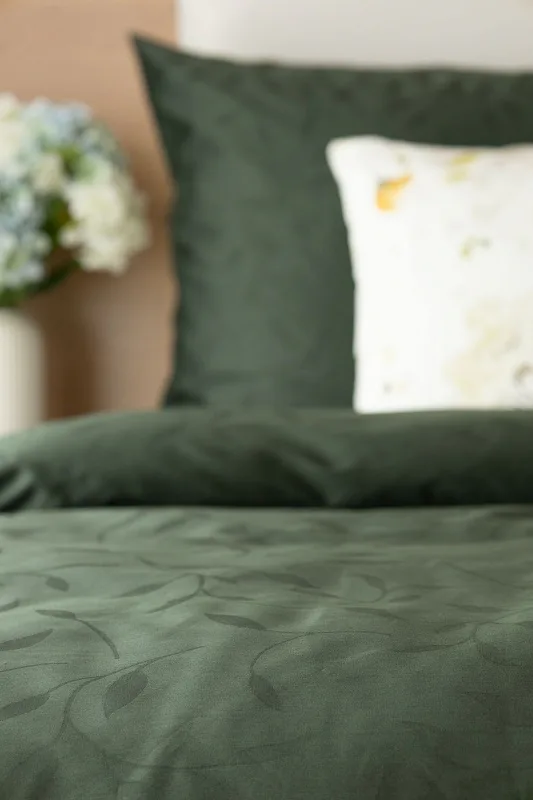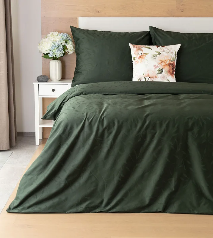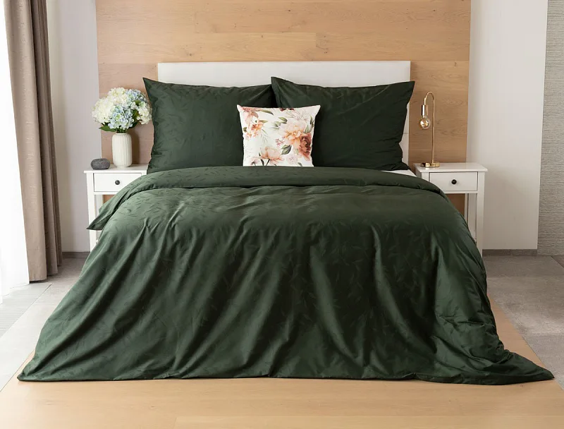 Tato synonyma vystihují žakárové damaškové povlečení VICTORIA s decentním florálním vzorem. Přirozený lesk a jemné vytkané lístky se dokonale snoubí s temně zeleným odstínem.