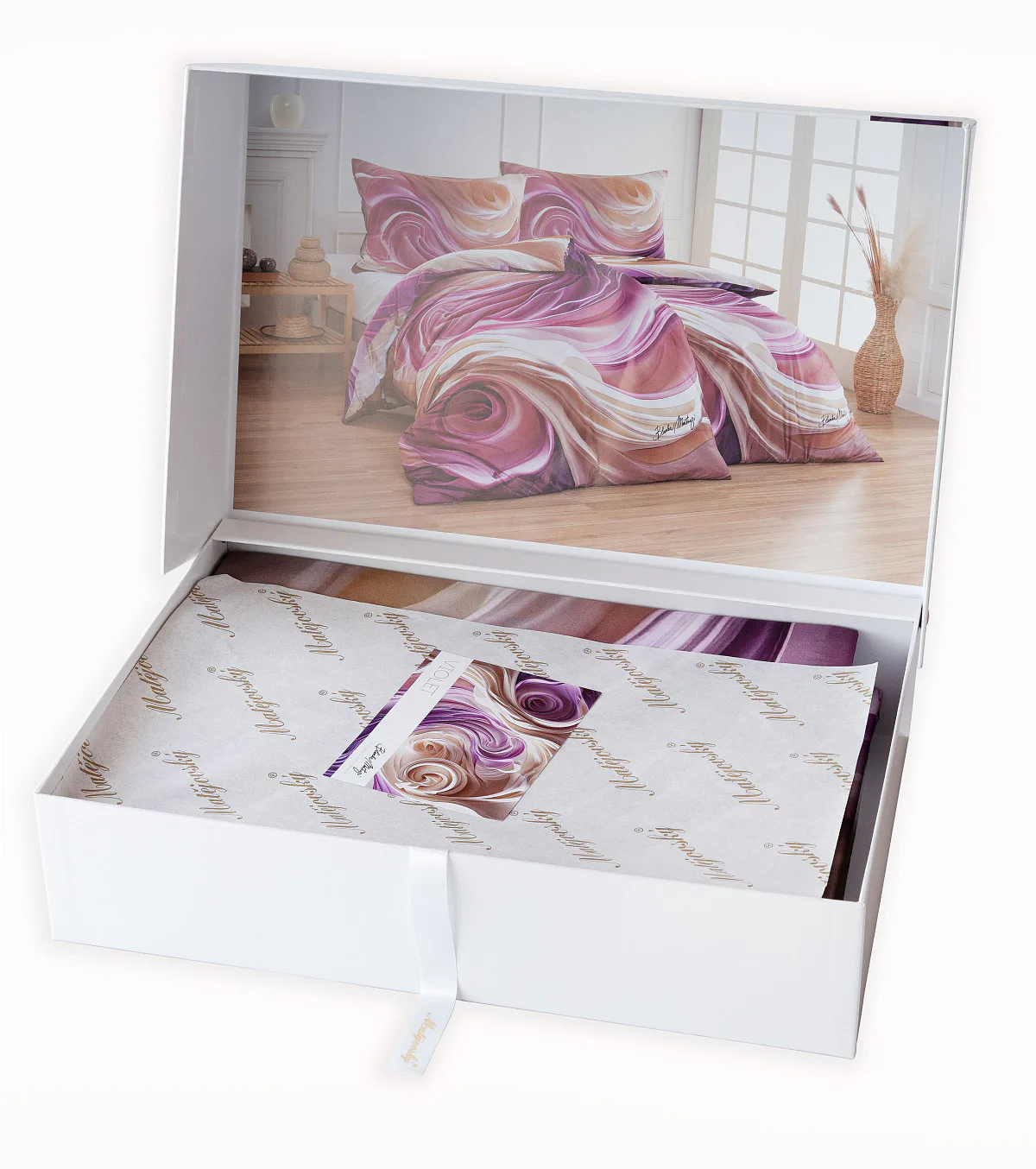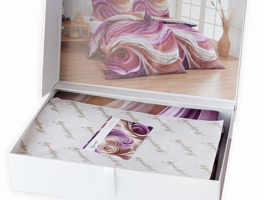 Povlečení je dodáváno v luxusní dárkové krabici (v případě dvou stejných setů baleno v jedné krabici jako sada povlečení na manželské lůžko).