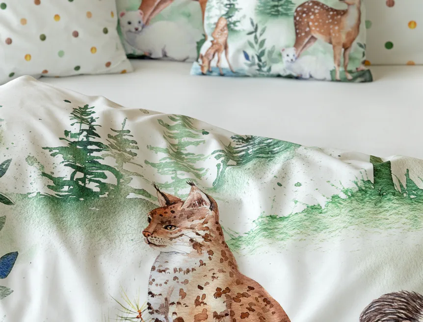 S bavlněným povlečením Wild se dětský pokojíček promění v útulnou říši lesních zvířátek, o kterých můžete před spaním vyprávět příběhy. Podkladem tohoto vzoru se stala ruční malba, která vyniká na povlečení v precizním detailu díky nejmodernějšímu digitálnímu tisku. Vaše děti budou spokojeně snít díky vysoce kvalitnímu materiálu z výběrové 100% bavlny