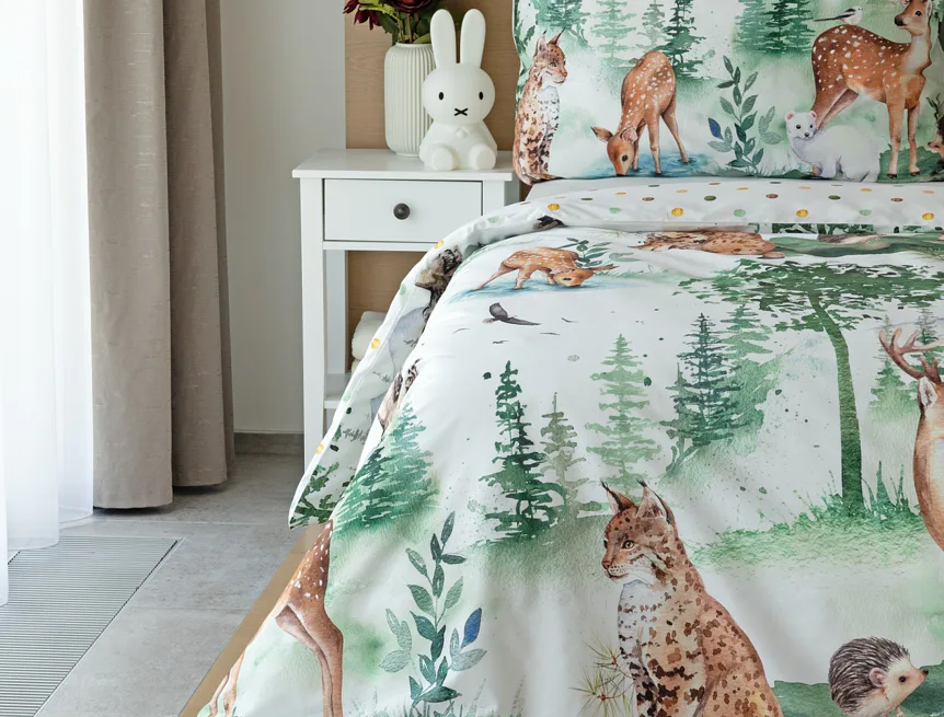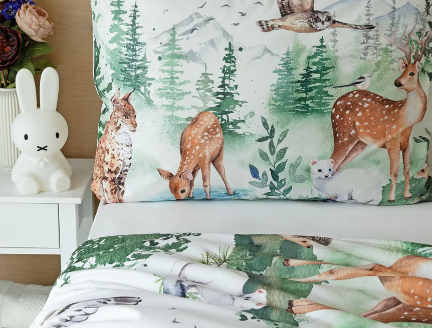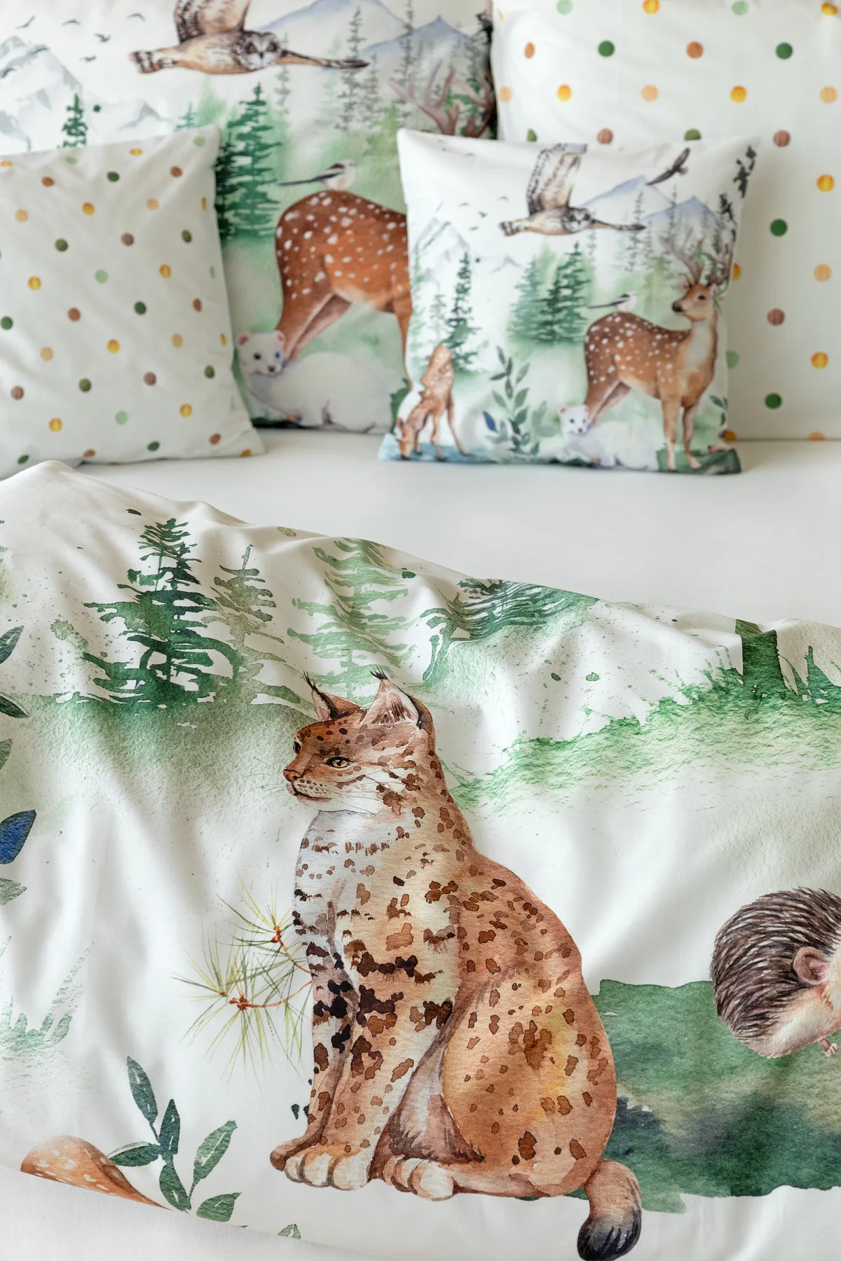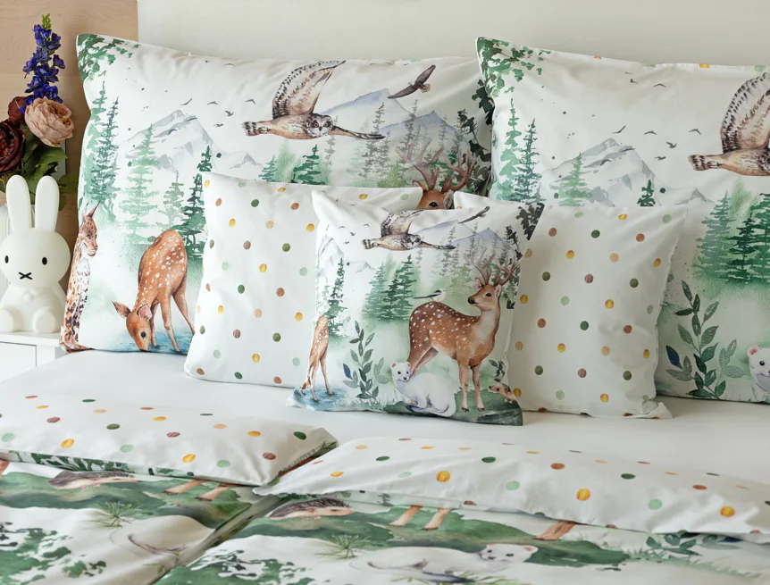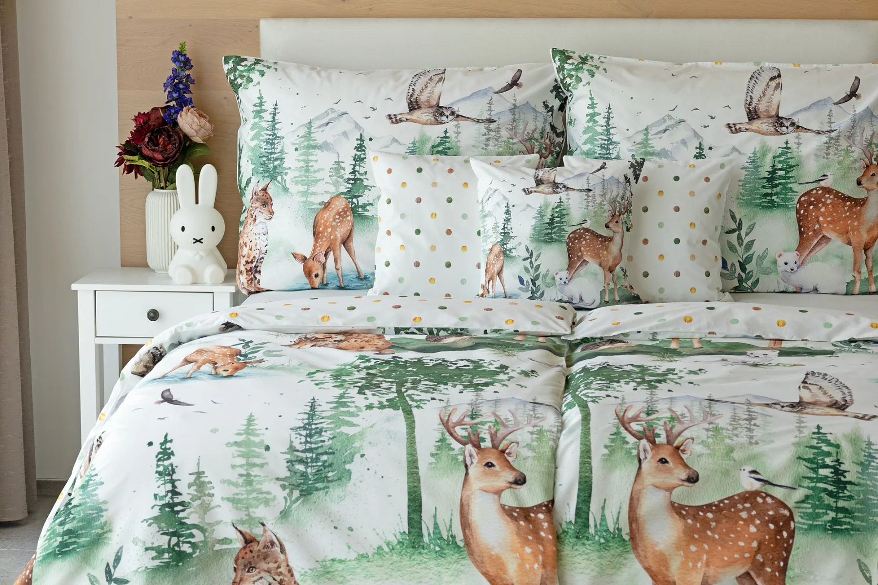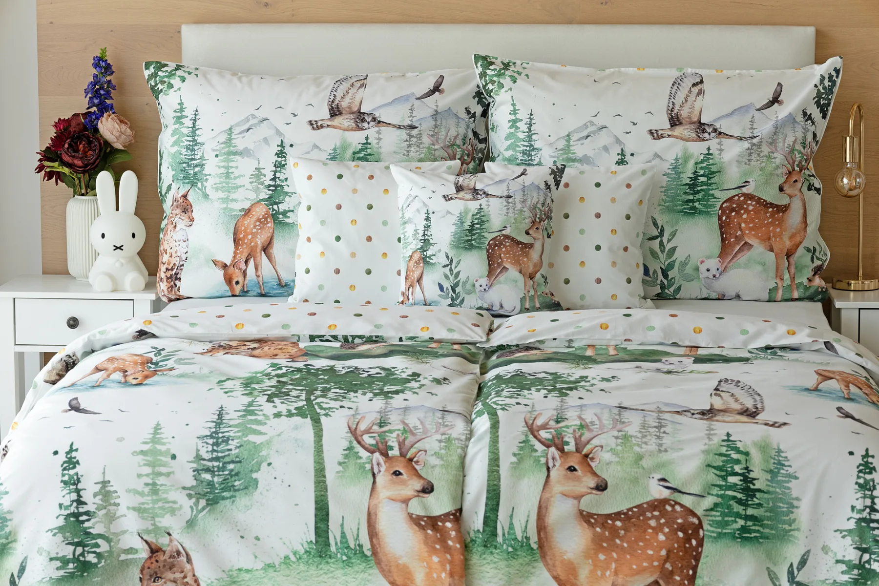 S bavlněným povlečením Wild se dětský pokojíček promění v útulnou říši lesních zvířátek, o kterých můžete před spaním vyprávět příběhy. Podkladem tohoto vzoru se stala ruční malba, která vyniká na povlečení v precizním detailu díky nejmodernějšímu digitálnímu tisku. Vaše děti budou spokojeně snít díky vysoce kvalitnímu materiálu z výběrové 100% bavlny