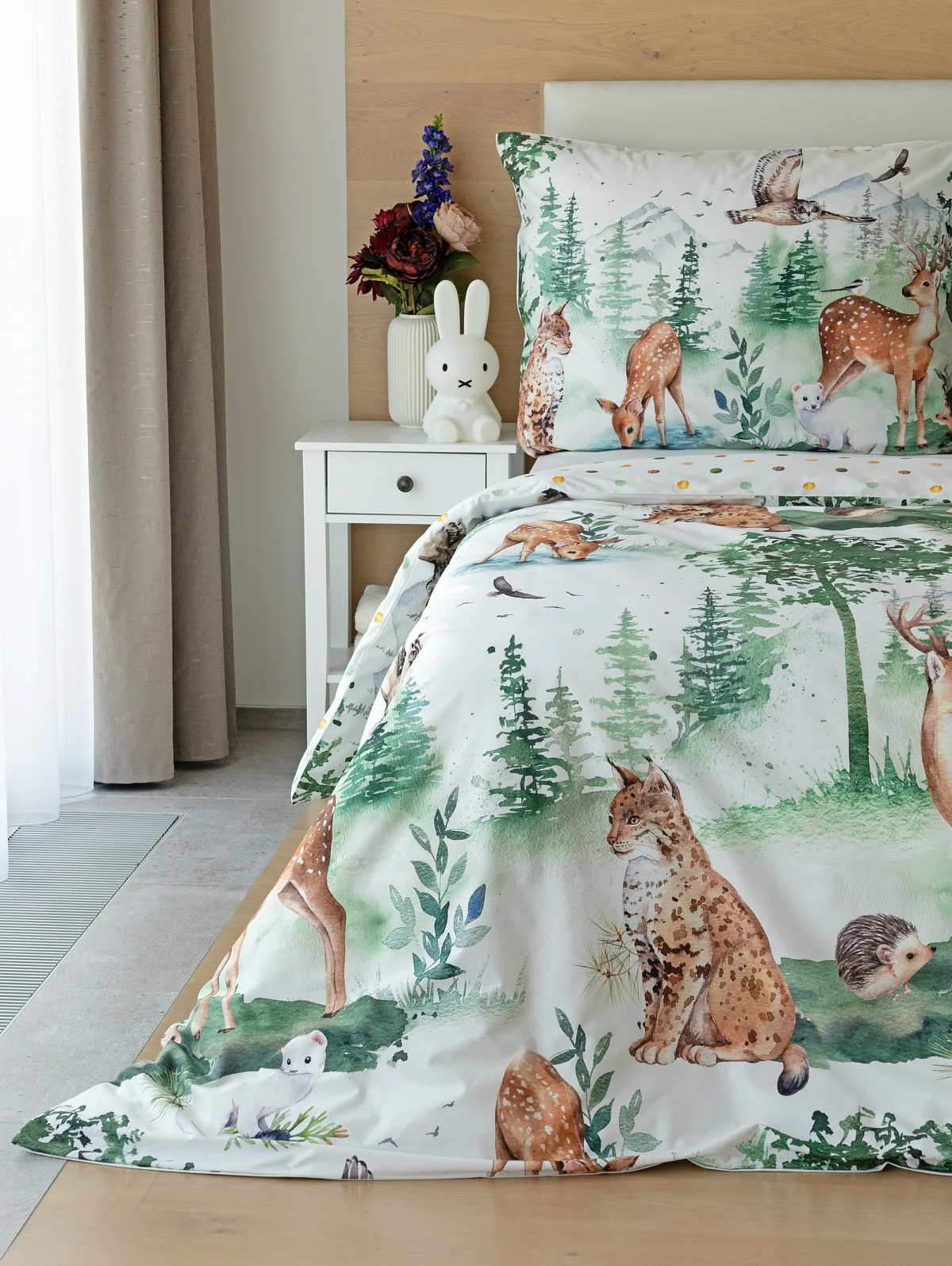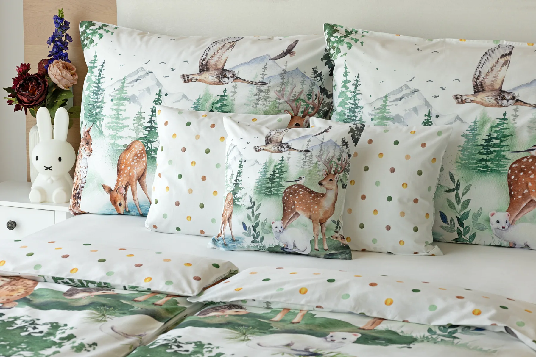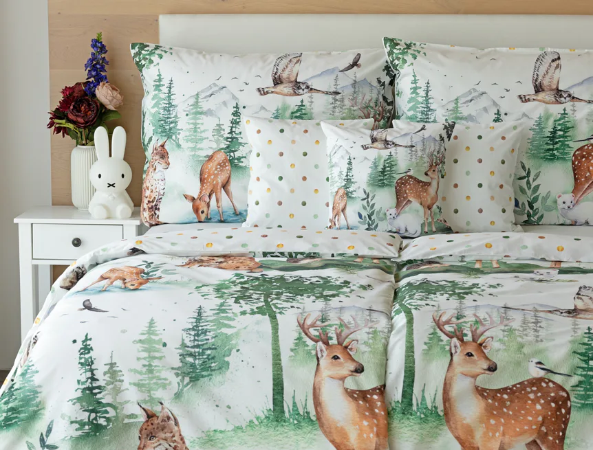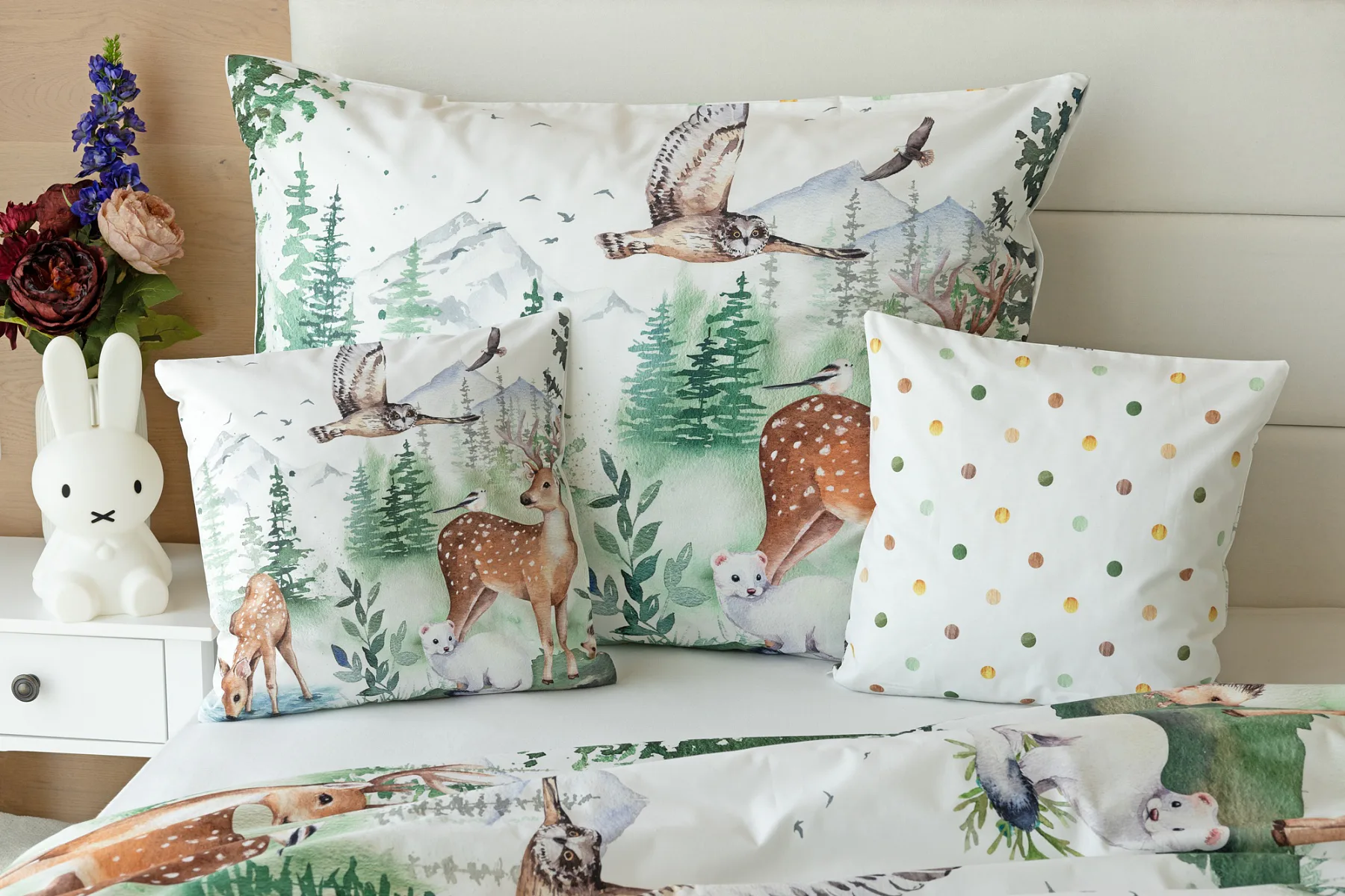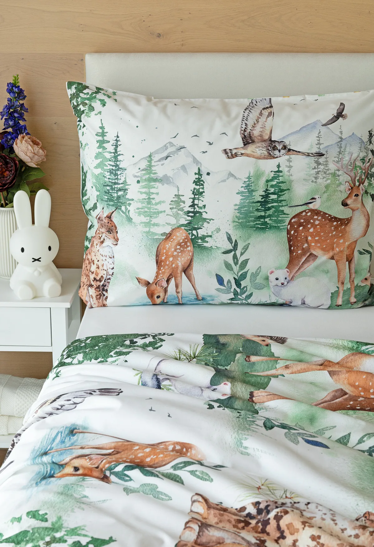 S bavlněným povlečením Wild se dětský pokojíček promění v útulnou říši lesních zvířátek, o kterých můžete před spaním vyprávět příběhy. Podkladem tohoto vzoru se stala ruční malba, která vyniká na povlečení v precizním detailu díky nejmodernějšímu digitálnímu tisku. Vaše děti budou spokojeně snít díky vysoce kvalitnímu materiálu z výběrové 100% bavlny