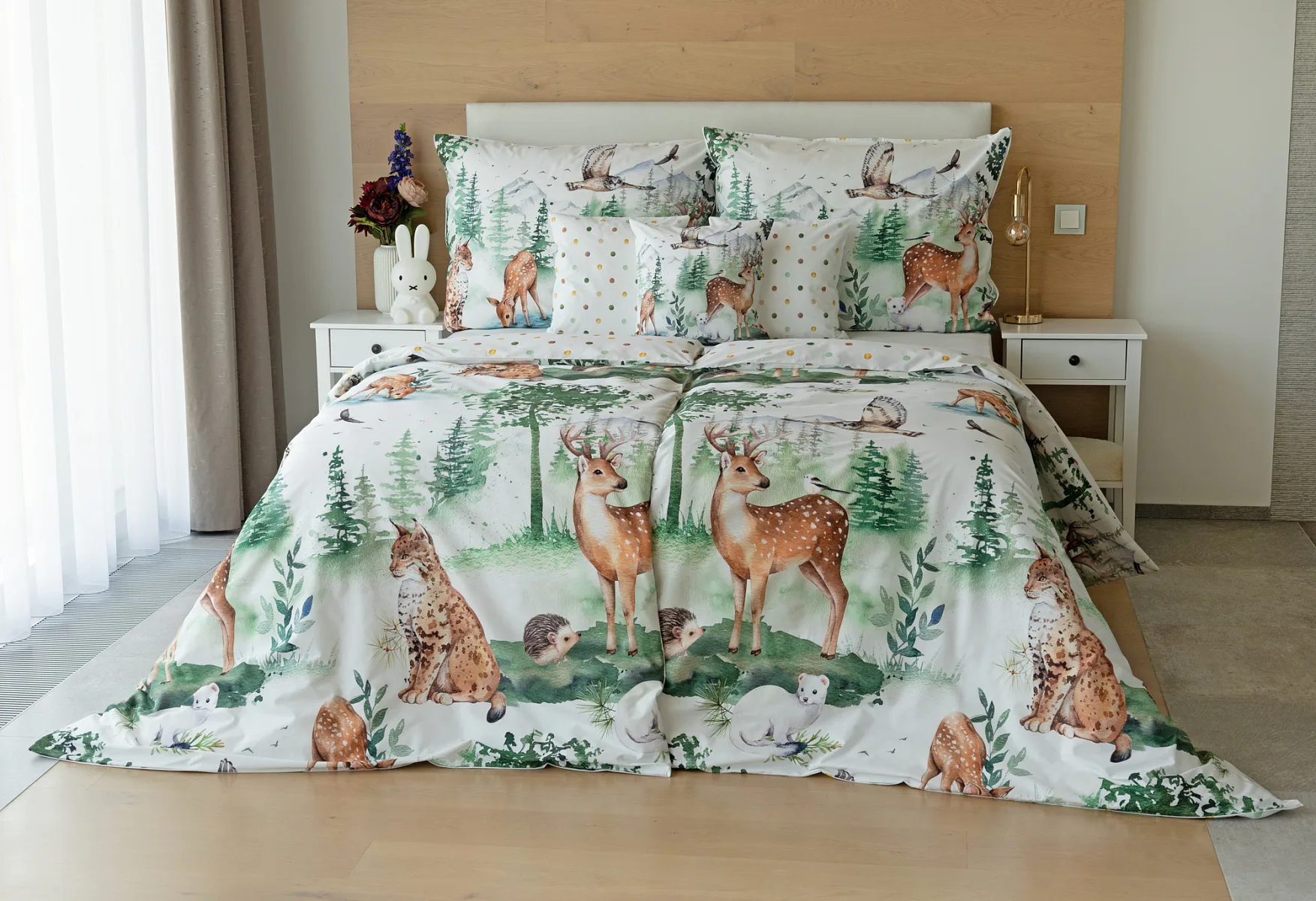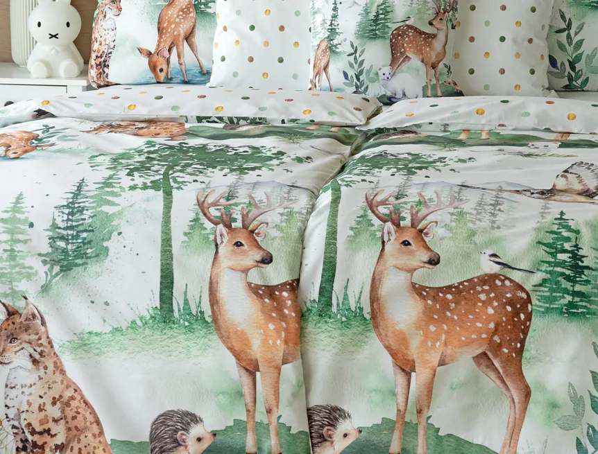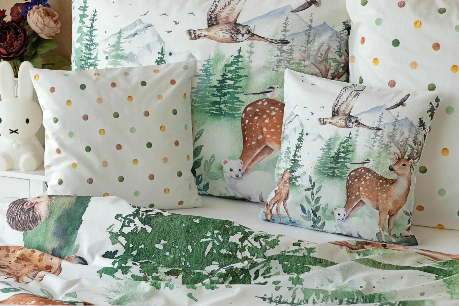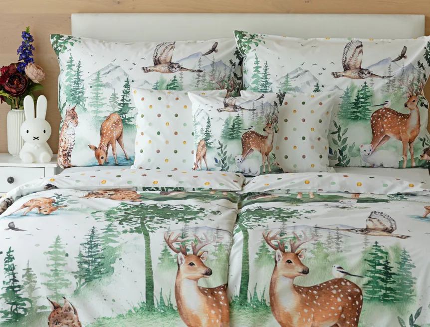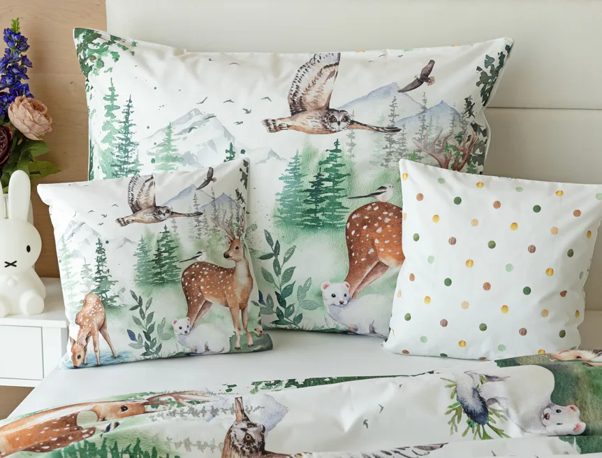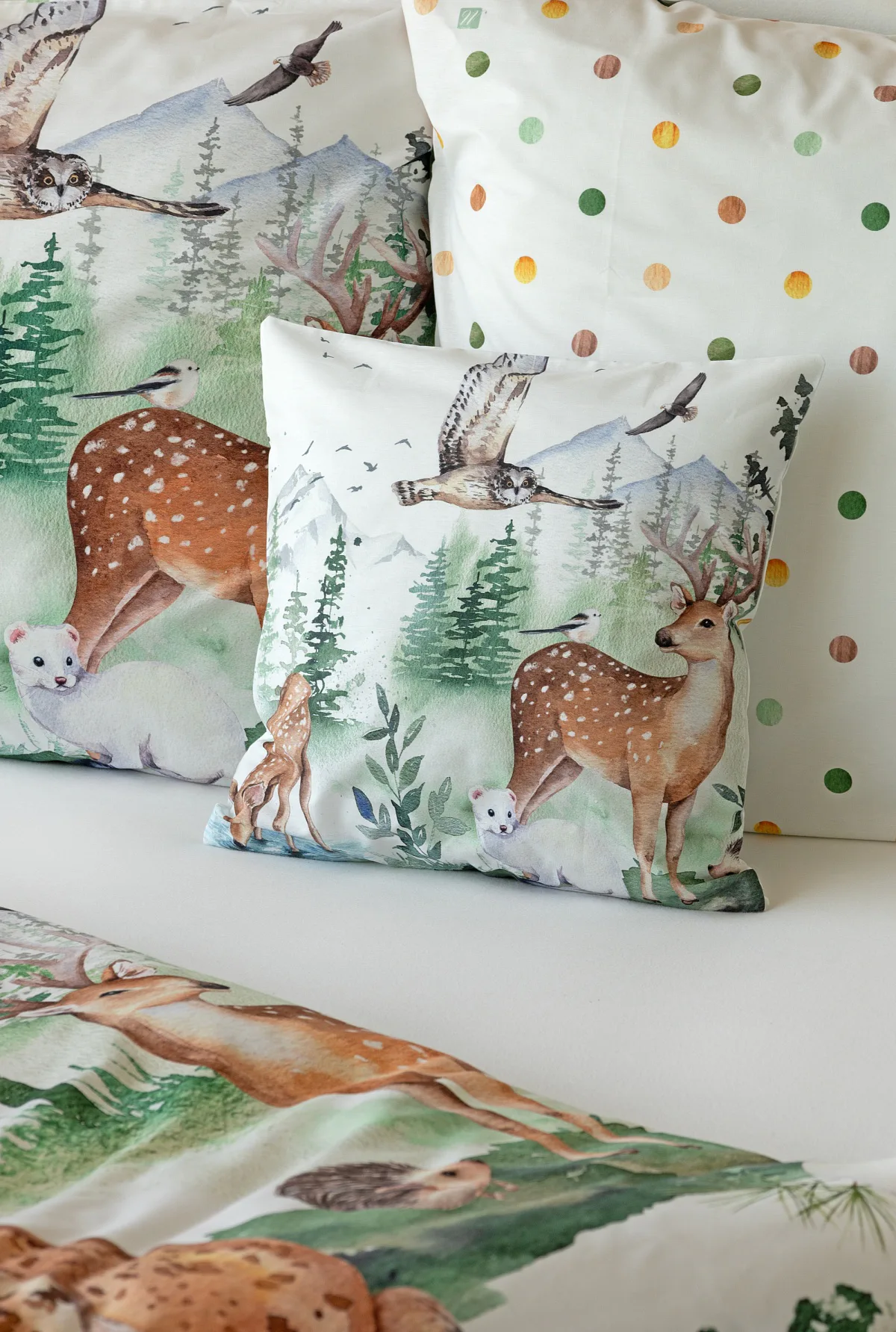 S bavlněným povlečením Wild se dětský pokojíček promění v útulnou říši lesních zvířátek, o kterých můžete před spaním vyprávět příběhy. Podkladem tohoto vzoru se stala ruční malba, která vyniká na povlečení v precizním detailu díky nejmodernějšímu digitálnímu tisku. Vaše děti budou spokojeně snít díky vysoce kvalitnímu materiálu z výběrové 100% bavlny