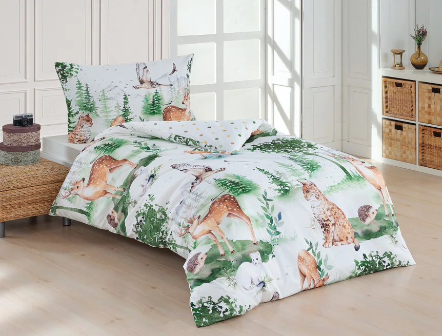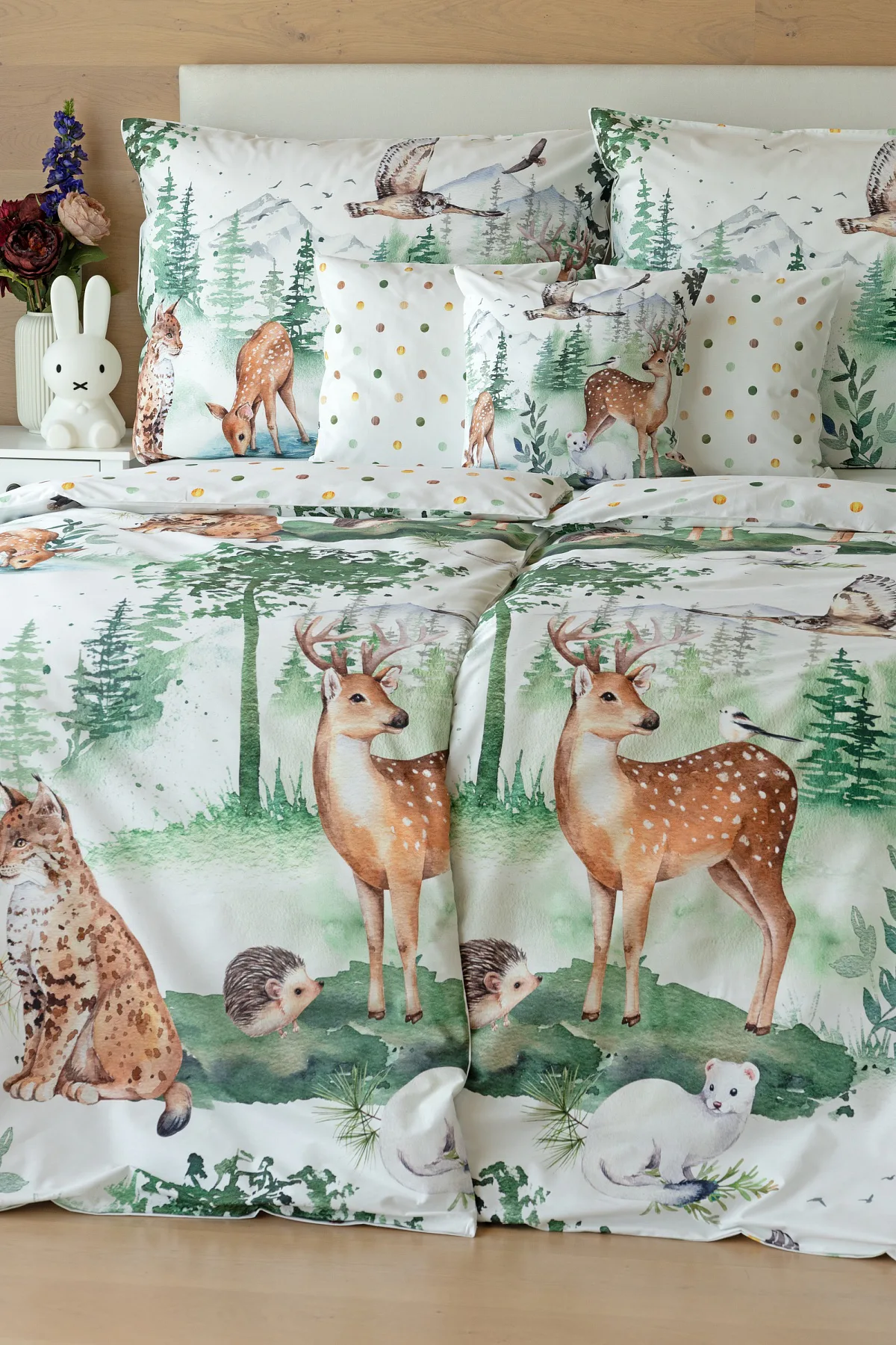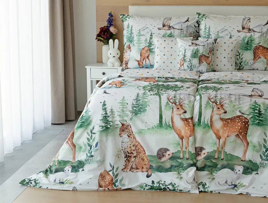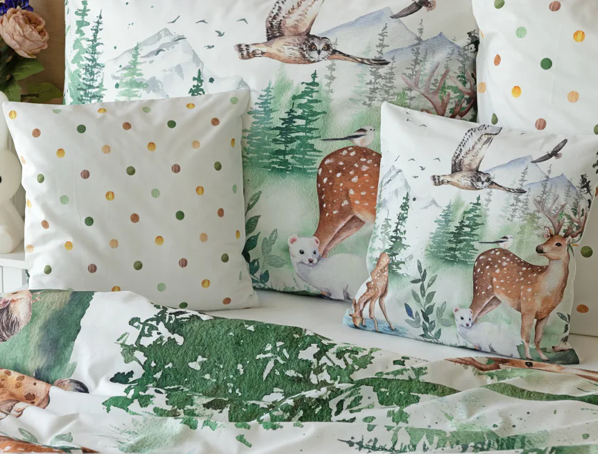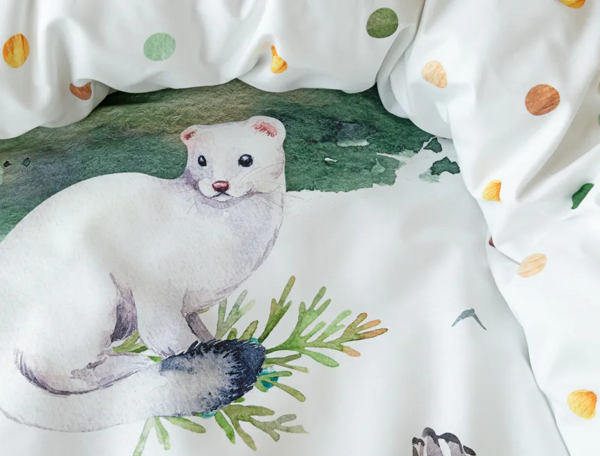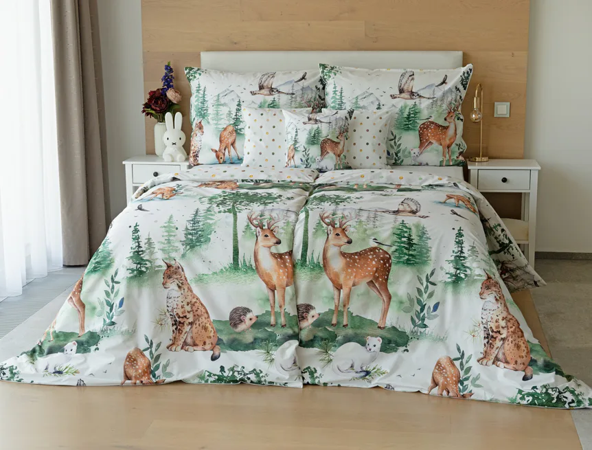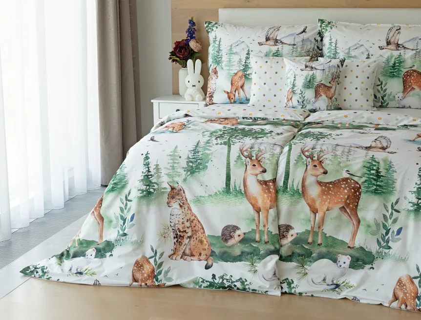 S bavlněným povlečením Wild se dětský pokojíček promění v útulnou říši lesních zvířátek, o kterých můžete před spaním vyprávět příběhy. Podkladem tohoto vzoru se stala ruční malba, která vyniká na povlečení v precizním detailu díky nejmodernějšímu digitálnímu tisku. Vaše děti budou spokojeně snít díky vysoce kvalitnímu materiálu z výběrové 100% bavlny