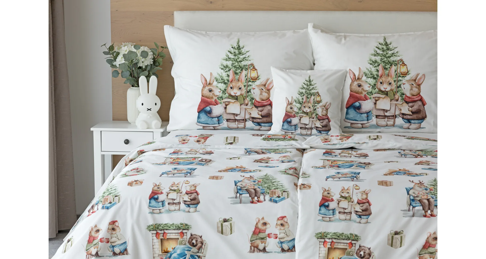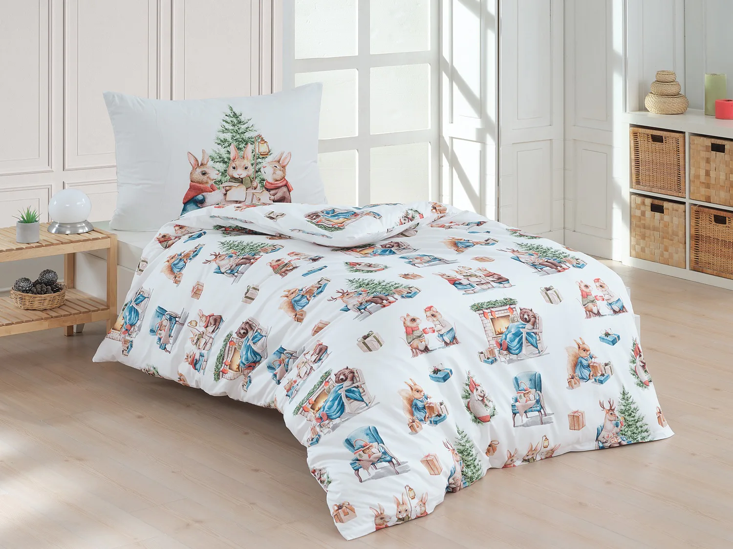 S bavlněným povlečením Winter Stories se budou pohádky před spaním vyprávět samy. Něžné motivy zvířátek s vánoční tematikou vykouzlí v dětském pokojíčku sváteční atmosféru. O spokojený spánek vašich dětí se postará vysoce kvalitní materiál z výběrové 100% bavlny