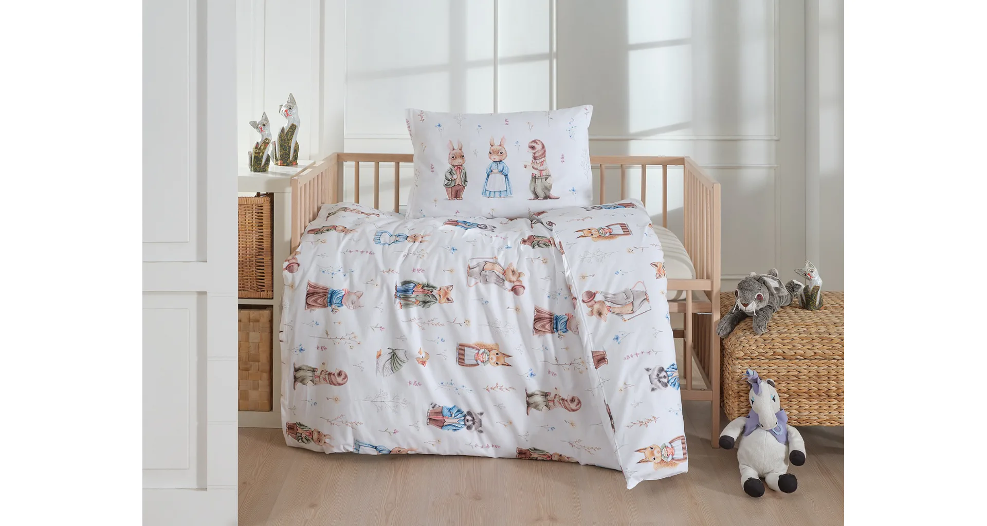 S bavlněným povlečením Wonderland Baby budou sny vašeho děťátka opravdu sladké. Díky neutrálnímu barevnému zpracování může povlečení s roztomilými zvířátky zdobit holčičí i chlapecký pokojíček. O precizní detail okouzlujícího vzoru se postarala nejmodernější digitální tisková technologie