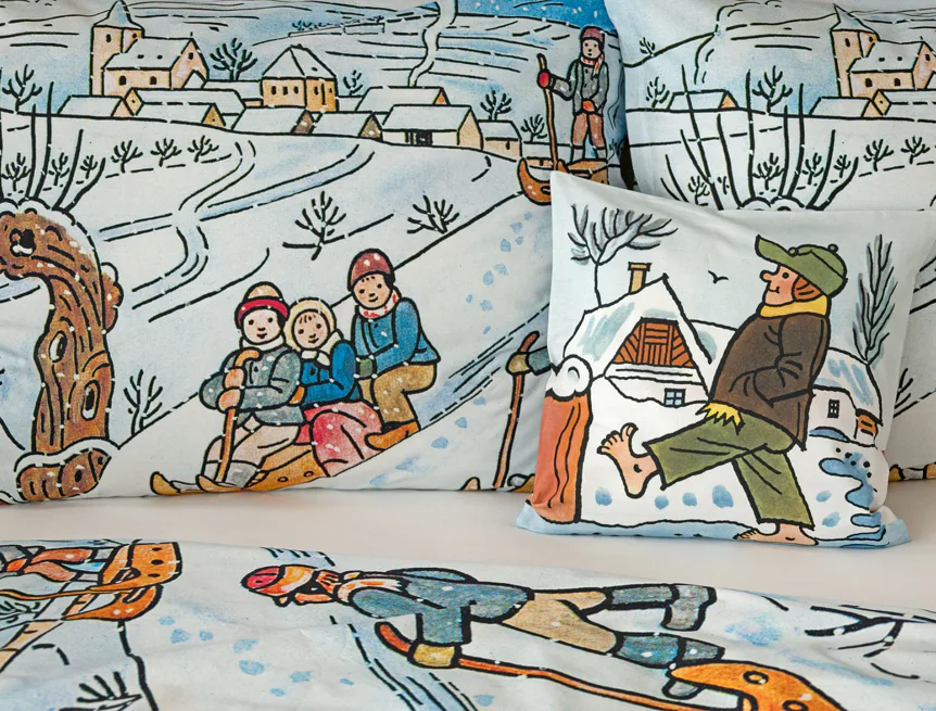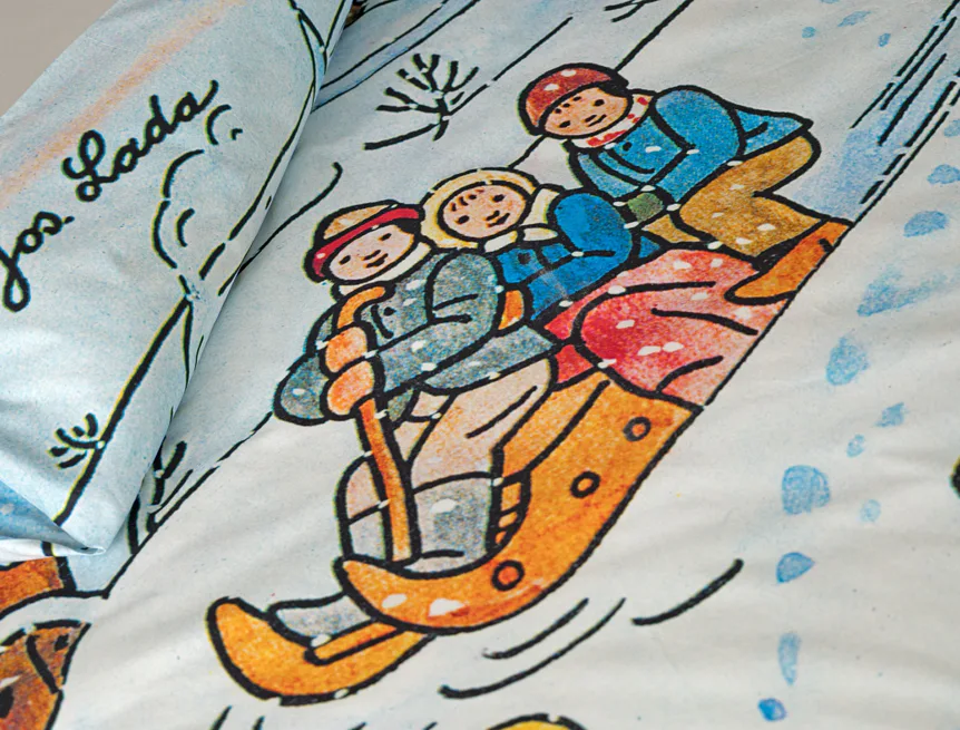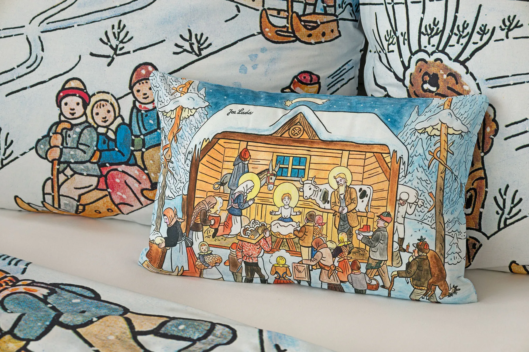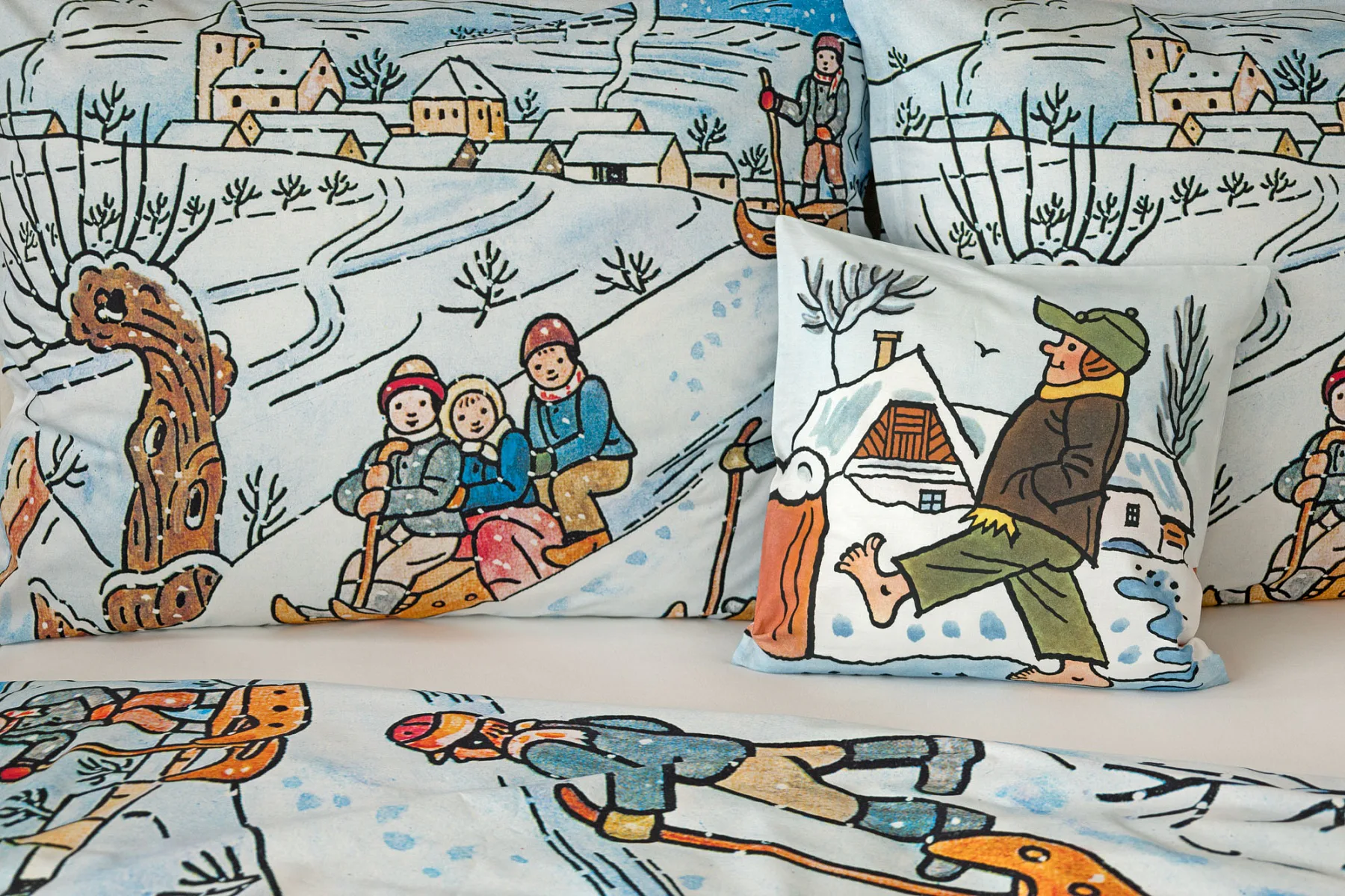 Půvabné kresby Josefa Lady v mnohých z nás probouzejí vzpomínky na bezstarostné dětství a pohádkové zimy plné sněhu, tradic, her a radosti. Vykouzlete si takovou kouzelnou atmosféru i u sebe doma díky bavlněnému povlečení Zima.