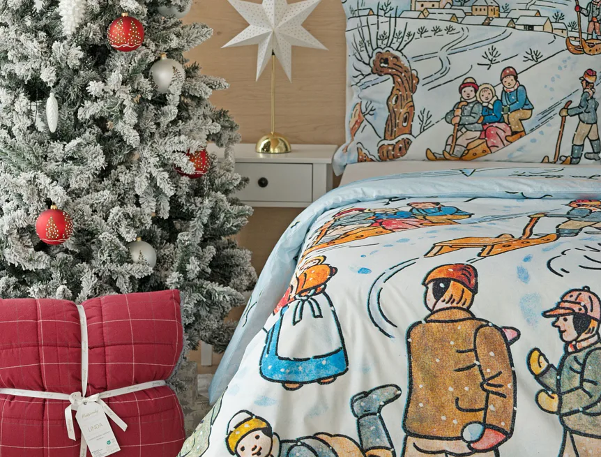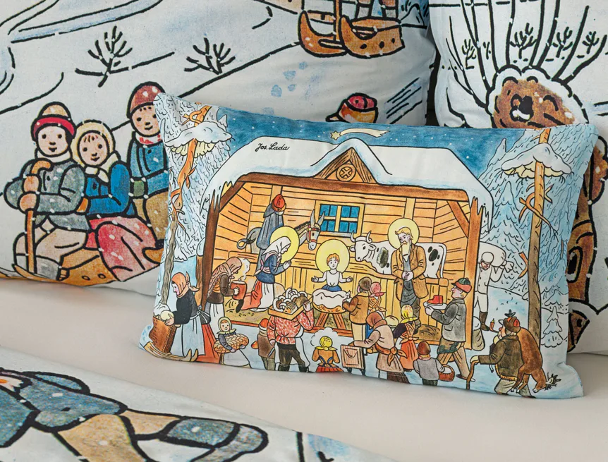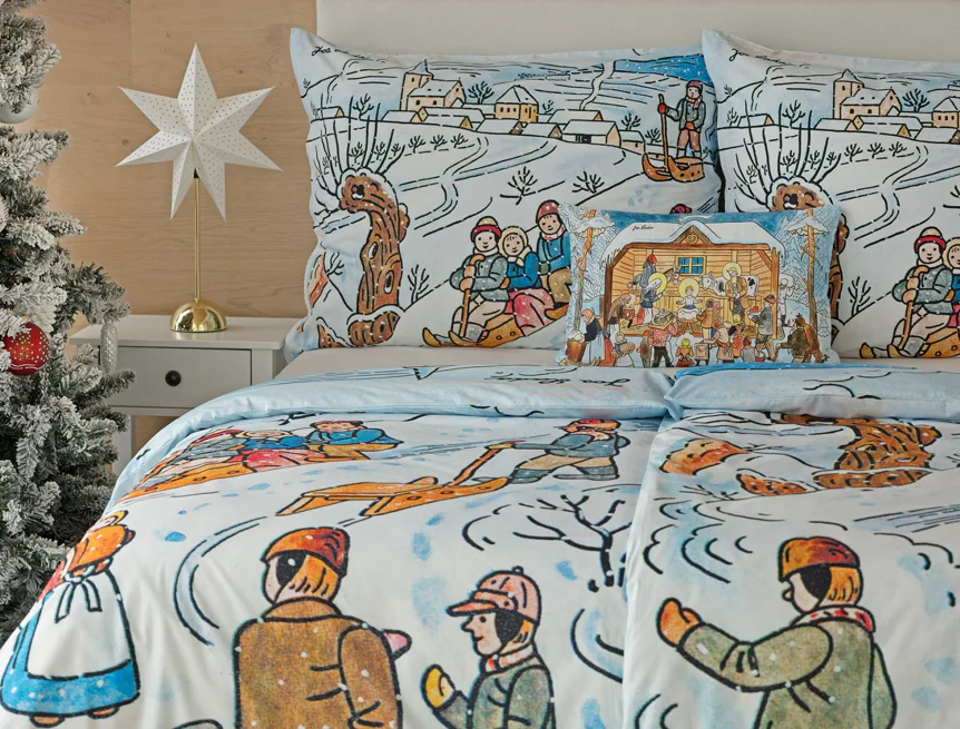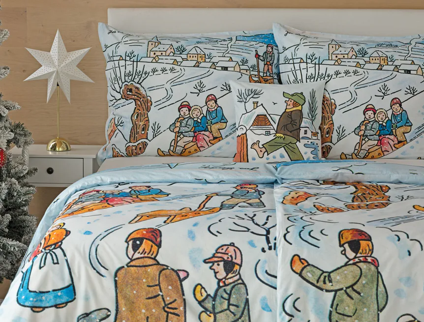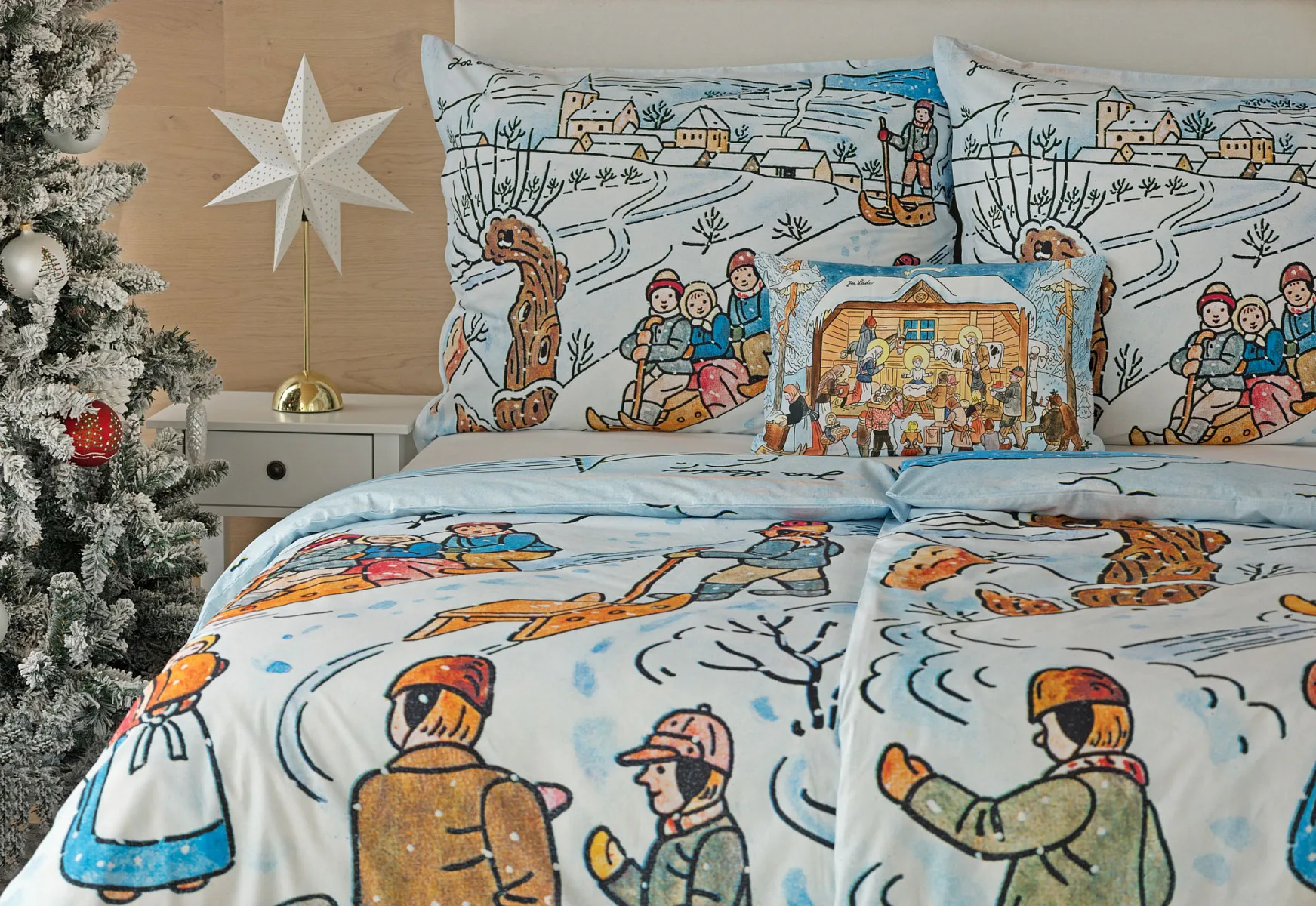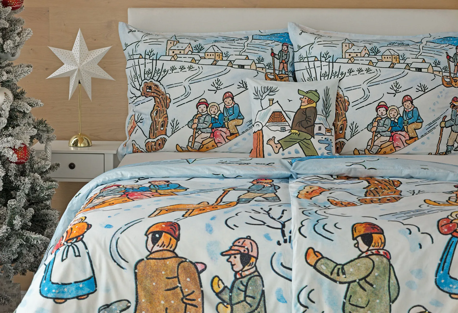 Půvabné kresby Josefa Lady v mnohých z nás probouzejí vzpomínky na bezstarostné dětství a pohádkové zimy plné sněhu, tradic, her a radosti. Vykouzlete si takovou kouzelnou atmosféru i u sebe doma díky bavlněnému povlečení Zima.
