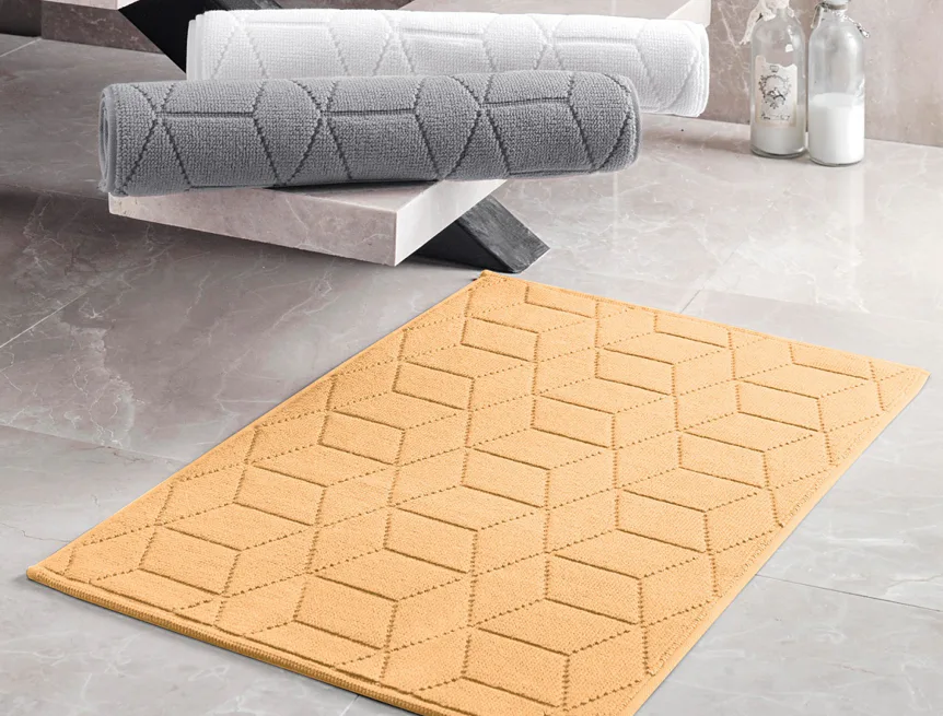Nepostradatelný doplněk každé koupelny v provedení výběrové bavlny s vysokou gramáží, která zajistí nezaměnitelný komfort. Jednoduchý vytkávaný geometrický vzor na koupelnové předložce v kombinaci s dokonalým odstínem svěží meruňkové barvy zútulní vaši koupelnu.