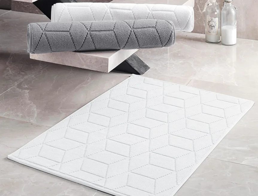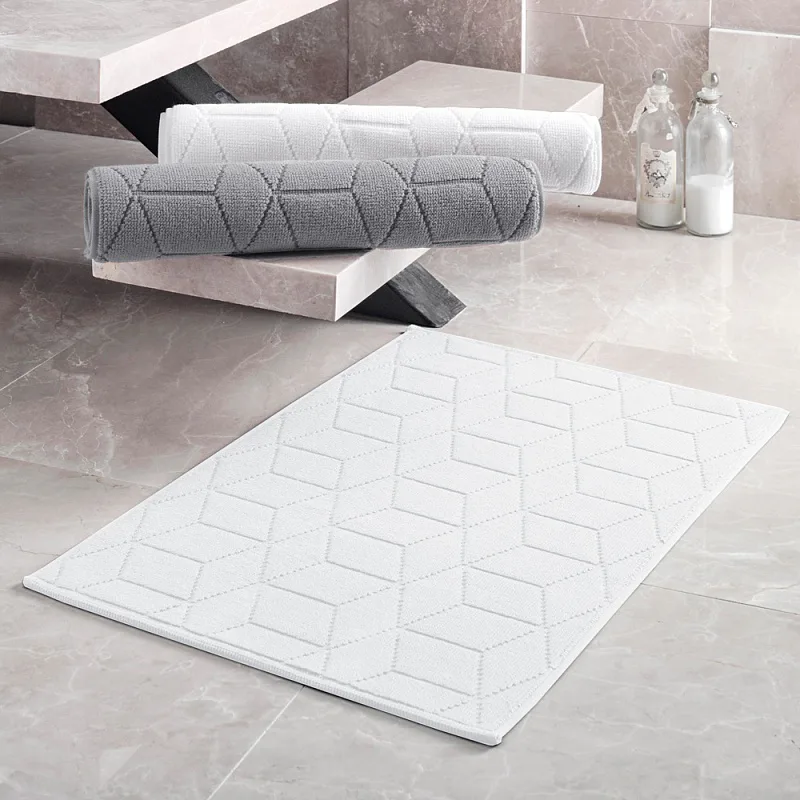 Nepostradatelný doplněk každé koupelny v provedení výběrové bavlny o vysoké gramáži, která zajistí nezaměnitelný komfort. Jednoduchý vytkávaný geometrický vzor na koupelnové předložce v kombinaci s dokonalým odstínem přírodní bílé barvy zútulní Vaši koupelnu.