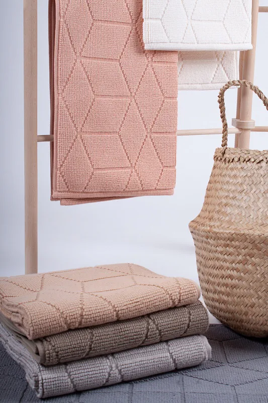 Nepostradatelný doplněk každé koupelny v provedení výběrové bavlny s vysokou gramáží, která zajistí nezaměnitelný komfort. Jednoduchý vytkávaný geometrický vzor na koupelnové předložce v kombinaci s teplým krémovým odstínem oříškového kapučína zútulní vaši koupelnu.
