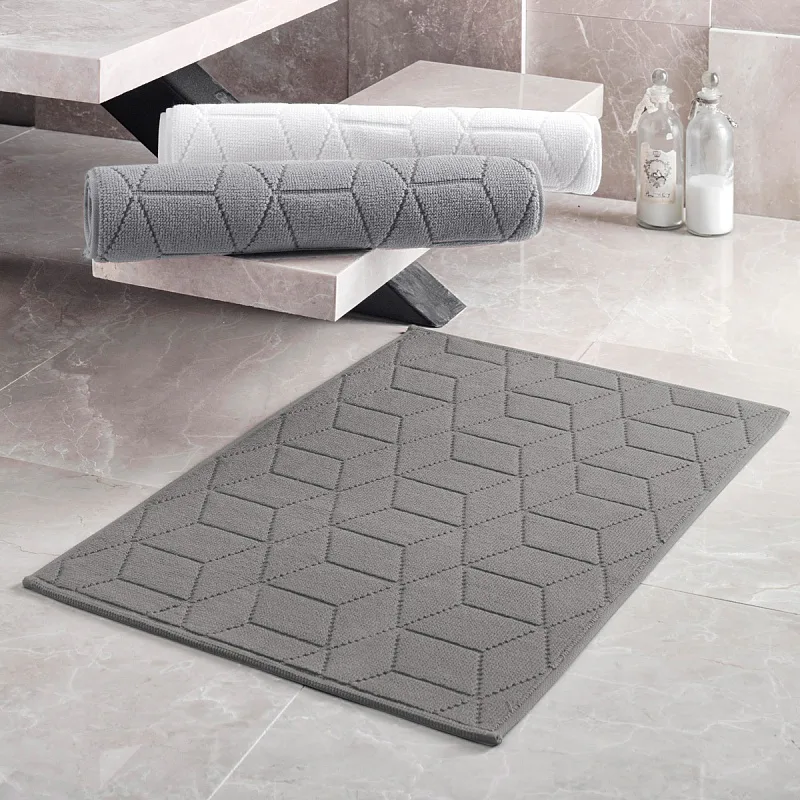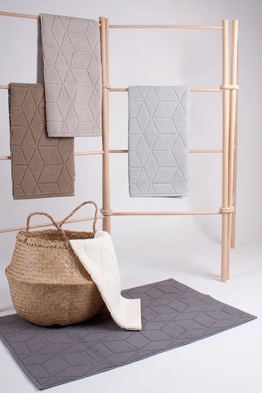 Nepostradatelný doplněk každé koupelny v provedení výběrové bavlny o vysoké gramáži, která zajistí nezaměnitelný komfort. Jednoduchý vytkávaný geometrický vzor na koupelnové předložce v kombinaci s atraktivním sytým odstínem kovově šedé barvy zútulní vaši koupelnu.