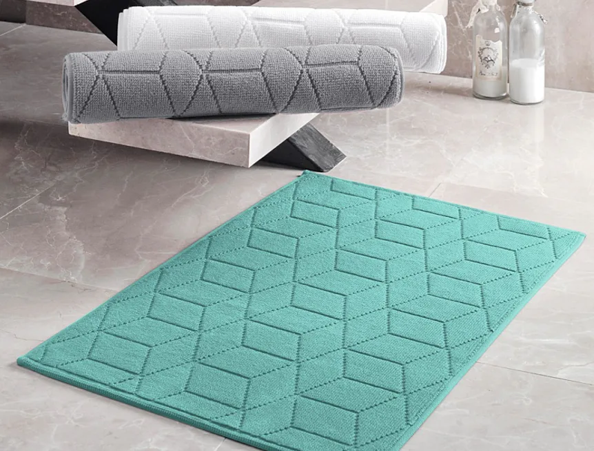 Nepostradatelný doplněk každé koupelny v provedení výběrové bavlny o vysoké gramáži, která zajistí nezaměnitelný komfort. Jednoduchý vytkávaný geometrický vzor na koupelnové předložce v kombinaci s dokonalým odstínem tlumené světle mentolové barvy zútulní Vaši koupelnu.