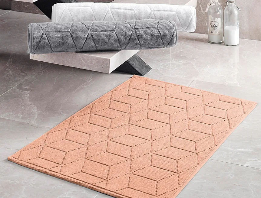 Nepostradatelný doplněk každé koupelny v provedení výběrové bavlny o vysoké gramáži, která zajistí nezaměnitelný komfort. Jednoduchý vytkávaný geometrický vzor na koupelnové předložce v kombinaci s atraktivním odstínem meruňkové barvy zútulní vaši koupelnu.