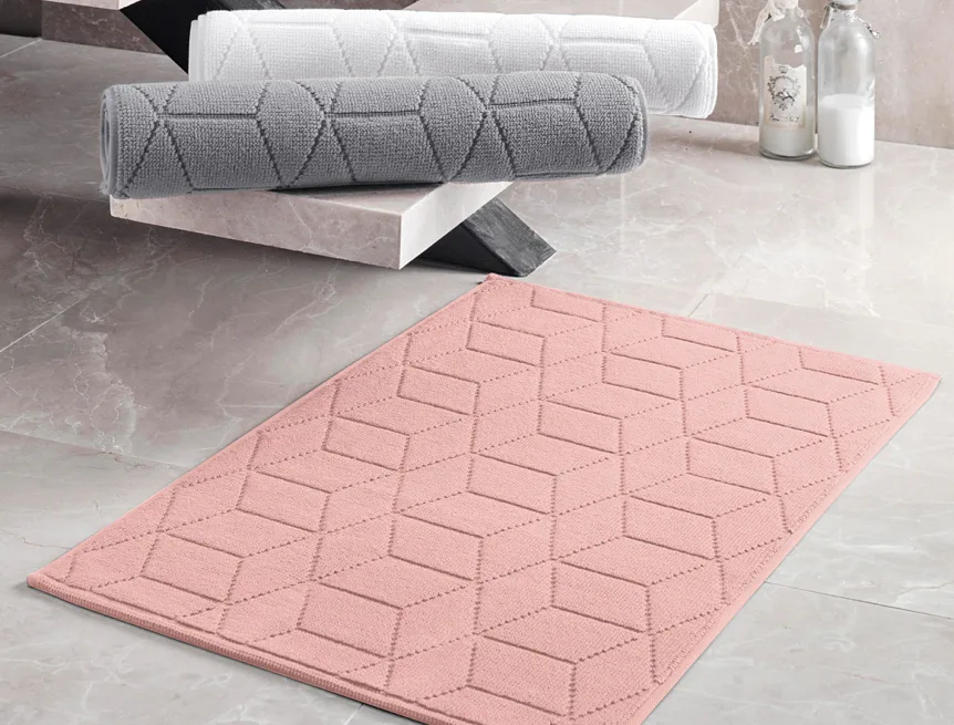 Nepostradatelný doplněk každé koupelny v provedení výběrové bavlny s vysokou gramáží, která zajistí nezaměnitelný komfort. Jednoduchý vytkávaný geometrický vzor na koupelnové předložce v kombinaci s dokonalým odstínem pastelově růžové barvy zútulní vaši koupelnu.