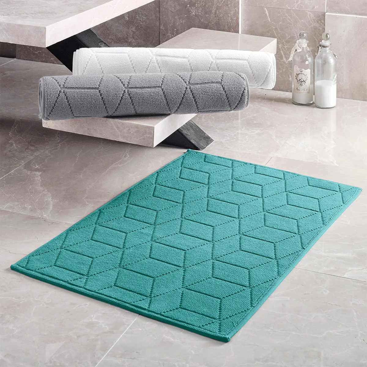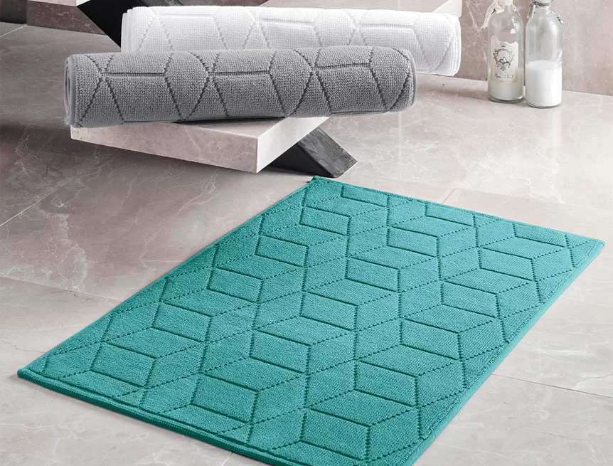 Nepostradatelný doplněk každé koupelny v provedení výběrové bavlny s vysokou gramáží, která zajistí nezaměnitelný komfort. Jednoduchý vytkávaný geometrický vzor na koupelnové předložce v kombinaci s dokonalým odstínem svěží petrolejové barvy zútulní vaši koupelnu.