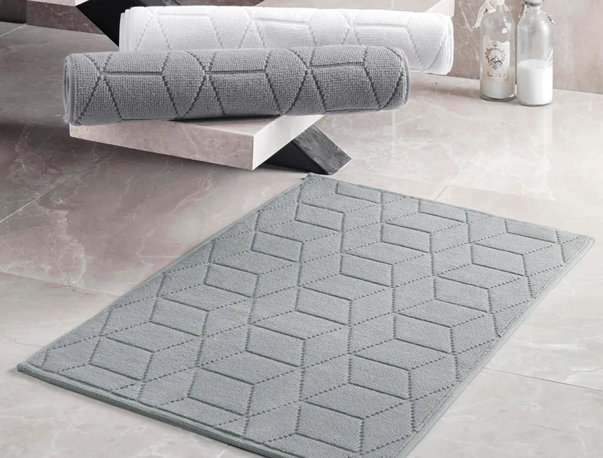 Nepostradatelný doplněk každé koupelny v provedení výběrové bavlny s vysokou gramáží, která zajistí nezaměnitelný komfort. Jednoduchý vytkávaný geometrický vzor na koupelnové předložce v kombinaci s dokonalým odstínem pastelově šedé barvy zútulní vaši koupelnu.