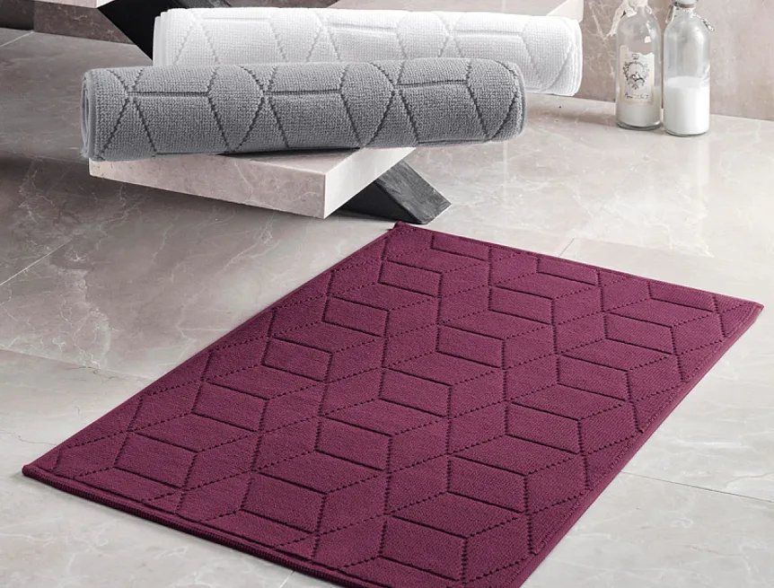 Nepostradatelný doplněk každé koupelny v provedení výběrové bavlny s vysokou gramáží, která zajistí nezaměnitelný komfort. Jednoduchý vytkávaný geometrický vzor na koupelnové předložce v kombinaci s dokonalým odstínem tmavě fialové barvy zútulní vaši koupelnu.