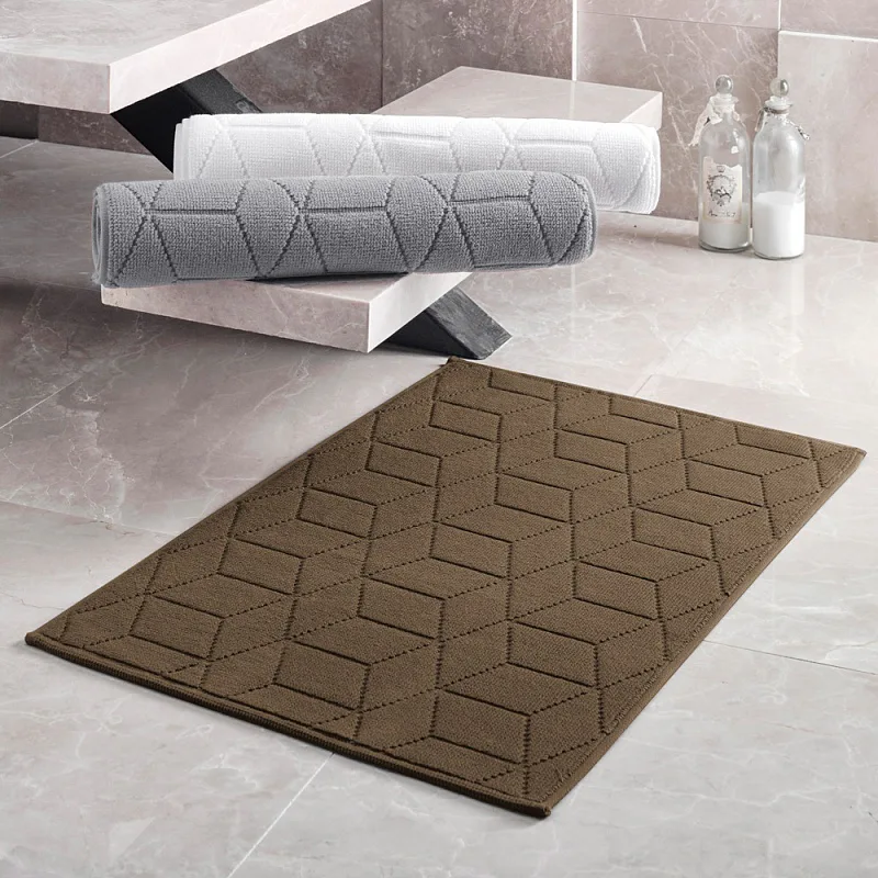 Nepostradatelný doplněk každé koupelny v provedení výběrové bavlny o vysoké gramáži, která zajistí nezaměnitelný komfort. Jednoduchý vytkávaný geometrický vzor na koupelnové předložce v kombinaci s dokonalým odstínem čokoládově hnědé barvy zútulní vaši koupelnu.