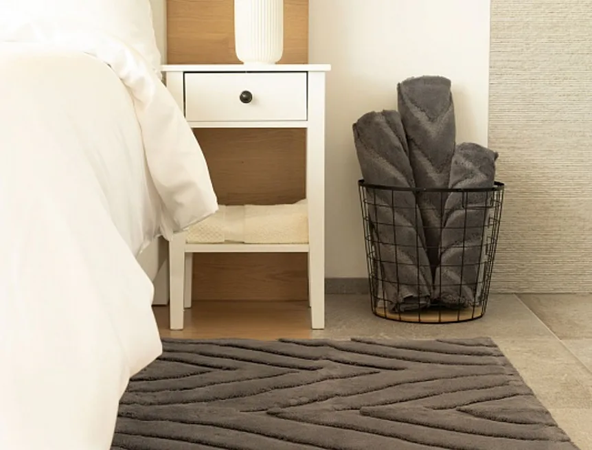 Předložka není opatřena protiskluzovou úpravou, ale díky kvalitnímu zpracování a zpevněnému okraji drží tvar a dobře přilne k podkladové ploše.