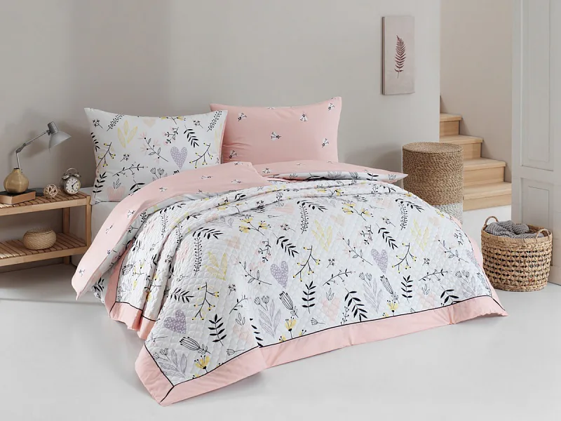 Přehoz Amelie je jedinečný estetický a praktický doplněk, se kterým bude vaše postel vždy dokonale ustlaná. Jako výplň je použito vrstvené duté vlákno s vysokou gramáží. Povrchový materiál tvoří 100% bavlněná látka ve stejném dezénu jako ložní povlečení. Po celé ploše je aplikováno ozdobné prošití, aby se zajistila stabilita výplně a současně podtrhl celkový vzhled přehozu.