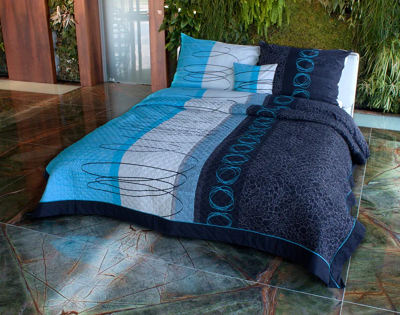 Přehoz LOCARNO je jedinečný, estetický a praktický doplněk, se kterým bude Vaše postel vždy dokonale ustlaná. Jako výplň je použito vrstvené duté vlákno, povrchový materiál je 100% bavlněná látka, ve stejném dezénu jako ložní povlečení. Po celé ploše je aplikováno ozdobné prošití tak, aby se zajistila stabilita výplně a současně podtrhl celkový vzhled přehozu.