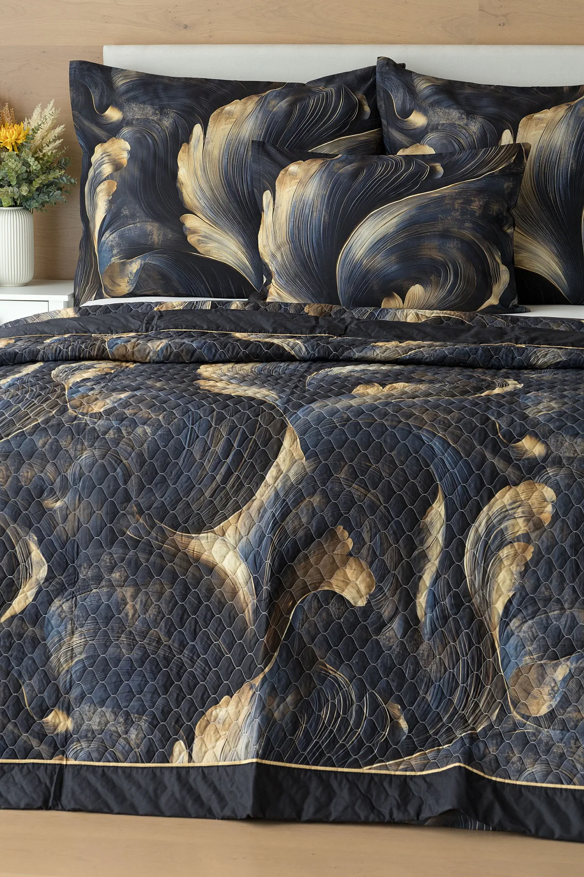 Přehoz Lyra je jedinečný estetický a praktický doplněk, se kterým bude vaše postel vždy dokonale ustlaná. Jako výplň je použito vrstvené duté vlákno se sníženou gramáží. Povrchový materiál tvoří 100% bavlněná látka ve stejném dezénu jako ložní povlečení. Po celé ploše je aplikováno ozdobné prošití, aby se zajistila stabilita výplně a současně podtrhl celkový vzhled přehozu.