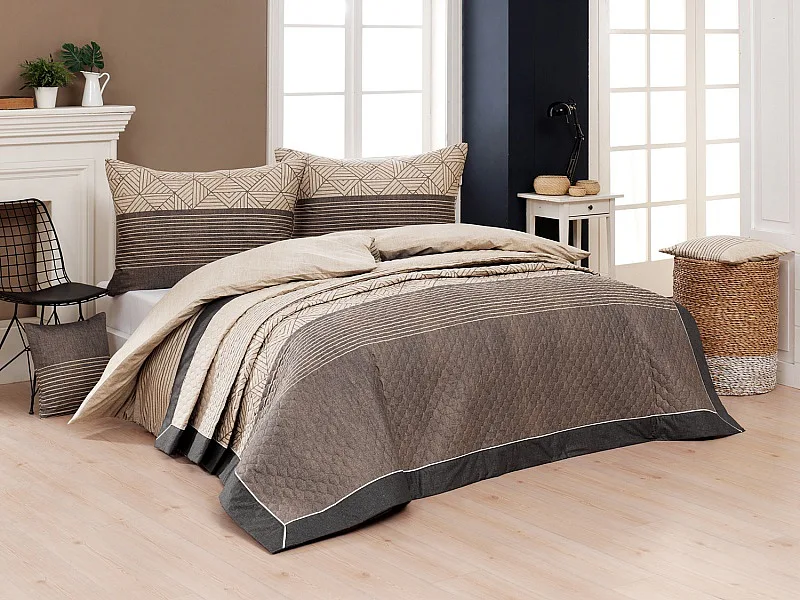 Přehoz Pietro je jedinečný estetický a praktický doplněk, se kterým bude vaše postel vždy dokonale ustlaná. Jako výplň je použito vrstvené duté vlákno se sníženou gramáží. Povrchový materiál tvoří 100% bavlněná látka ve stejném dezénu jako ložní povlečení. Po celé ploše je aplikováno ozdobné prošití, aby se zajistila stabilita výplně a současně podtrhl celkový vzhled přehozu.
