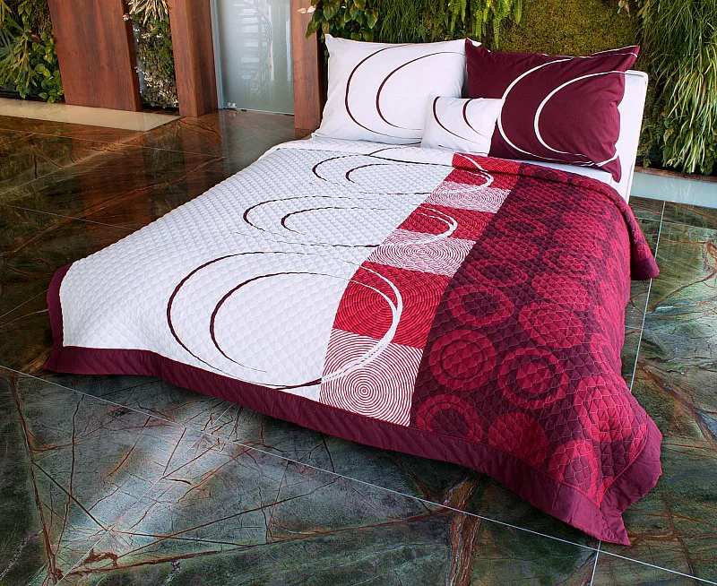 Přehoz ROYAL BORDO je jedinečný, estetický a praktický doplněk, se kterým bude Vaše postel vždy dokonale ustlaná. Jako výplň je použito vrstvené duté vlákno, povrchový materiál je 100% bavlněná látka, ve stejném dezénu jako ložní povlečení. Po celé ploše je aplikováno ozdobné prošití tak, aby se zajistila stabilita výplně a současně podtrhl celkový vzhled přehozu.