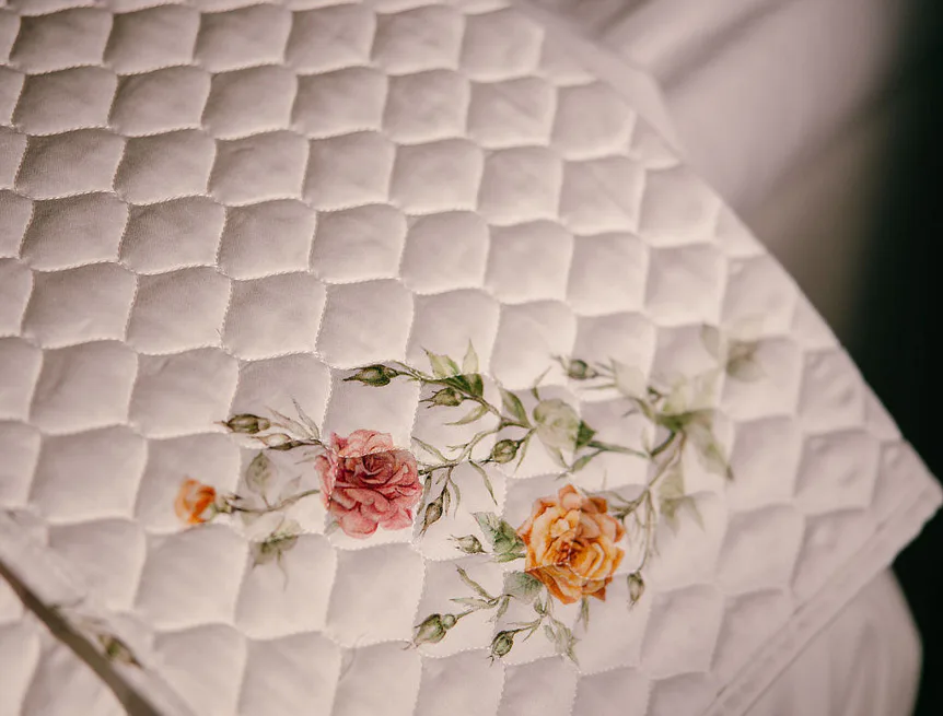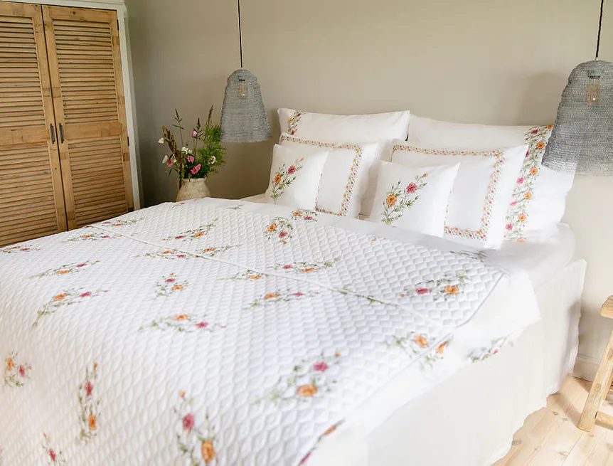 Náš úplně první prošívaný přehoz ze 100% bavlněného saténu. Spojuje noblesu autorského motivu Růže s praktickou lehkostí: okamžitě povýší povlečení na hotelový vzhled a ochrání lůžko přes den.