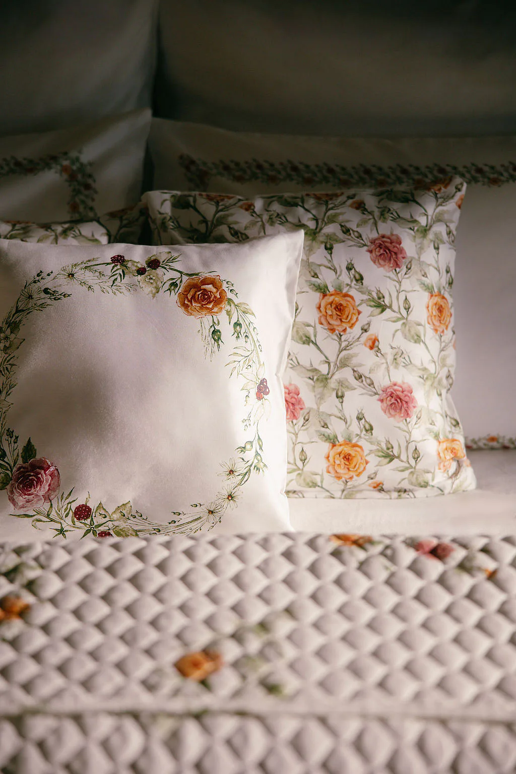 • Vrchní i spodní povrchová látka: 100% bavlněný satén ve stejném dezénu jako ložní povlečení Růže.
