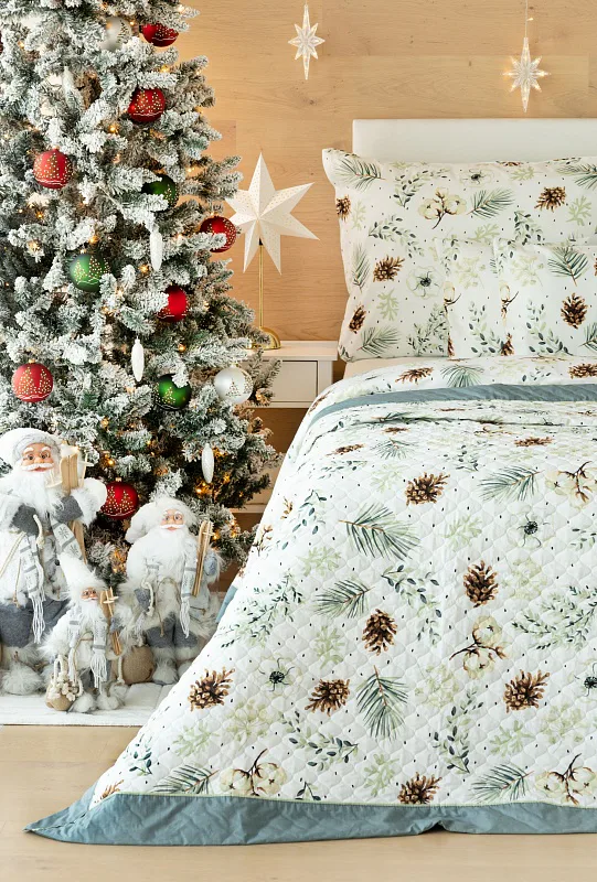 Přehoz Winter je jedinečný estetický a praktický doplněk, se kterým bude vaše postel vždy dokonale ustlaná. Jako výplň je použito vrstvené duté vlákno se sníženou gramáží. Povrchový materiál tvoří 100% bavlněná látka ve stejném dezénu jako ložní povlečení. Po celé ploše je aplikováno ozdobné prošití, aby se zajistila stabilita výplně a současně podtrhl celkový vzhled přehozu.