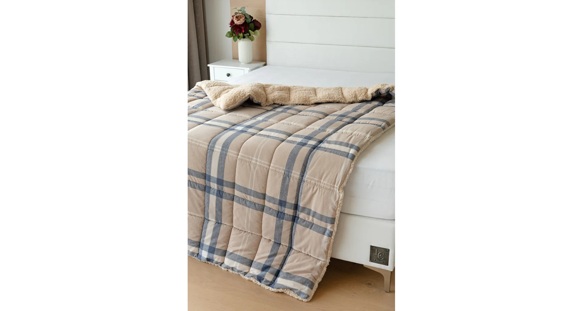Nová kolekce prošívaných flanelových přikrývek s beránkem vám zajistí jedinečný tepelný komfort a úžasné pohodlí během sychravých dnů, chladných večerů a zimních nocí. Vrchní stranu prošívané deky tvoří hebký flanel s jemným chloupkem, spodní stranu pokrývá hřejivý nadýchaný beránek. Vnitřní výplň s plošnou gramáží 250 g/m2 tvoří mikrogelové polyesterové nano vlákno, které je prodyšné, lehké a nesléhá. Stabilitu výplně zajišťuje precizní prošití po celé ploše.