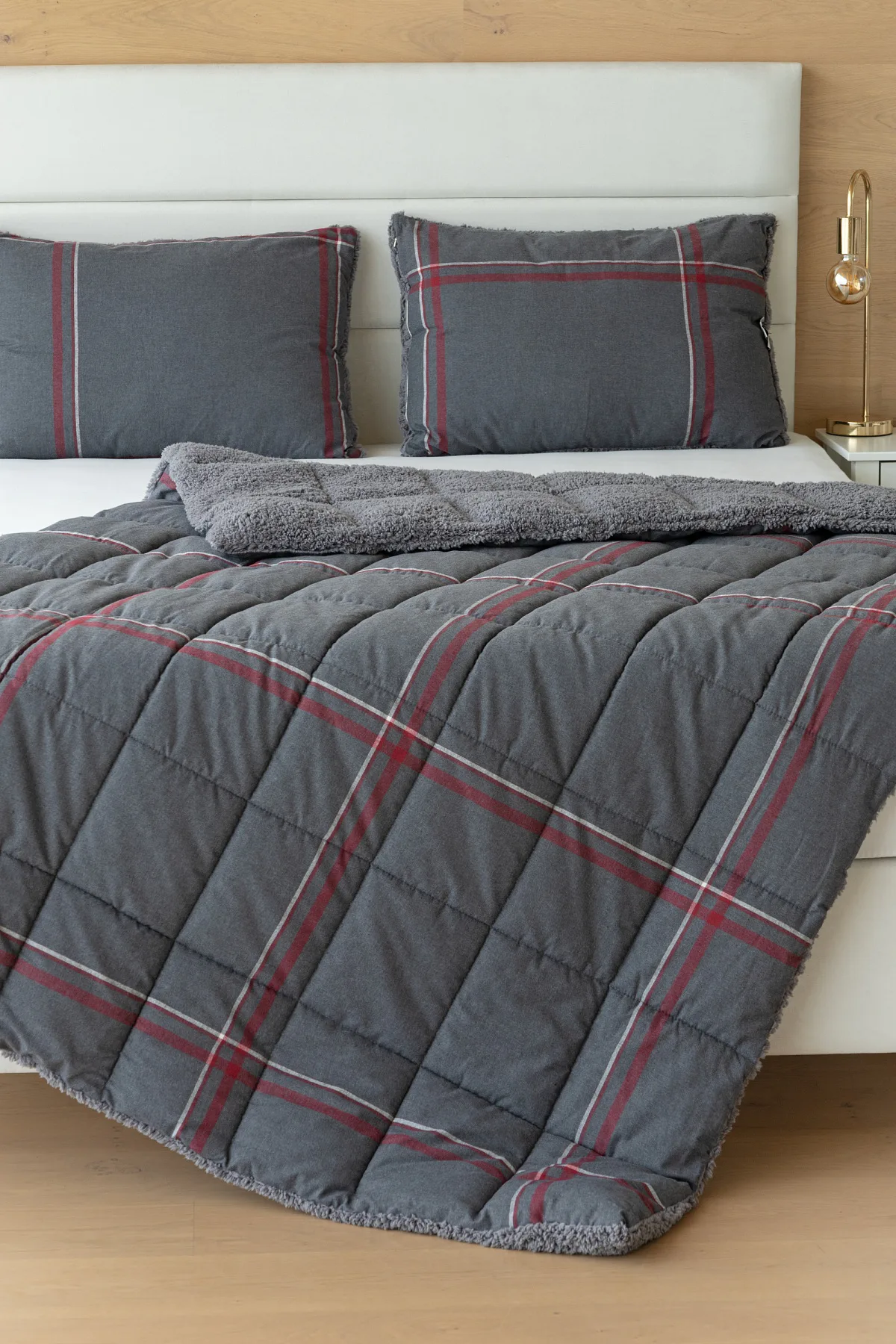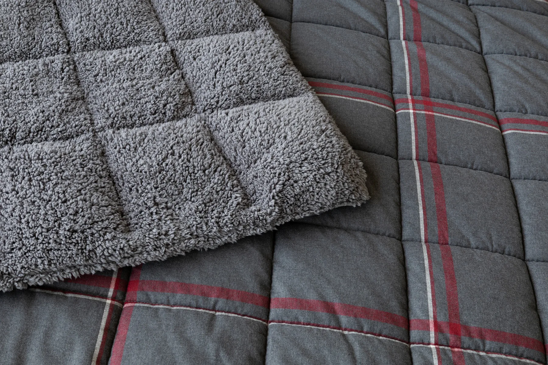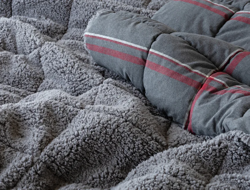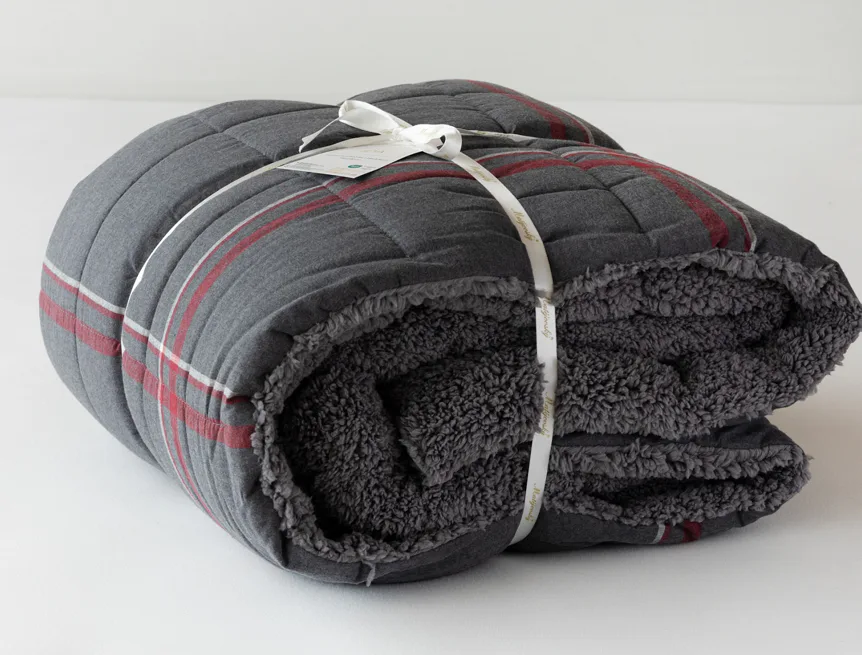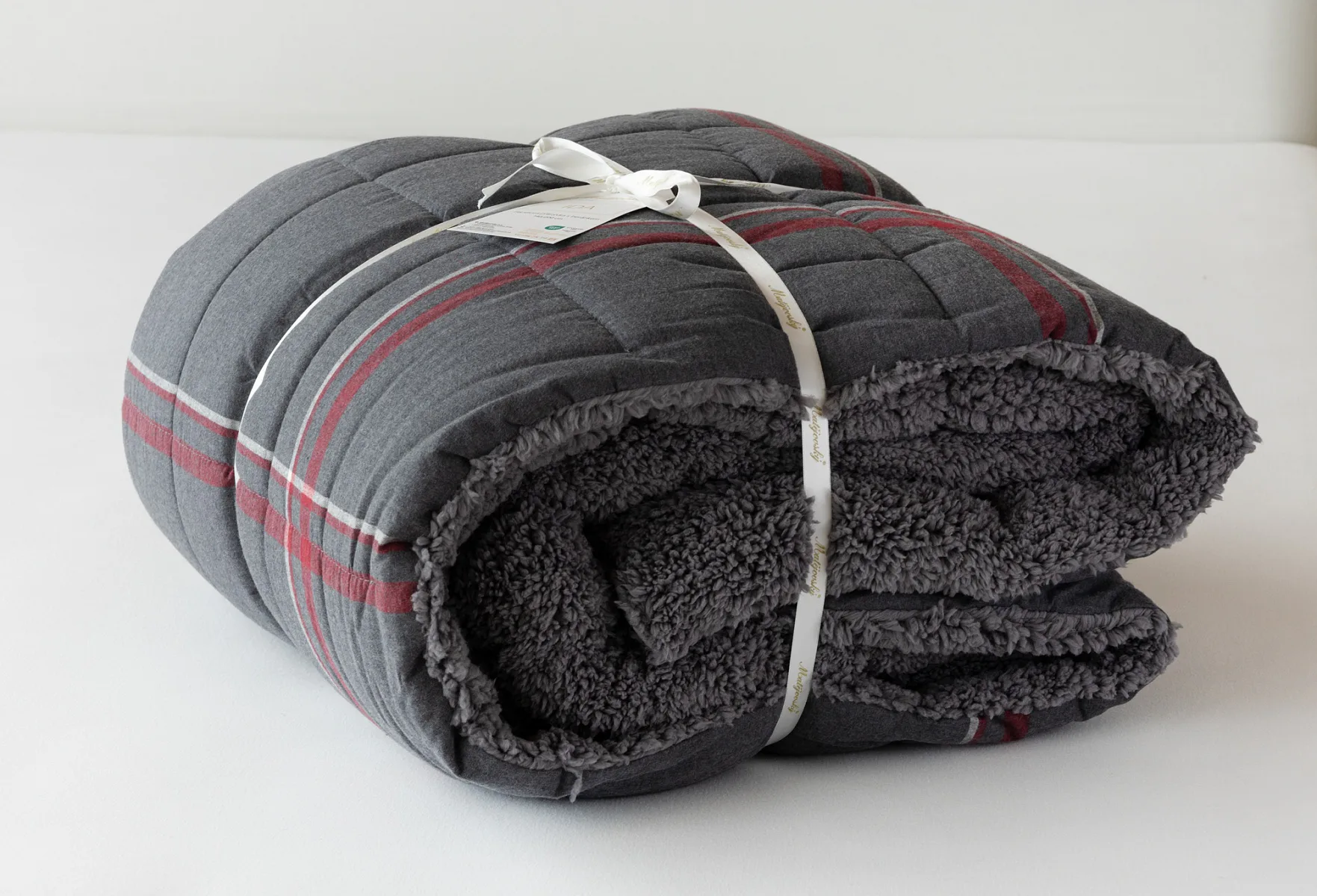 Nová kolekce prošívaných flanelových přikrývek s beránkem vám zajistí jedinečný tepelný komfort a úžasné pohodlí během sychravých dnů, chladných večerů a zimních nocí. Vrchní stranu prošívané deky tvoří hebký flanel s jemným chloupkem, spodní stranu pokrývá hřejivý nadýchaný beránek. Vnitřní výplň s plošnou gramáží 250 g/m2 tvoří mikrogelové polyesterové nano vlákno, které je prodyšné, lehké a nesléhá. Stabilitu výplně zajišťuje precizní prošití po celé ploše.