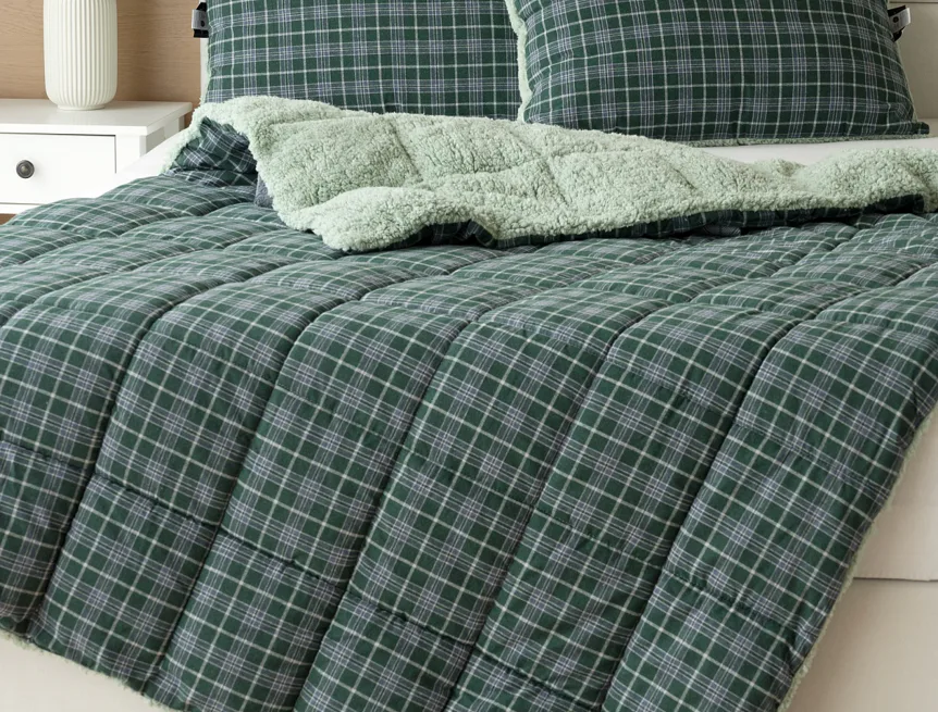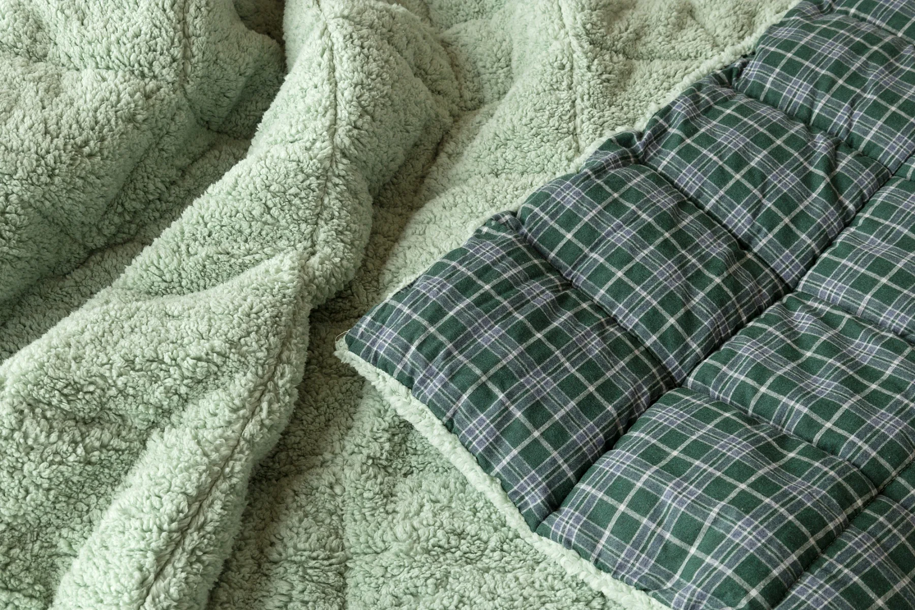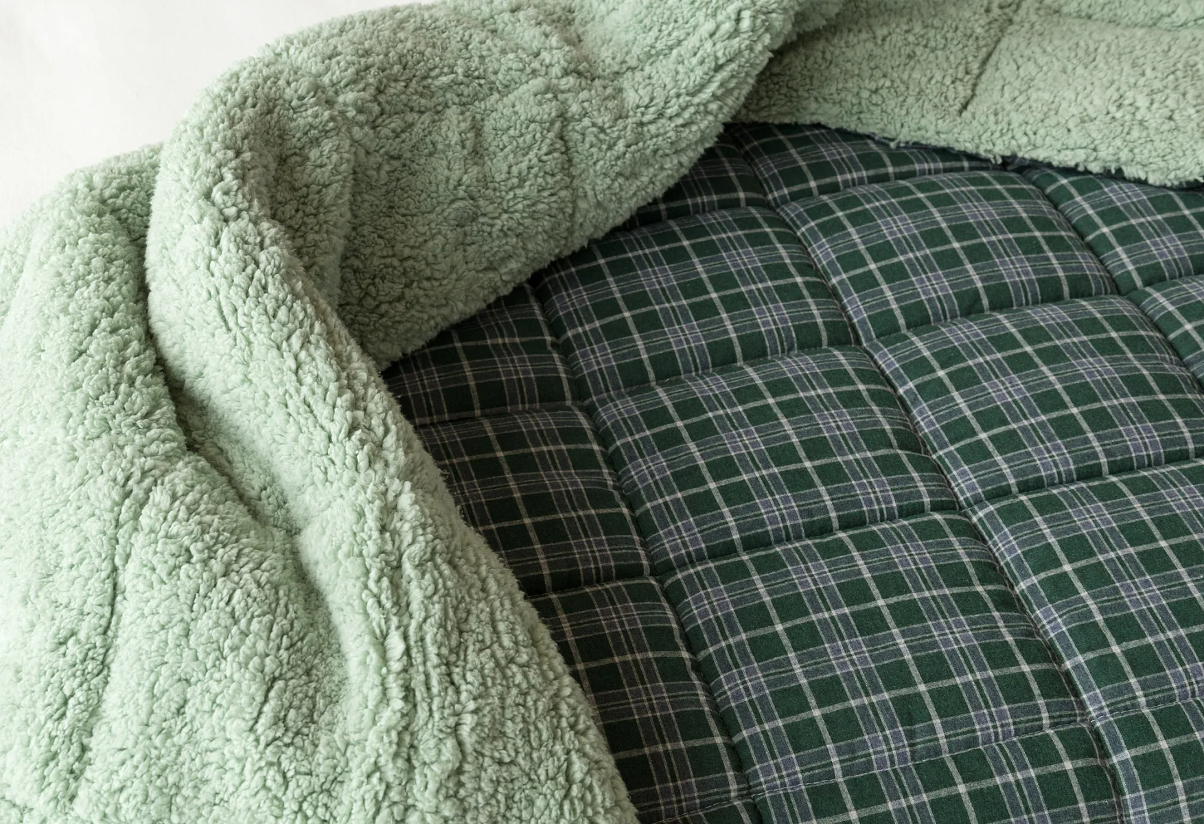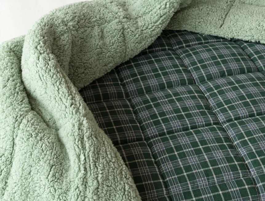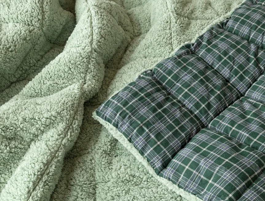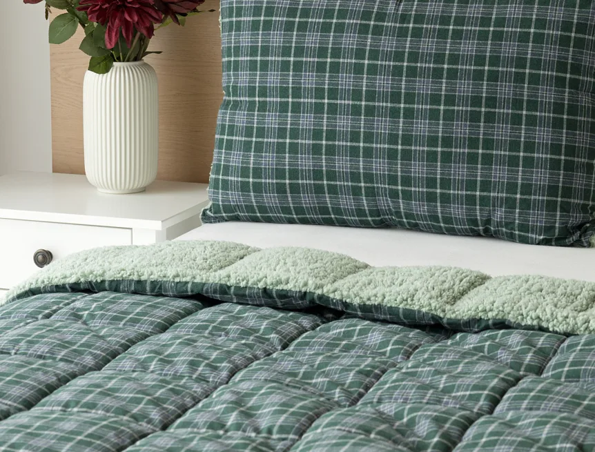Nová kolekce prošívaných flanelových přikrývek s beránkem vám zajistí jedinečný tepelný komfort a úžasné pohodlí během sychravých dnů, chladných večerů a zimních nocí. Vrchní stranu prošívané deky tvoří hebký flanel s jemným chloupkem, spodní stranu pokrývá hřejivý nadýchaný beránek. Vnitřní výplň s plošnou gramáží 250 g/m2 tvoří mikrogelové polyesterové nano vlákno, které je prodyšné, lehké a nesléhá. Stabilitu výplně zajišťuje precizní prošití po celé ploše.