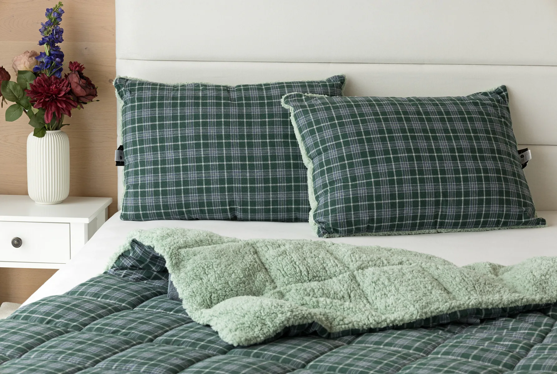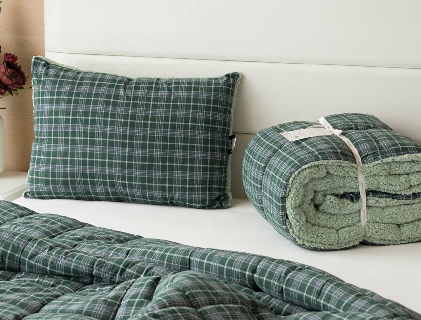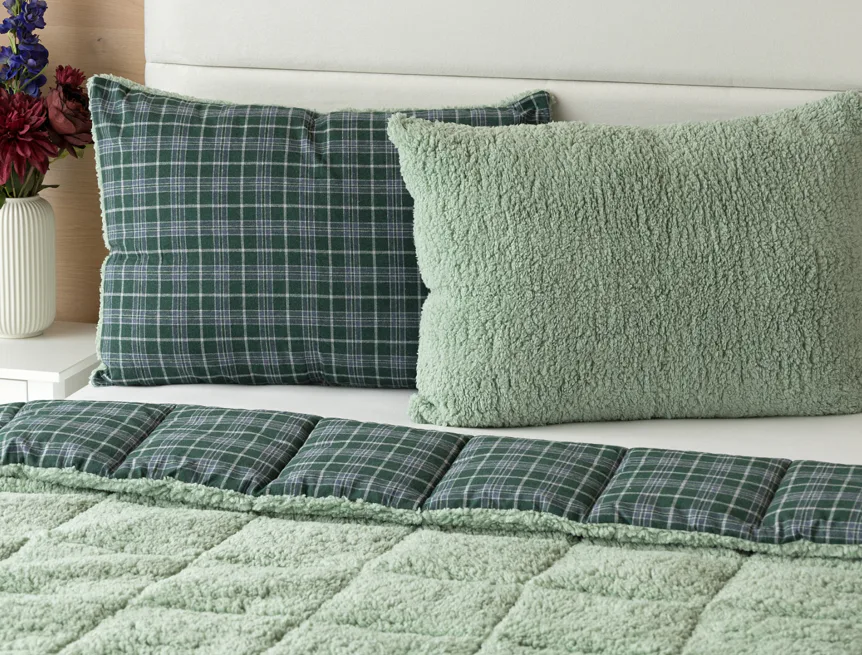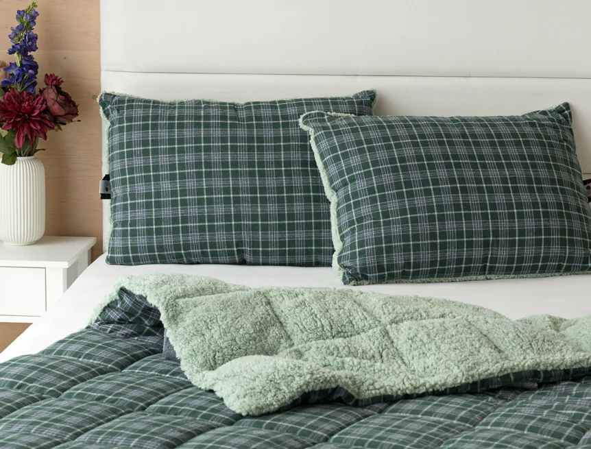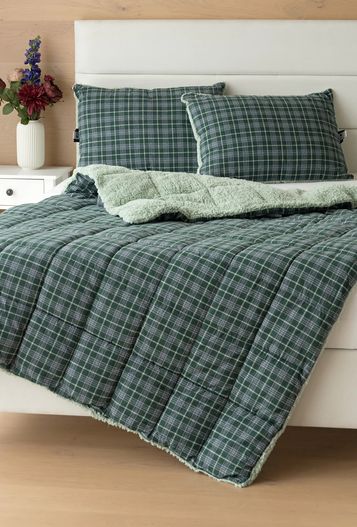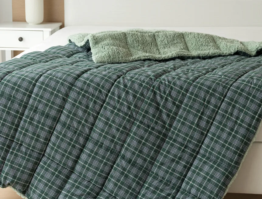 Nová kolekce prošívaných flanelových přikrývek s beránkem vám zajistí jedinečný tepelný komfort a úžasné pohodlí během sychravých dnů, chladných večerů a zimních nocí. Vrchní stranu prošívané deky tvoří hebký flanel s jemným chloupkem, spodní stranu pokrývá hřejivý nadýchaný beránek. Vnitřní výplň s plošnou gramáží 250 g/m2 tvoří mikrogelové polyesterové nano vlákno, které je prodyšné, lehké a nesléhá. Stabilitu výplně zajišťuje precizní prošití po celé ploše.