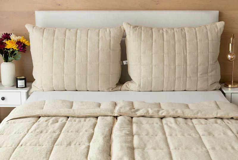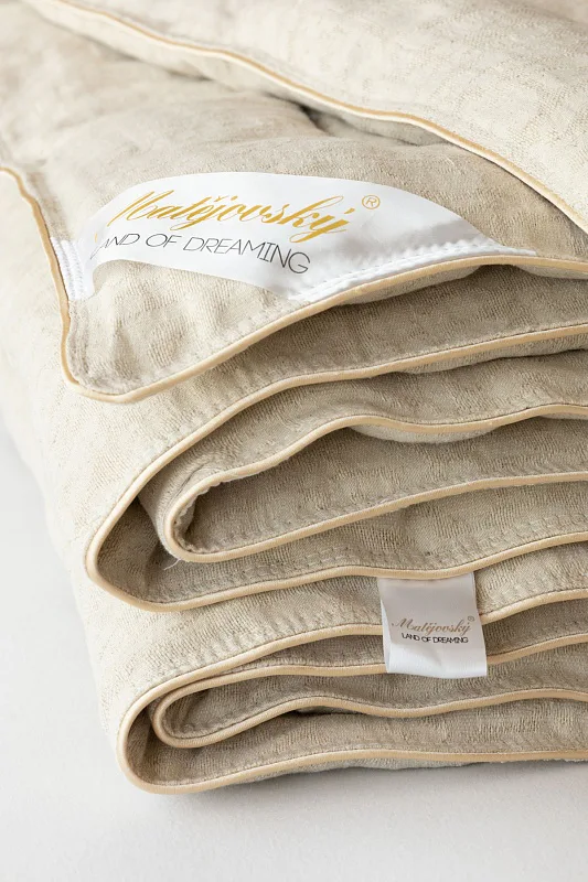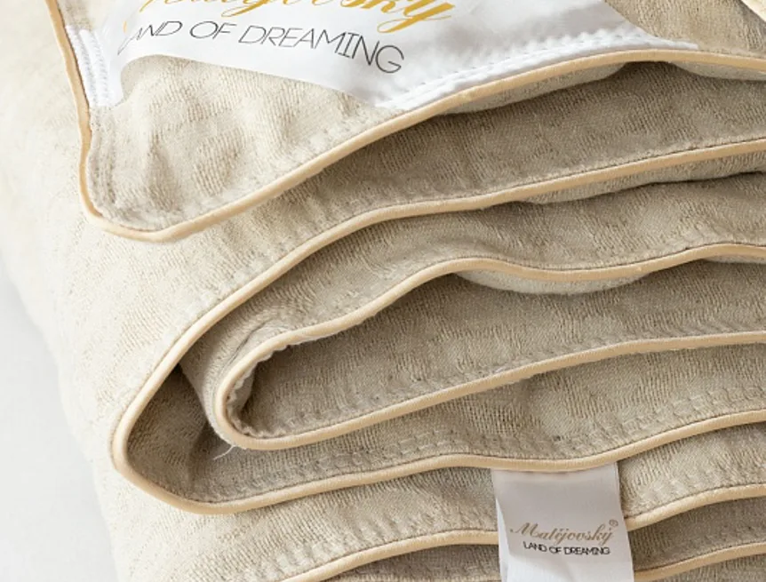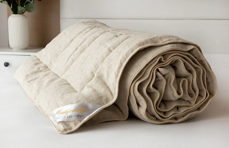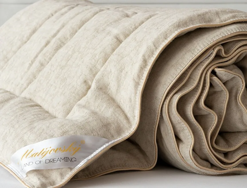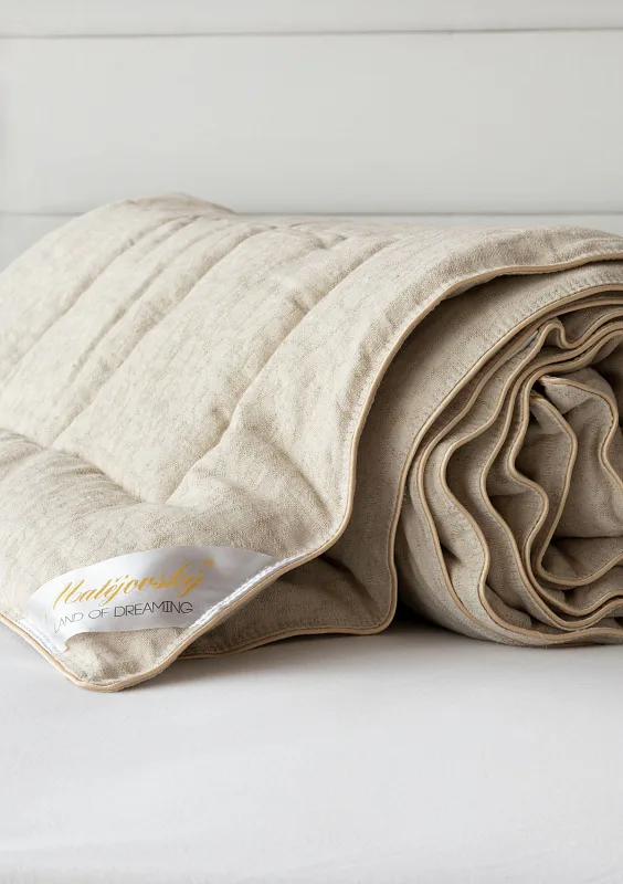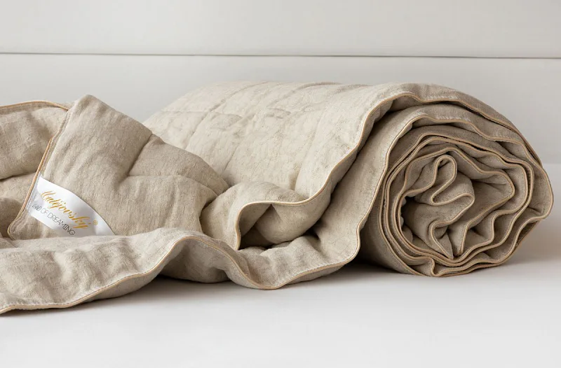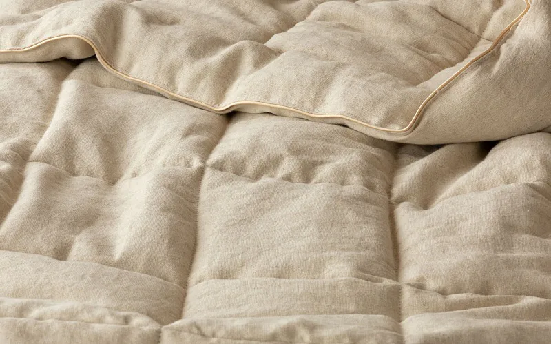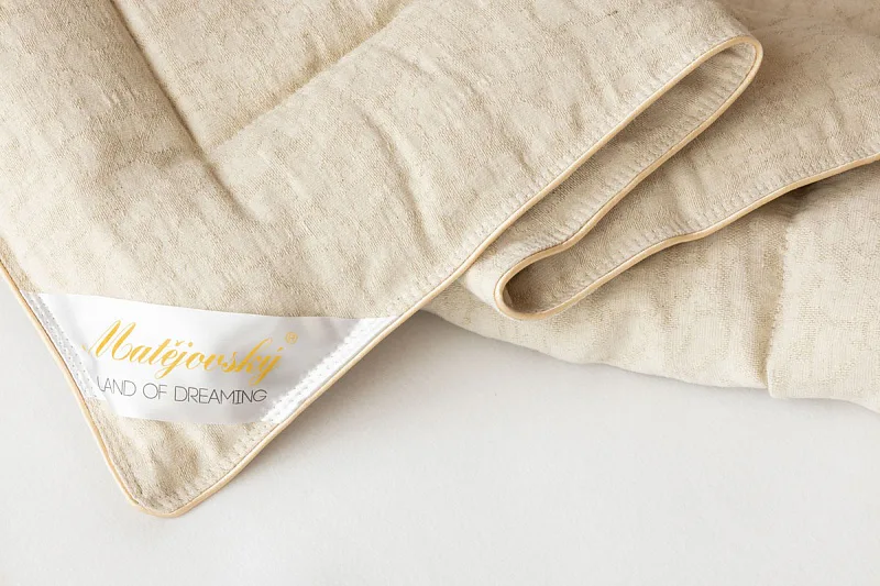 Lněná přikrývka je lehká a úžasně poddajná. Vysoký podíl přírodního vlákna zajišťuje optimální termoregulaci, proto je přikrývka navzdory nízké gramáži vhodná k celoročnímu použití.