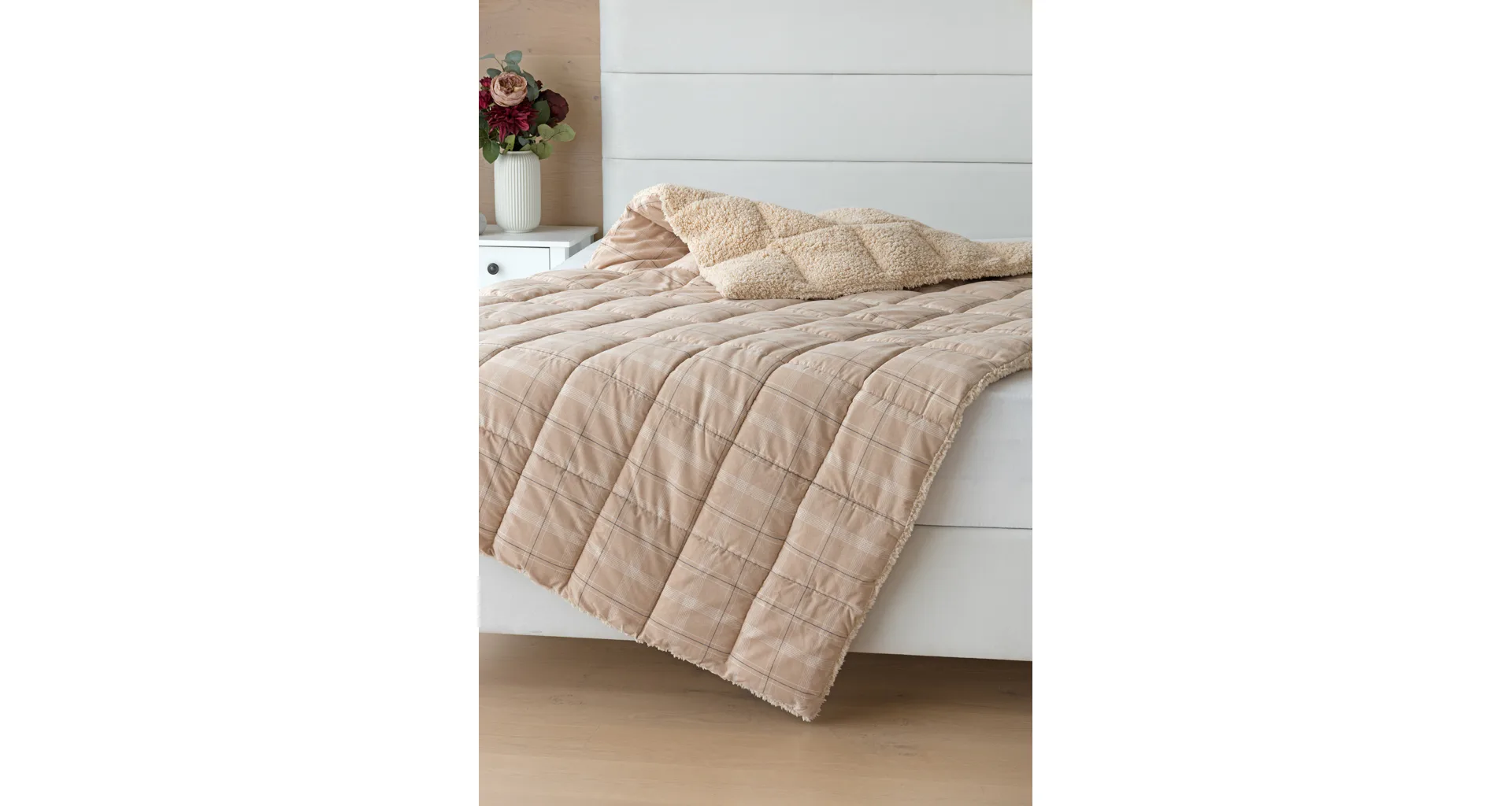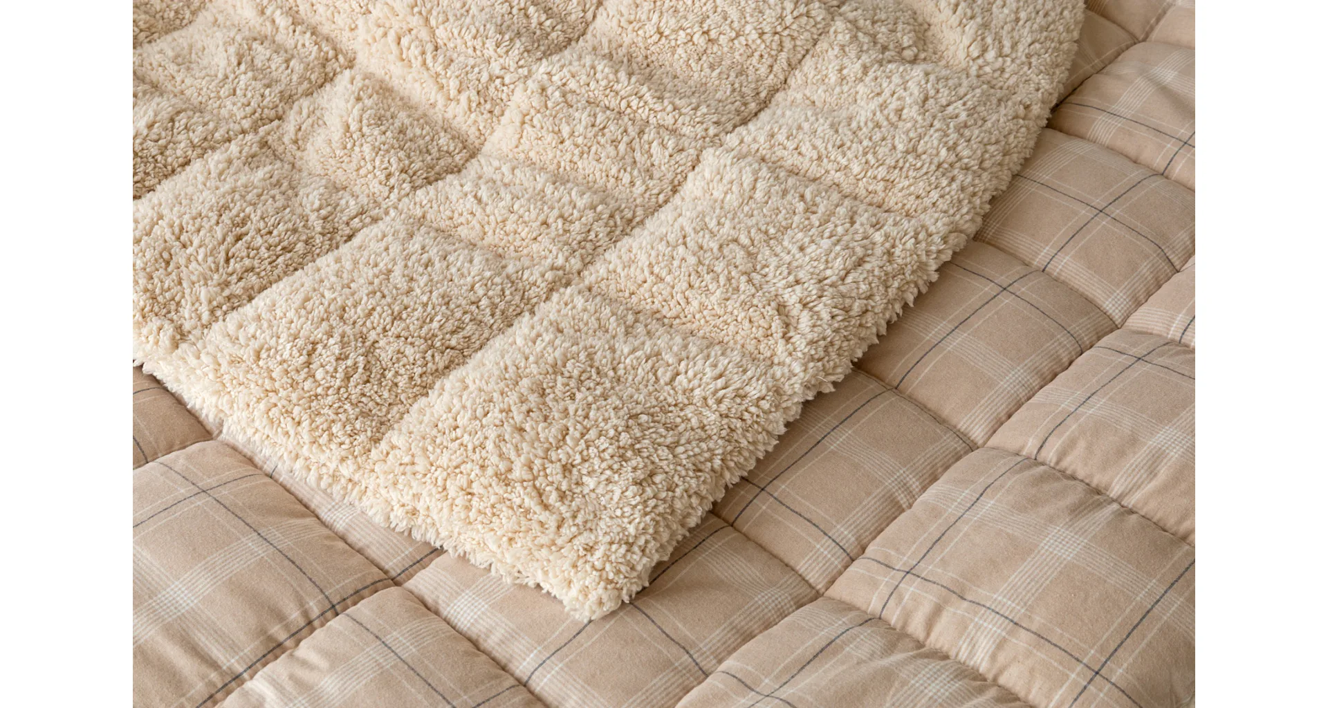 Nová kolekce prošívaných flanelových přikrývek s beránkem vám zajistí jedinečný tepelný komfort a úžasné pohodlí během sychravých dnů, chladných večerů a zimních nocí. Vrchní stranu prošívané deky tvoří hebký flanel s jemným chloupkem, spodní stranu pokrývá hřejivý nadýchaný beránek. Vnitřní výplň s plošnou gramáží 250 g/m2 tvoří mikrogelové polyesterové nano vlákno, které je prodyšné, lehké a nesléhá. Stabilitu výplně zajišťuje precizní prošití po celé ploše.
