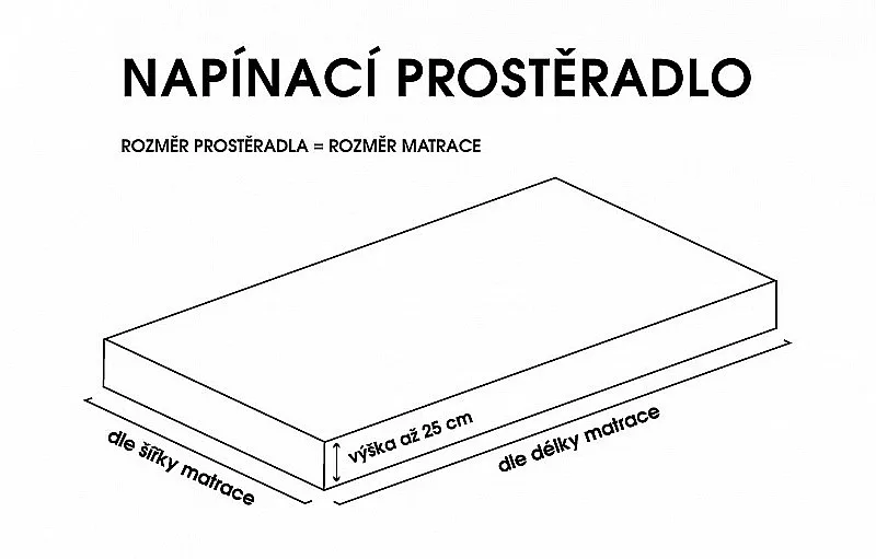 Rozměr prostěradla koresponduje s plochou matrace, výška boků může být až 25 cm.