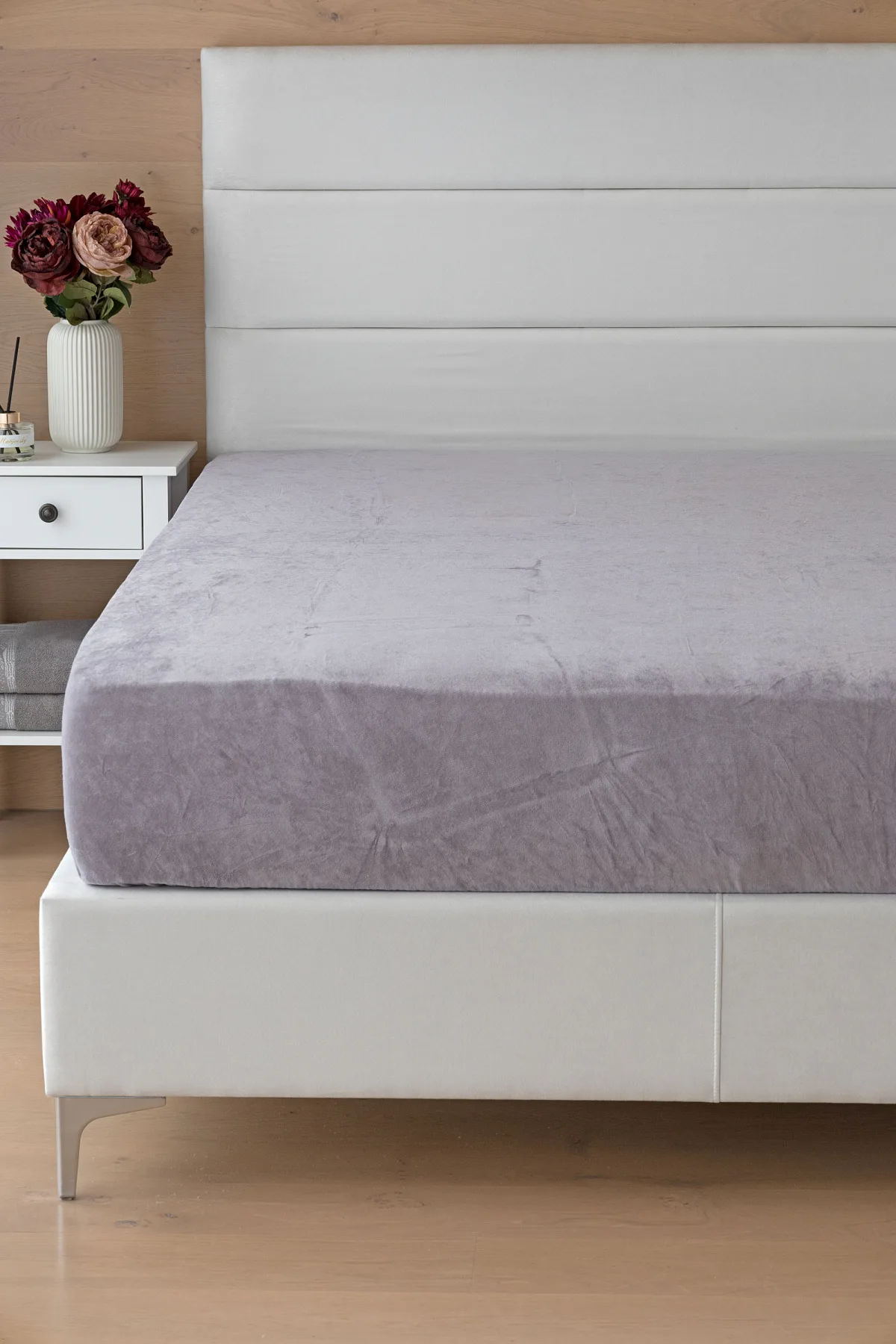 Prostěradlo Středně šedé BAVLNĚNÝ MIKROPLYŠ