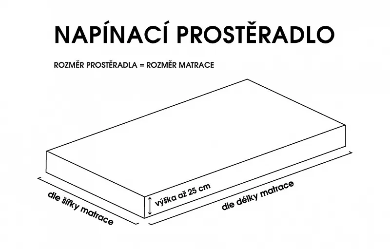 Rozměr prostěradla koresponduje s plochou matrace, výška boků může být až 25 cm.